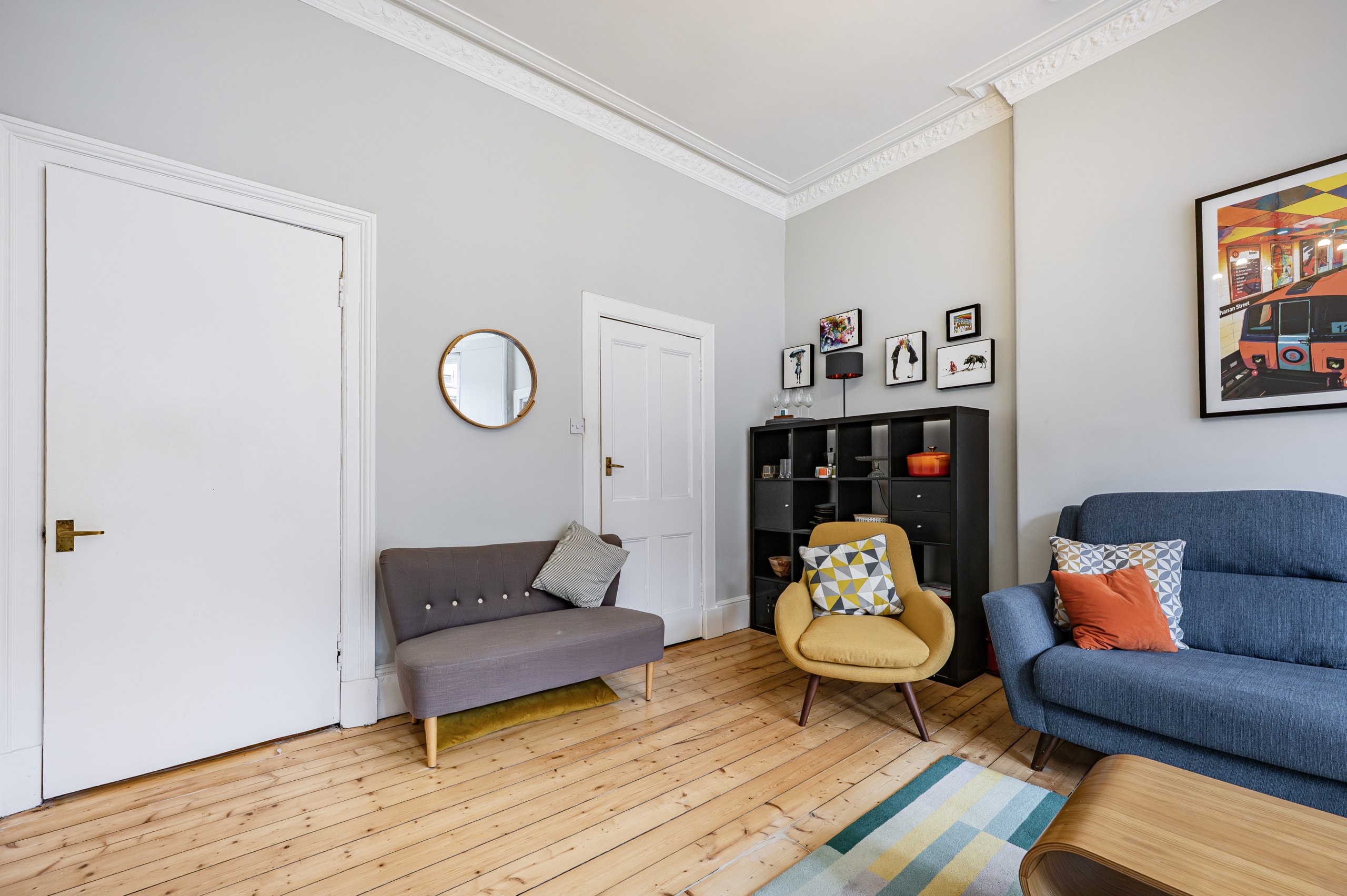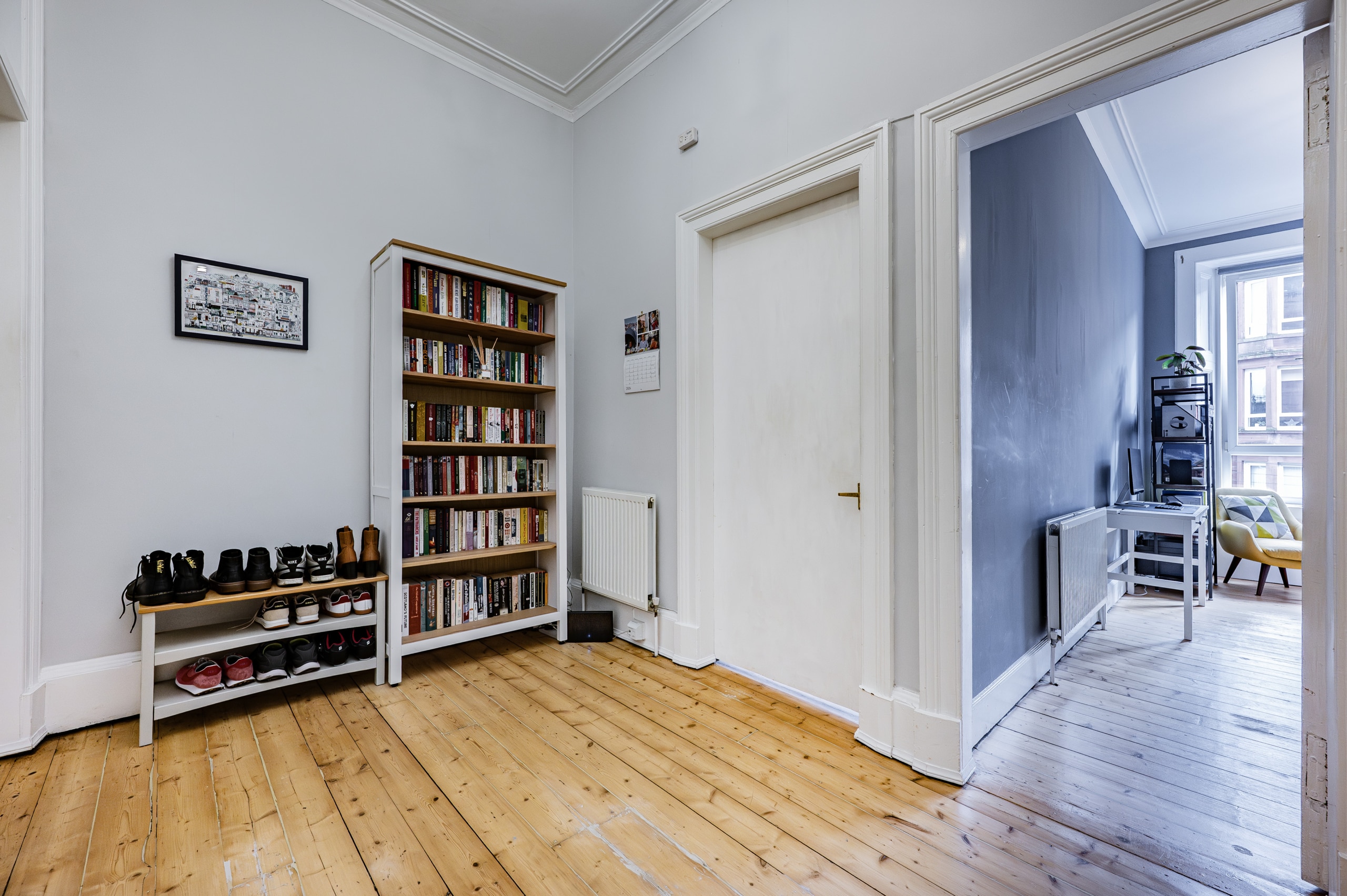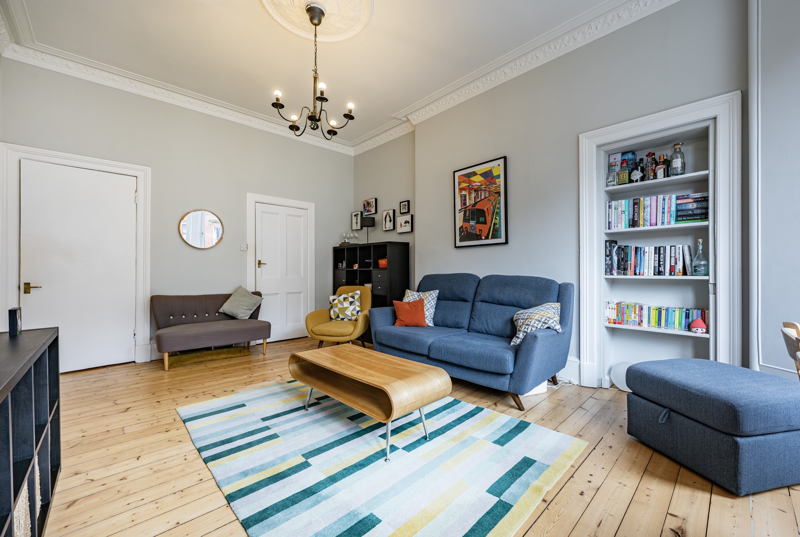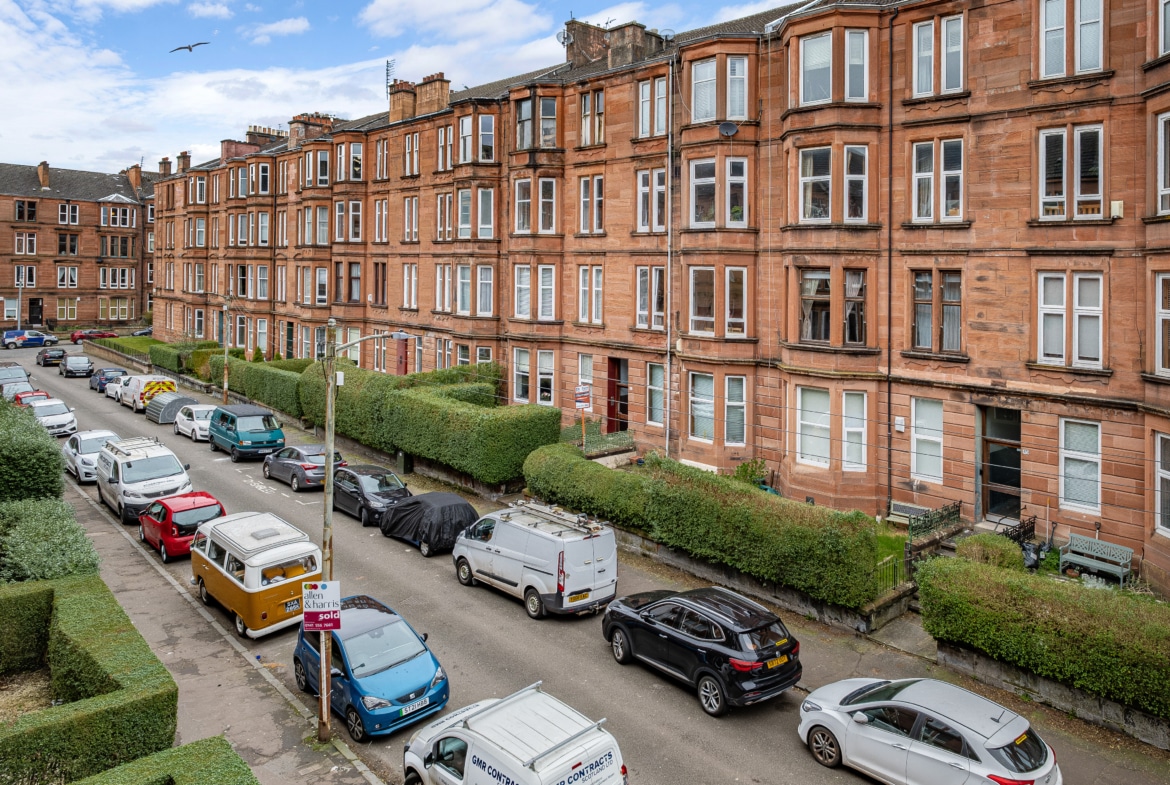 Located on one of the highly sought-after ‘Drives’ in the heart of Dennistoun, this beautifully presented two-bedroom flat occupies a prime first-floor position within a well-maintained red sandstone tenement, with secure door entry and a well-kept communal residents’ garden to the rear.