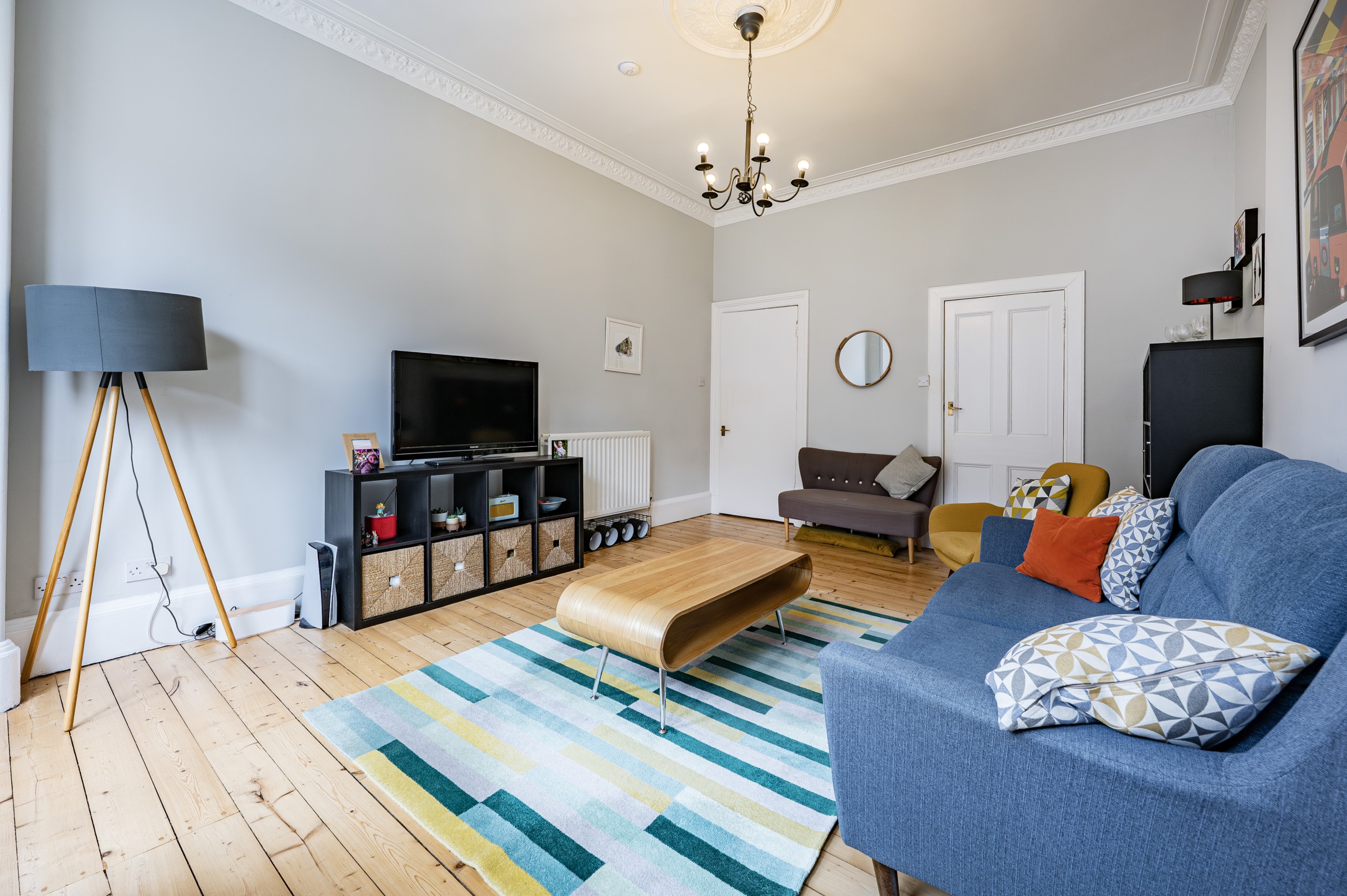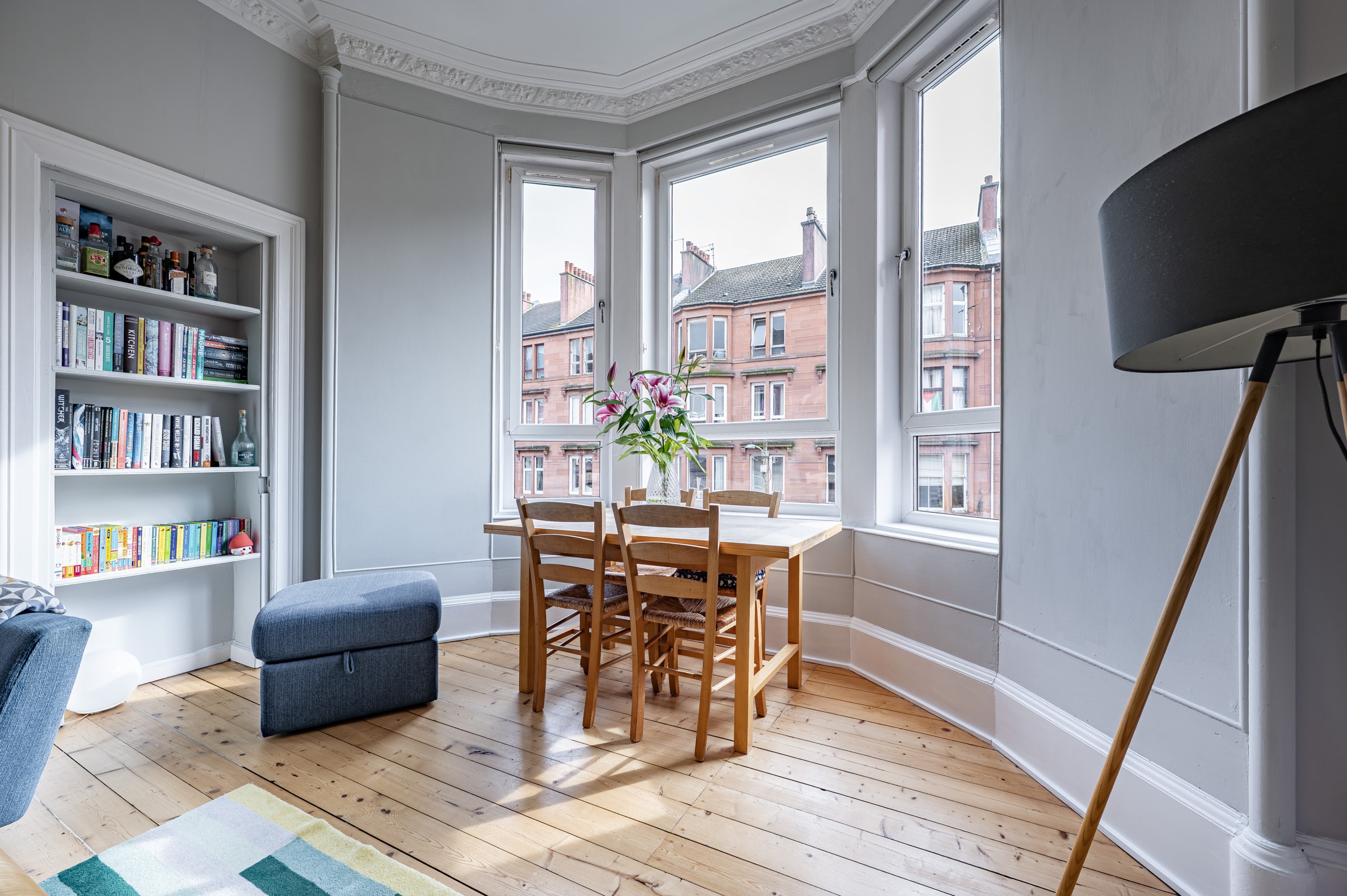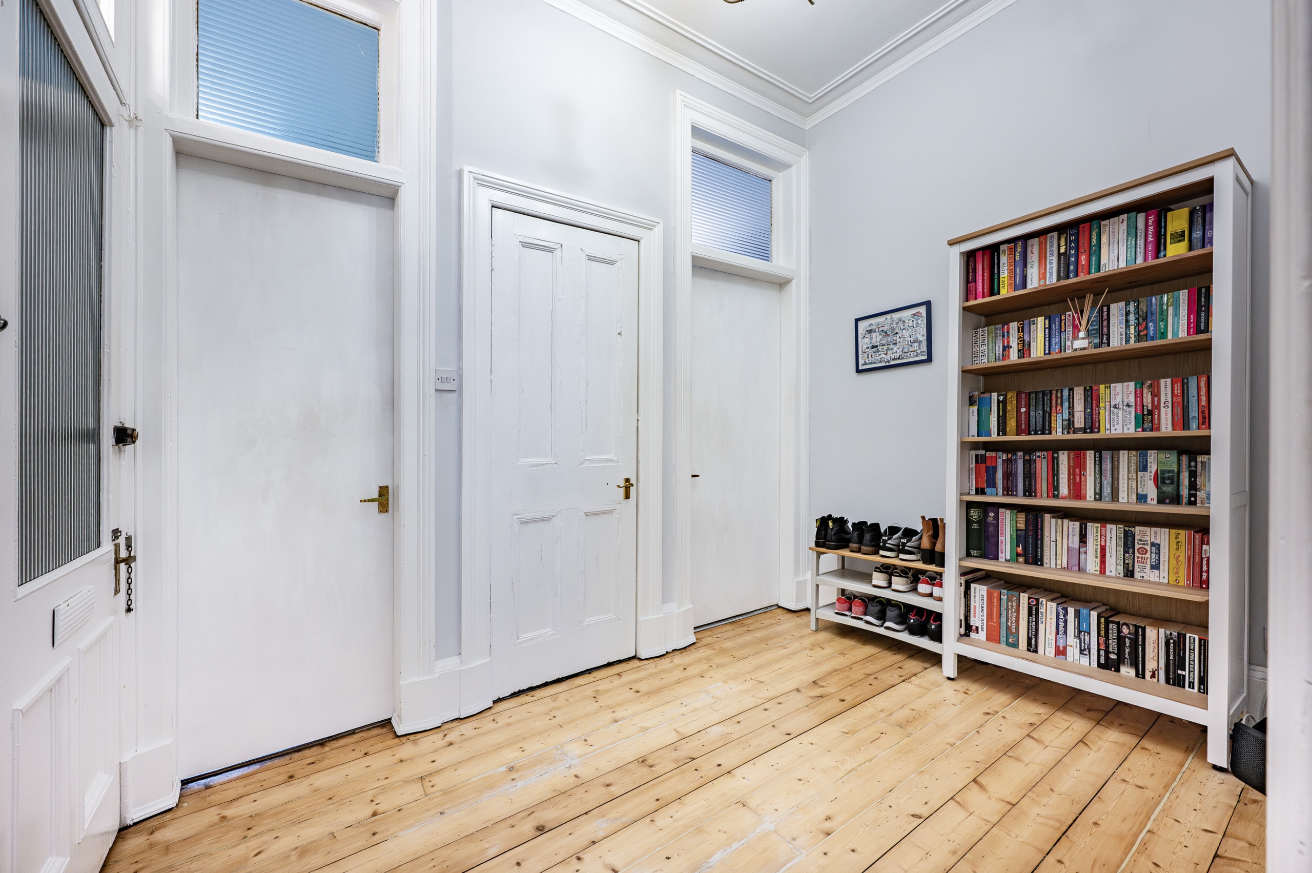 Located on one of the highly sought-after ‘Drives’ in the heart of Dennistoun, this beautifully presented two-bedroom flat occupies a prime first-floor position within a well-maintained red sandstone tenement, with secure door entry and a well-kept communal residents’ garden to the rear.