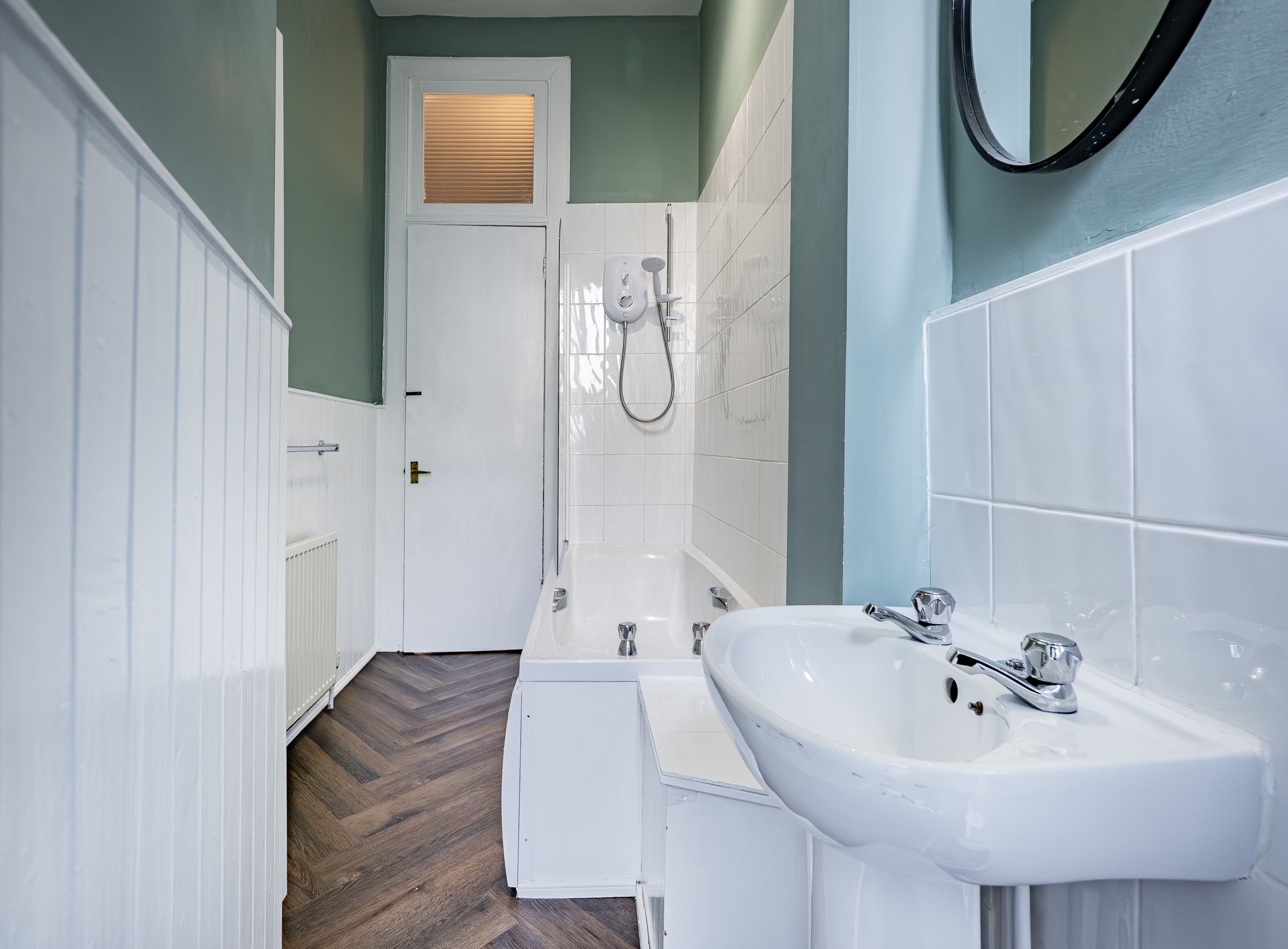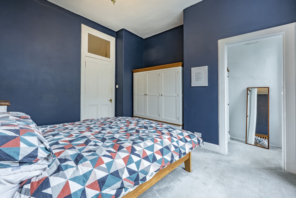 Internally, the property offers a bright and spacious layout, enhanced by a wealth of period features including detailed woodwork and architraves, elegant ceiling cornicing, and original stripped flooring within the hallway, lounge, and front bedroom. Modern upgrades such as double-glazed windows and gas-fired central heating – powered by an Intergas combination boiler installed in 2025, with an 8-year manufacturer’s warranty – ensure comfort and efficiency, while fresh décor and neutral finishes create a welcoming, move-in-ready interior.