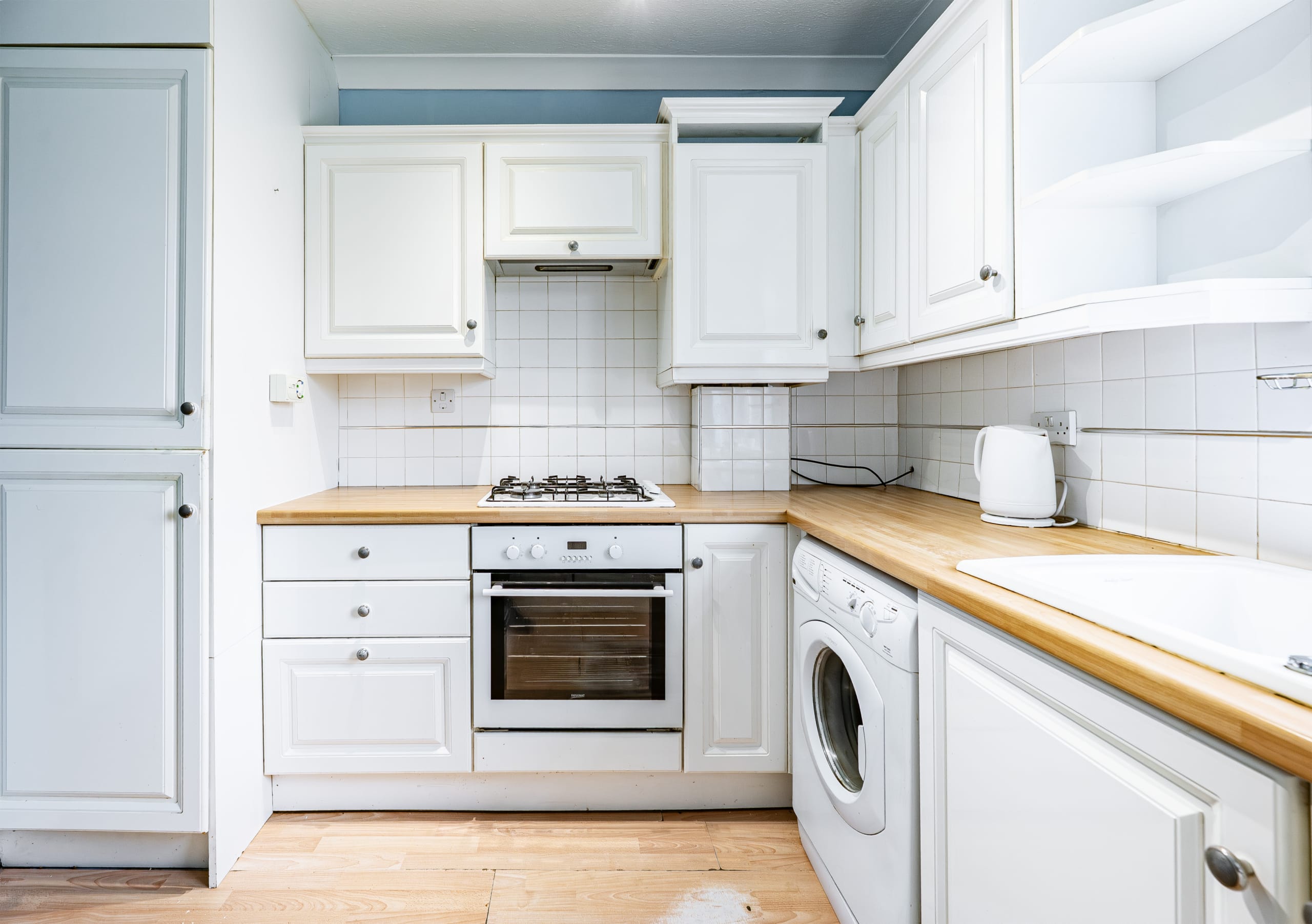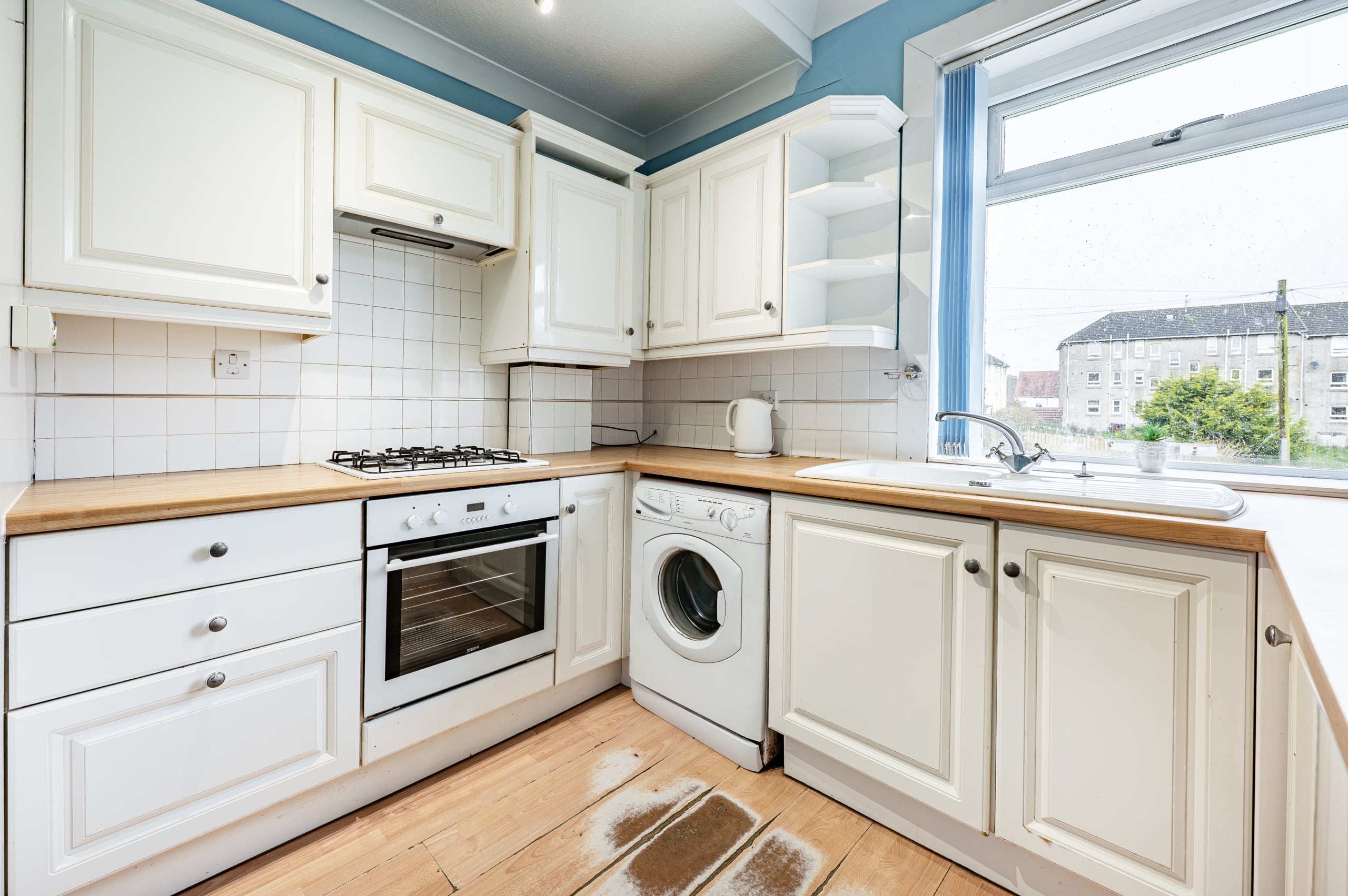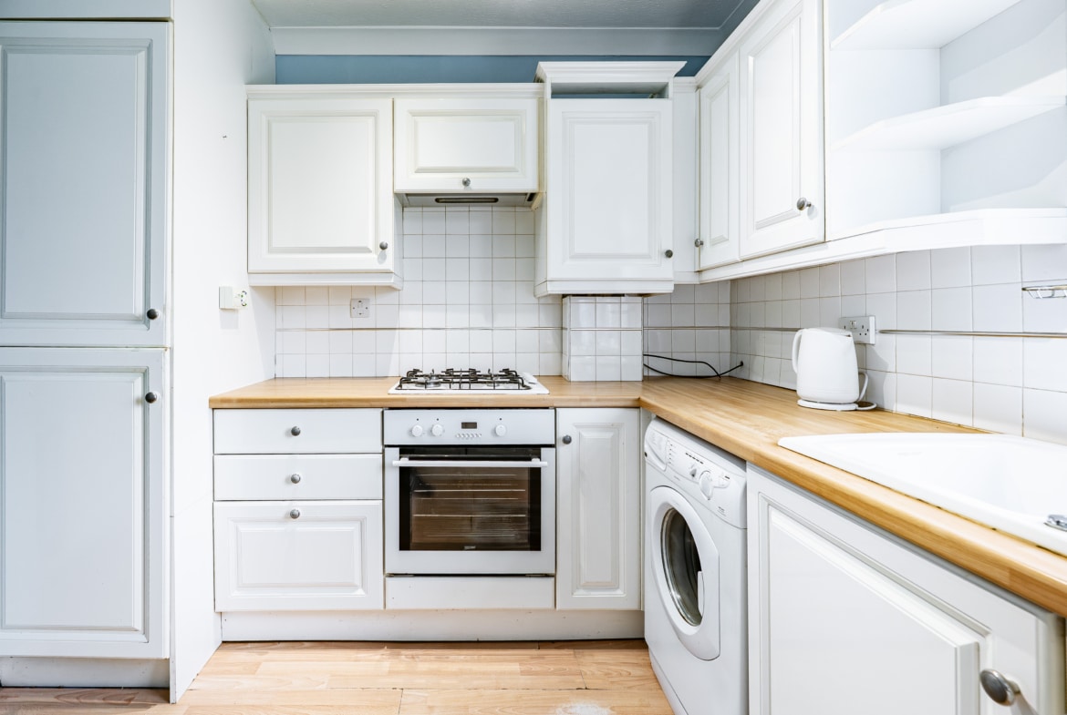 The accommodation is entered via a welcoming reception hallway, which features a useful storage cupboard that could also be utilised as a compact home working space, enjoying a pleasant outlook over the rear gardens. To the front of the property, there is a generously proportioned lounge alongside a spacious double bedroom. The well-appointed kitchen is fitted with a range of base and wall-mounted units and includes an integrated fridge, freezer, oven, and gas hob, with additional space for a freestanding washing machine. A modern wet room completes the internal accommodation.