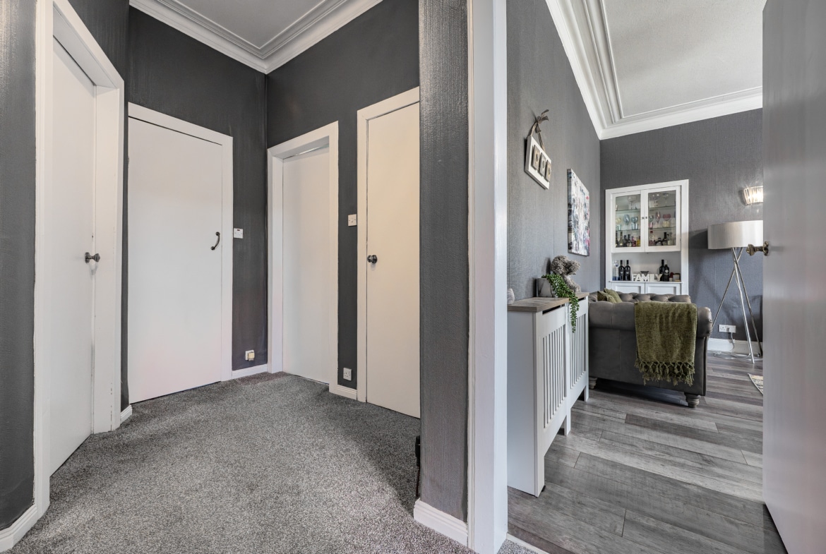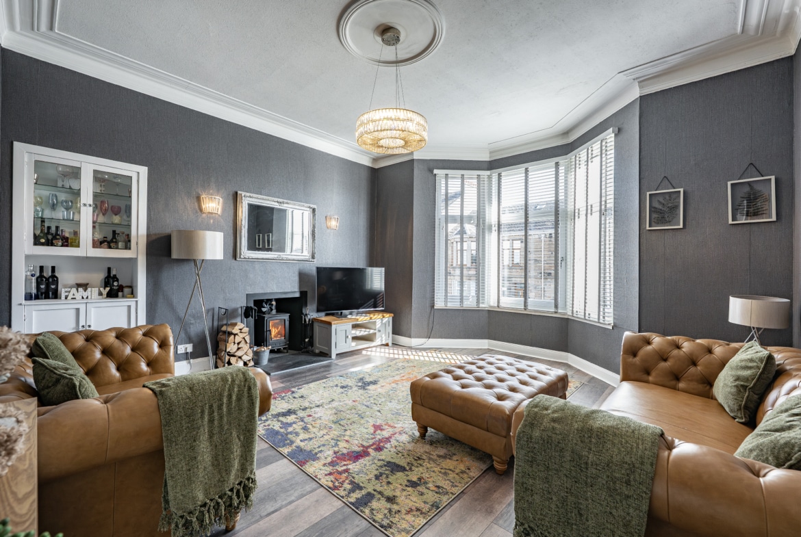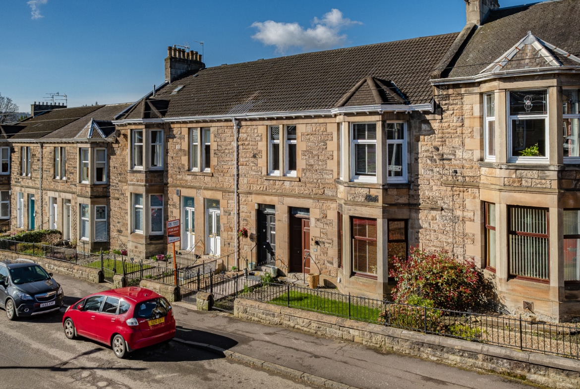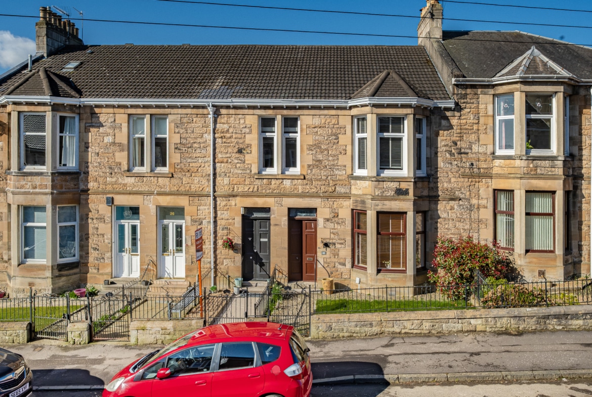 Set within a highly sought-after pocket of Rutherglen, this beautifully refurbished main door upper flat forms part of an attractive blonde sandstone-fronted terrace. Offering an exceptionally spacious four-apartment layout, the property is further enhanced by a private, low-maintenance rear garden and a rarely available garage – an especially valuable addition for a home of this type.