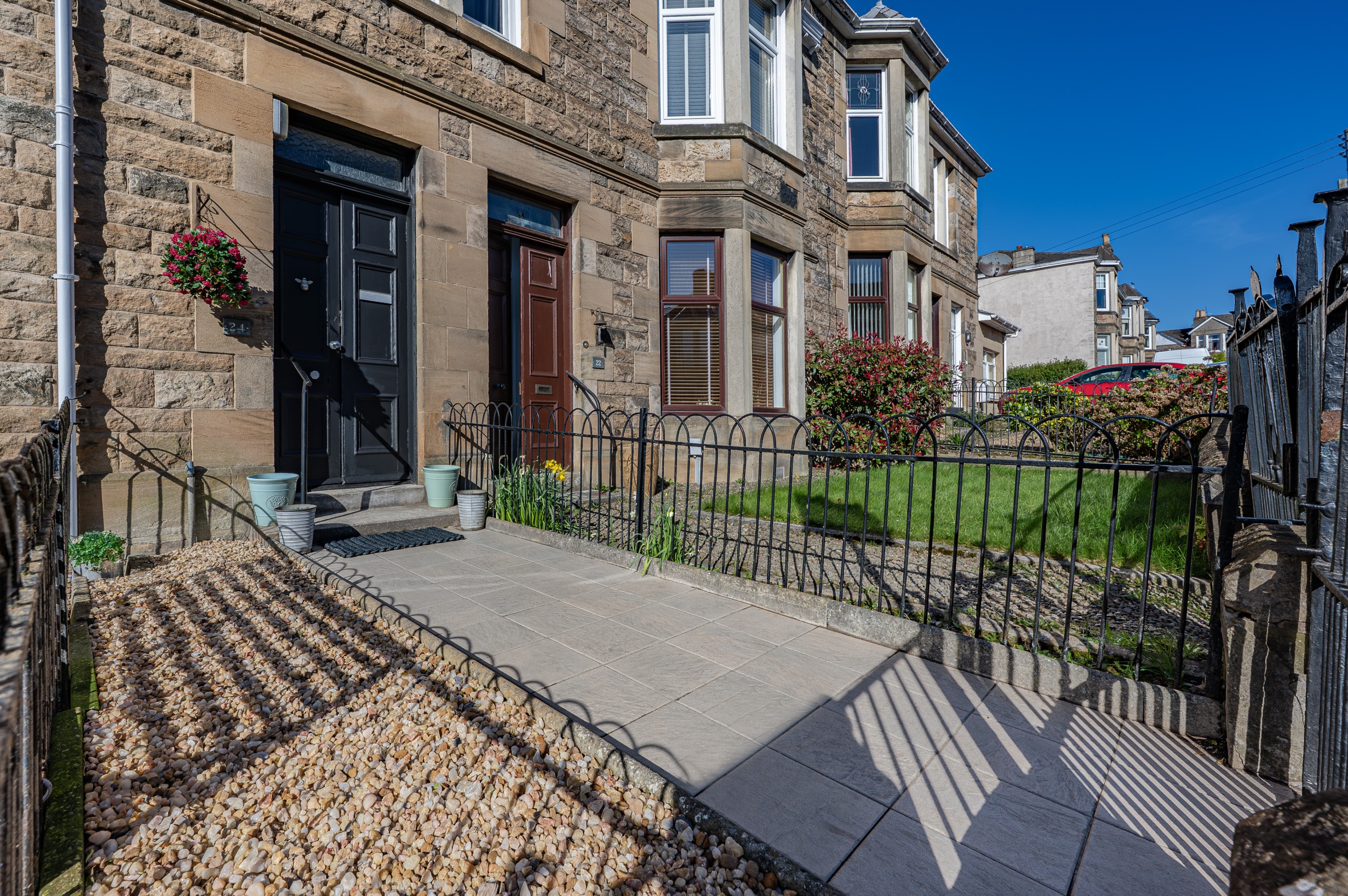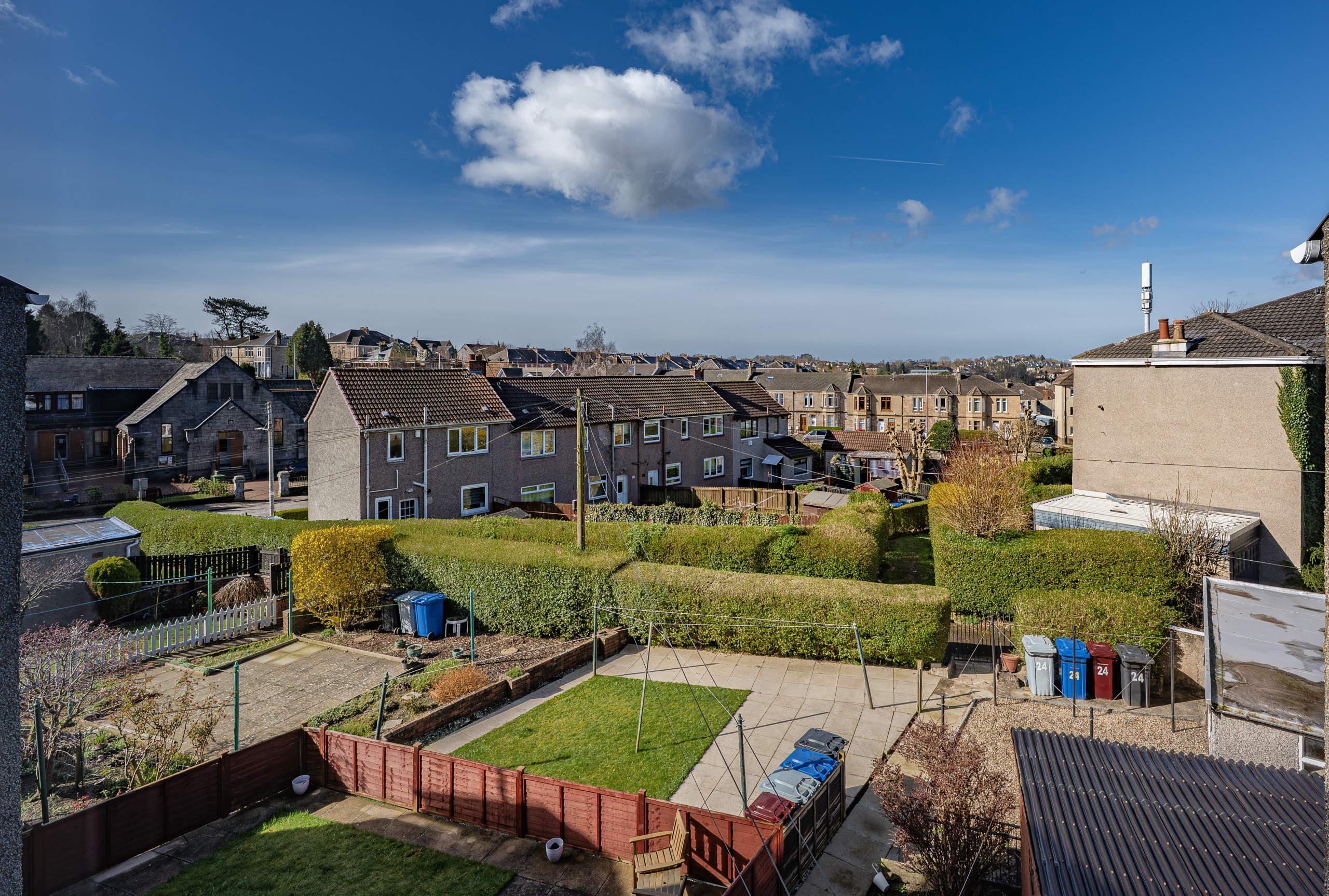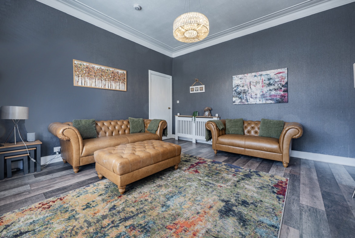 Set within a highly sought-after pocket of Rutherglen, this beautifully refurbished main door upper flat forms part of an attractive blonde sandstone-fronted terrace. Offering an exceptionally spacious four-apartment layout, the property is further enhanced by a private, low-maintenance rear garden and a rarely available garage – an especially valuable addition for a home of this type.