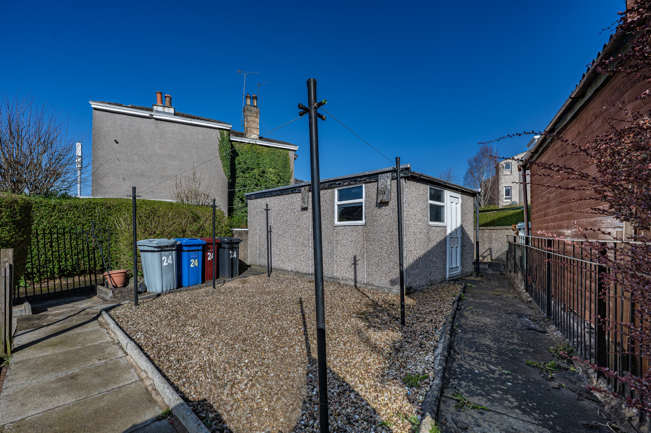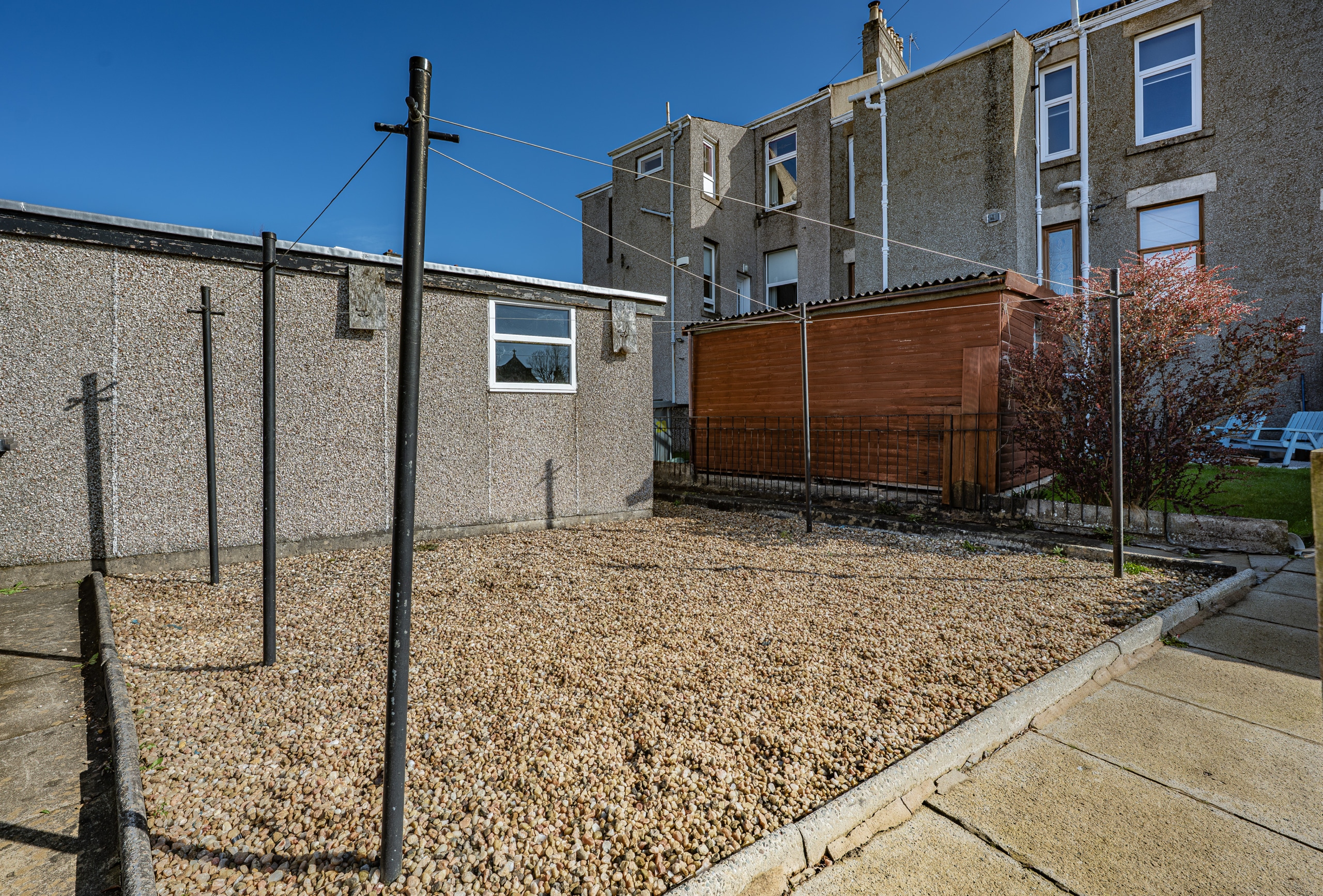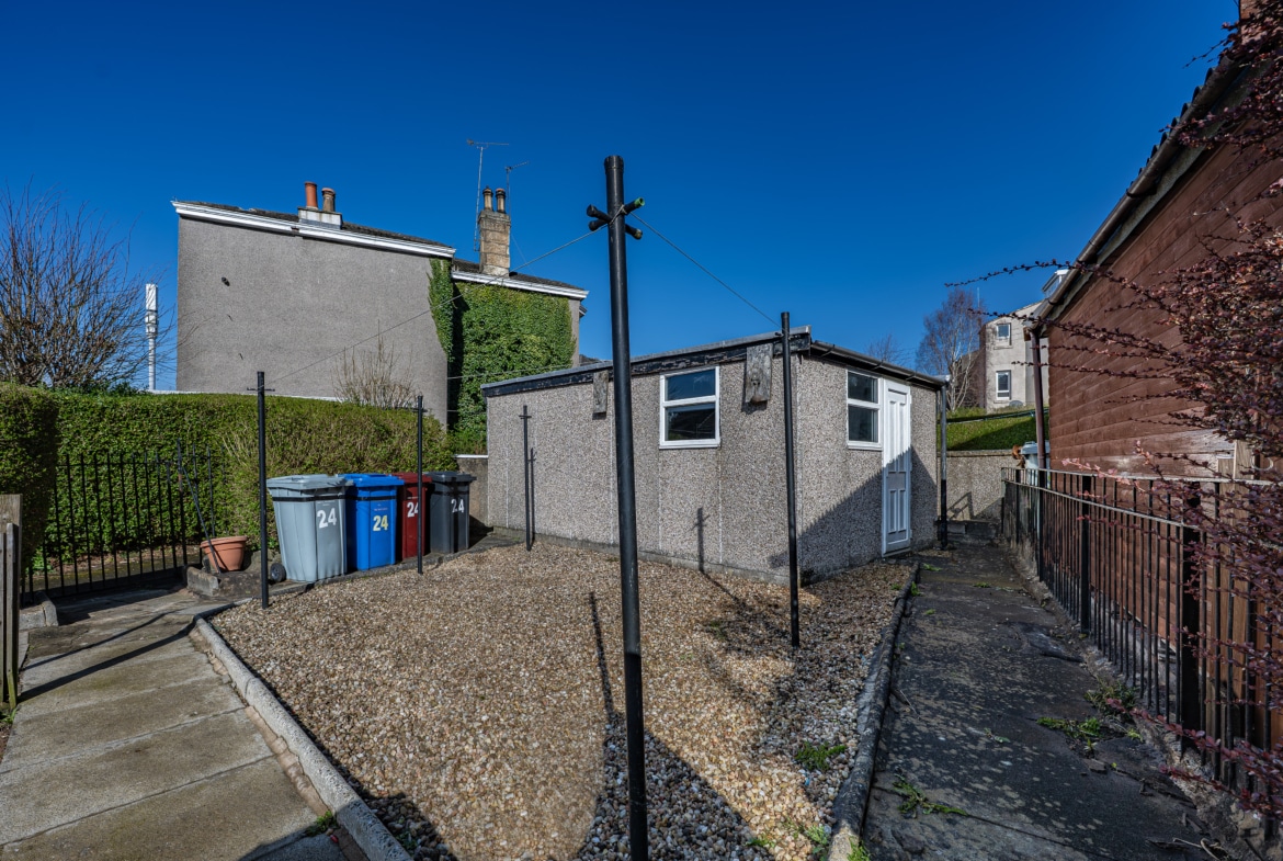 Externally, the home enjoys a neat front garden bordered by low stone walling and wrought iron fencing. The private rear garden is designed for ease of maintenance and provides an ideal setting for outdoor entertaining and alfresco dining. The single garage, accessed via adjacent Balvaird Crescent, offers excellent versatility and could easily serve as a workshop, home office, or personal gym.