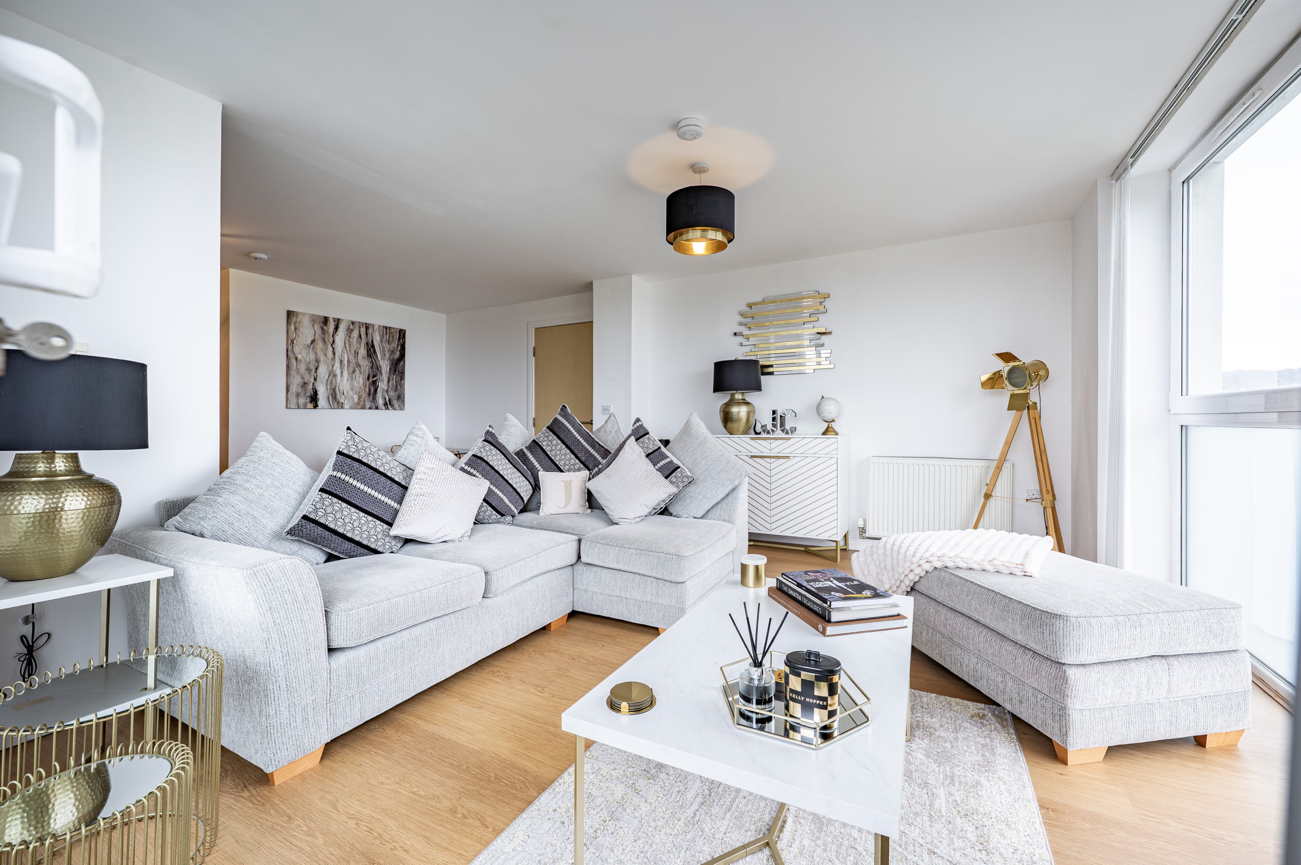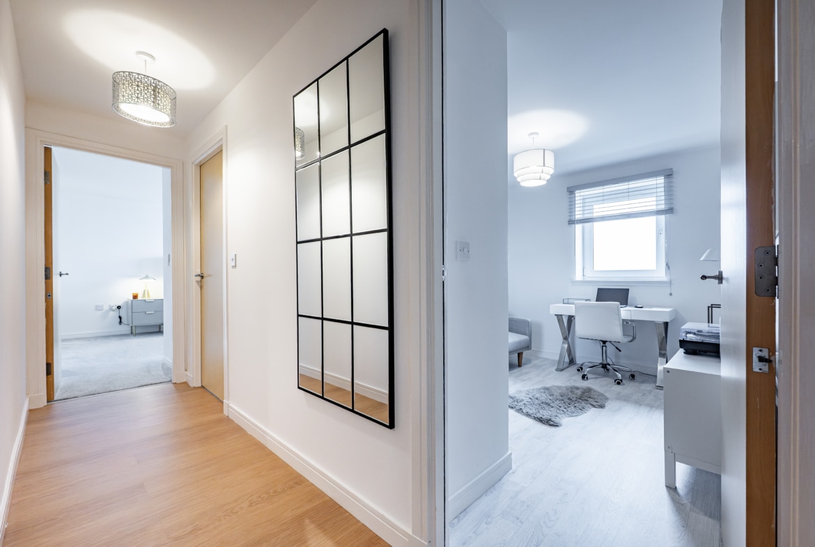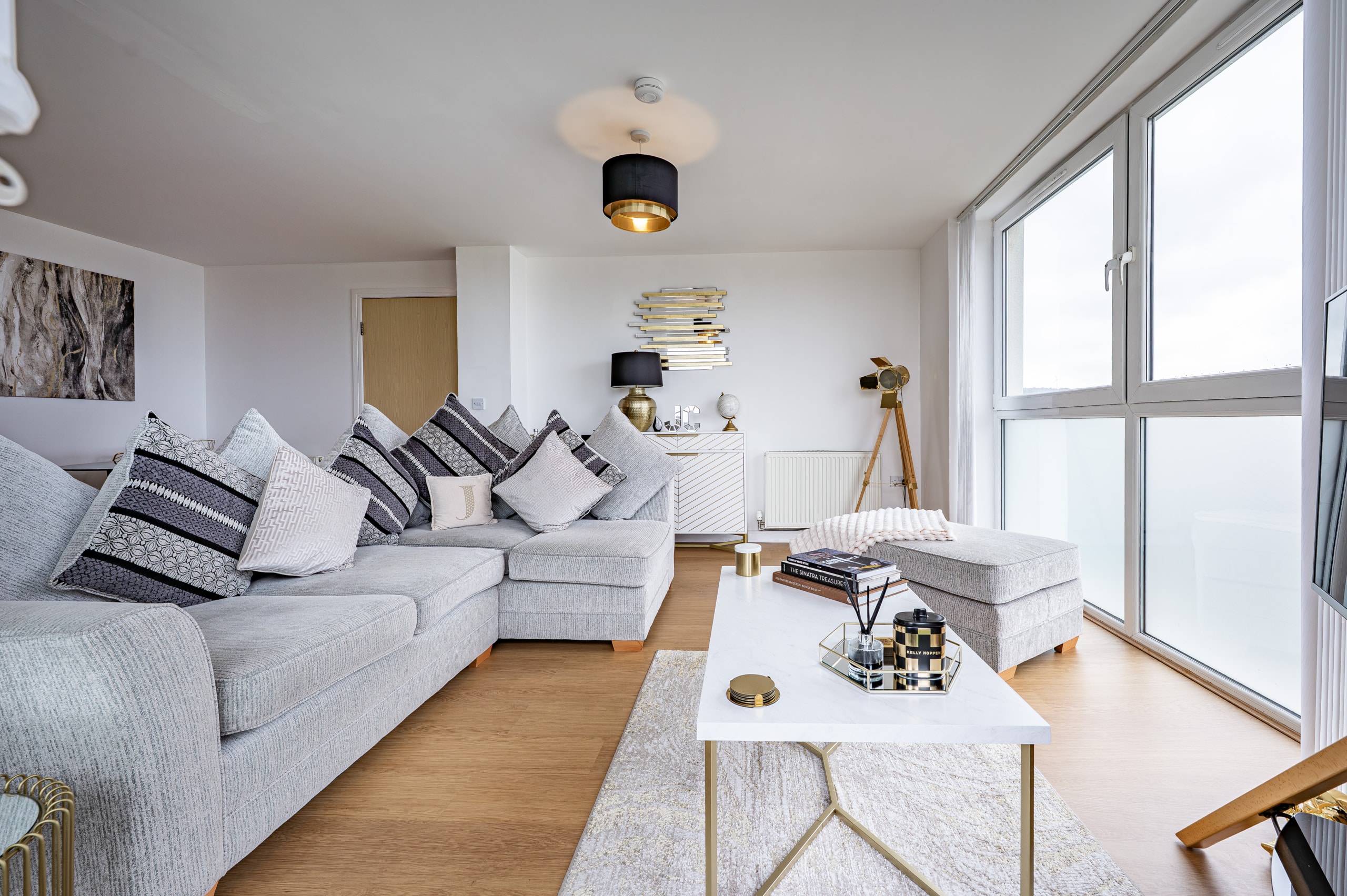 Impeccably presented and finished to an exceptional standard, this stunning three-bedroom corner apartment forms part of the highly sought-after Kings Gait development by Regency Homes, completed circa 2005. Occupying a prime fifth-floor position, the property benefits from an expansive layout with all principal rooms enjoying open westerly aspects. The impressive main living area opens onto a delightful balcony, offering far-reaching views and the perfect setting to enjoy evening sunsets.