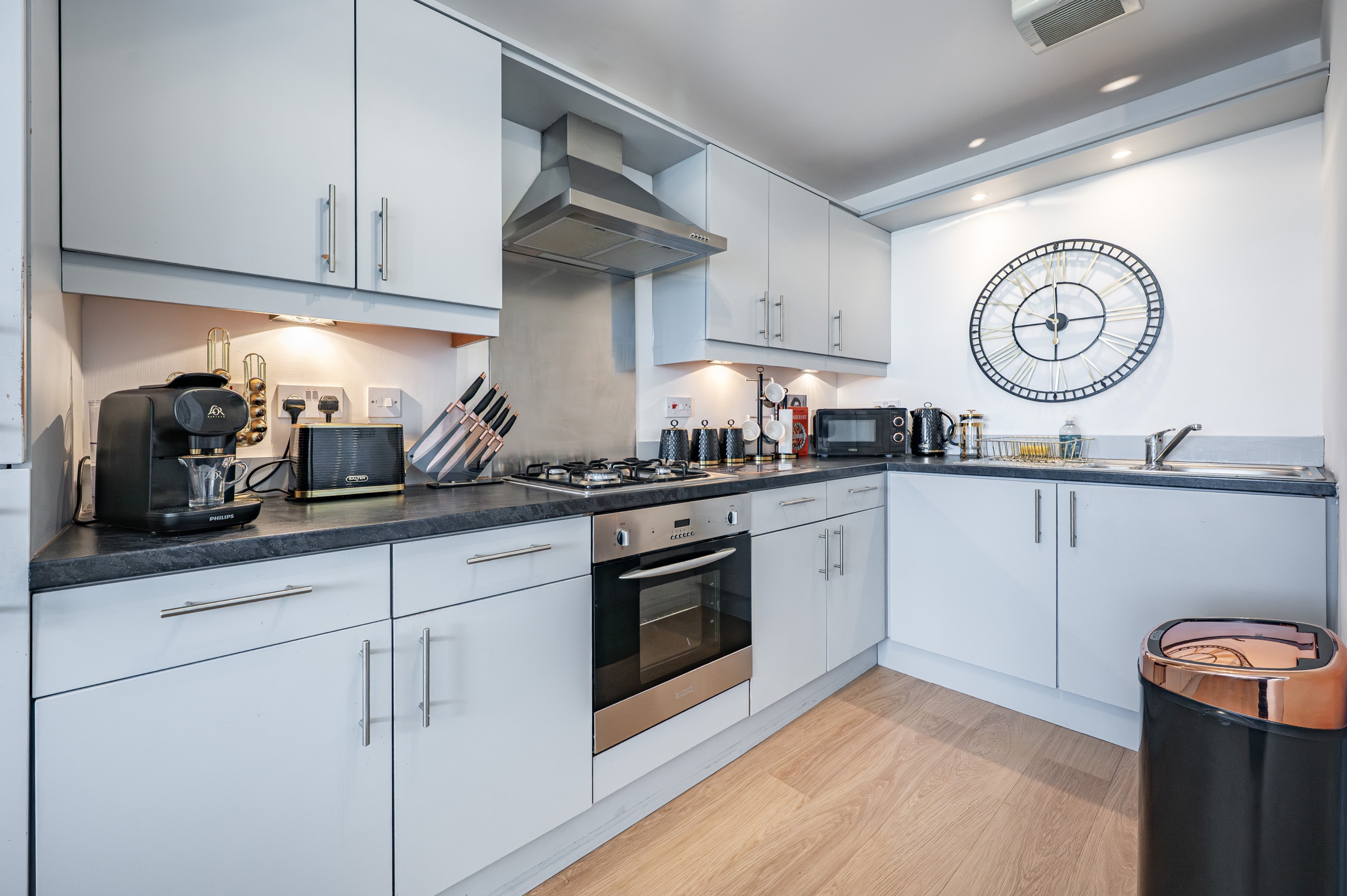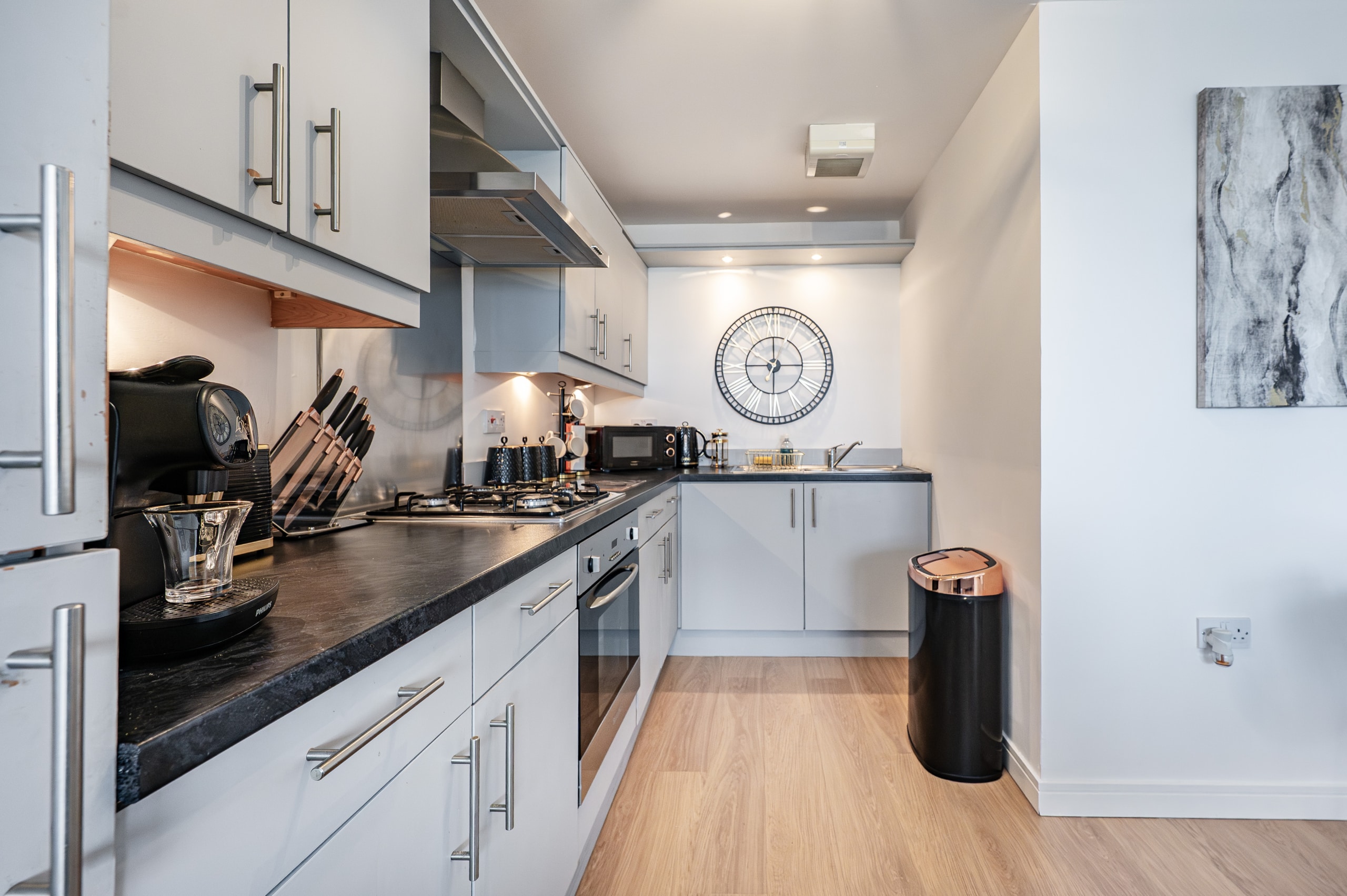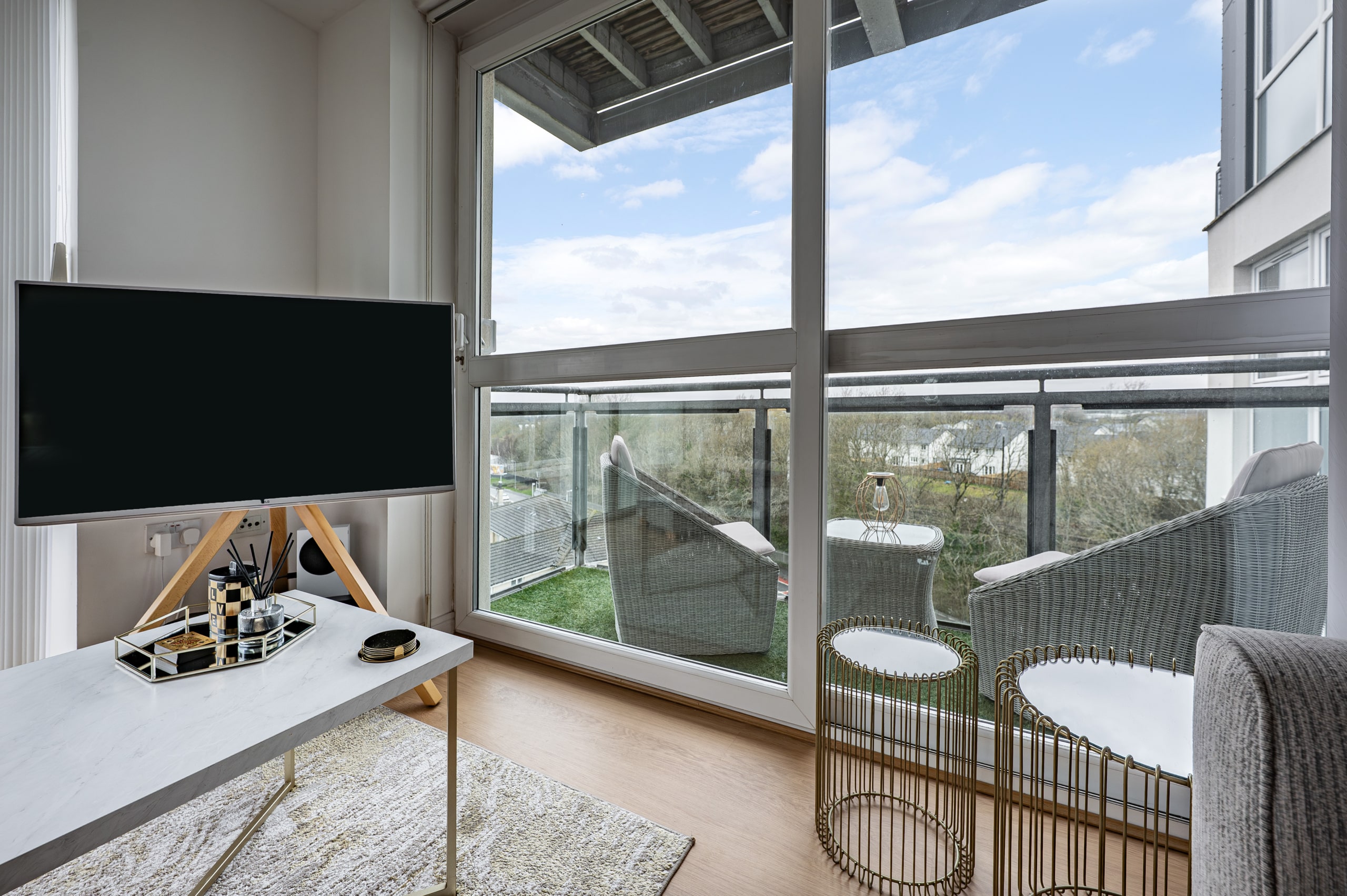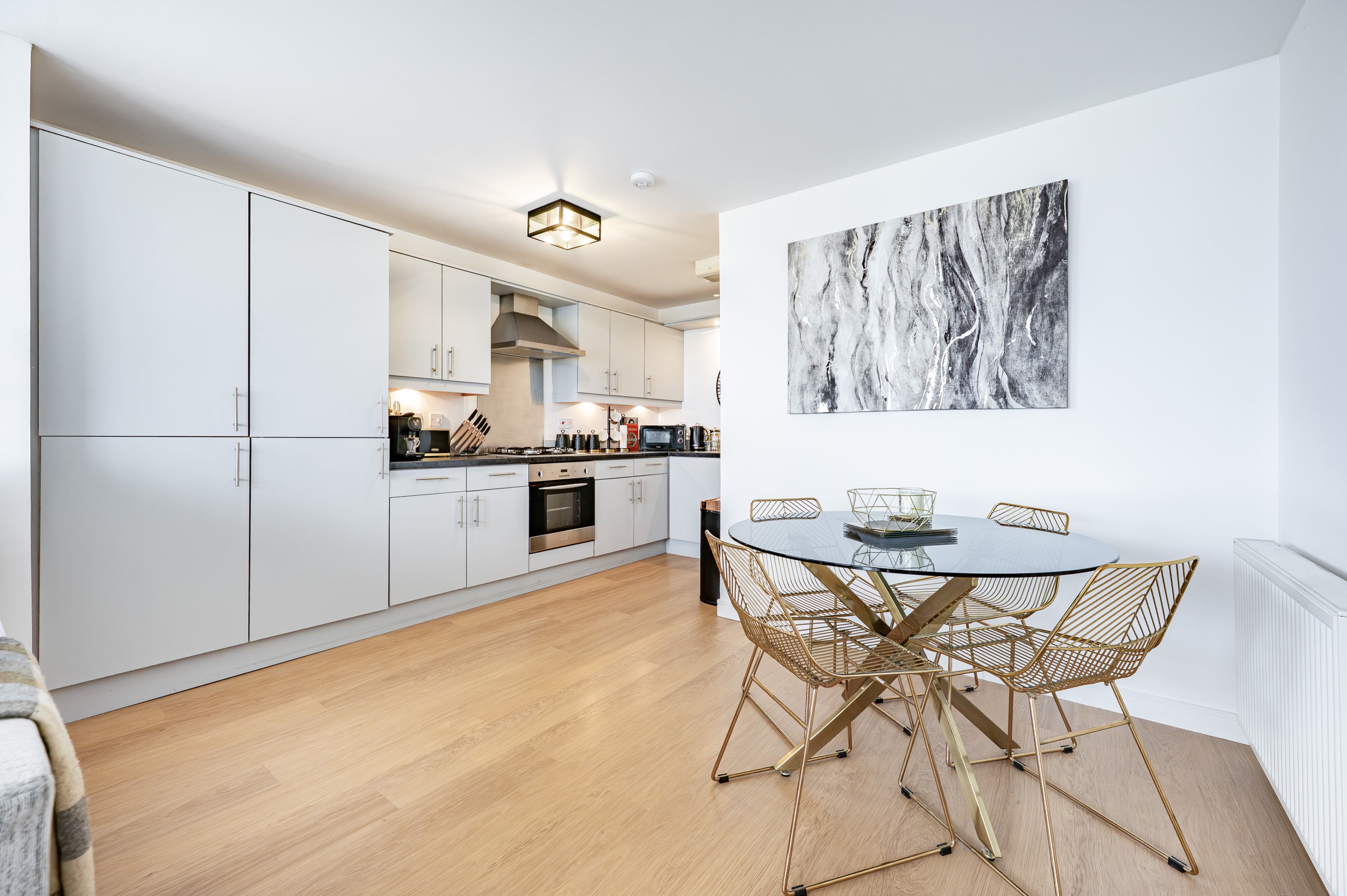 Impeccably presented and finished to an exceptional standard, this stunning three-bedroom corner apartment forms part of the highly sought-after Kings Gait development by Regency Homes, completed circa 2005. Occupying a prime fifth-floor position, the property benefits from an expansive layout with all principal rooms enjoying open westerly aspects. The impressive main living area opens onto a delightful balcony, offering far-reaching views and the perfect setting to enjoy evening sunsets.