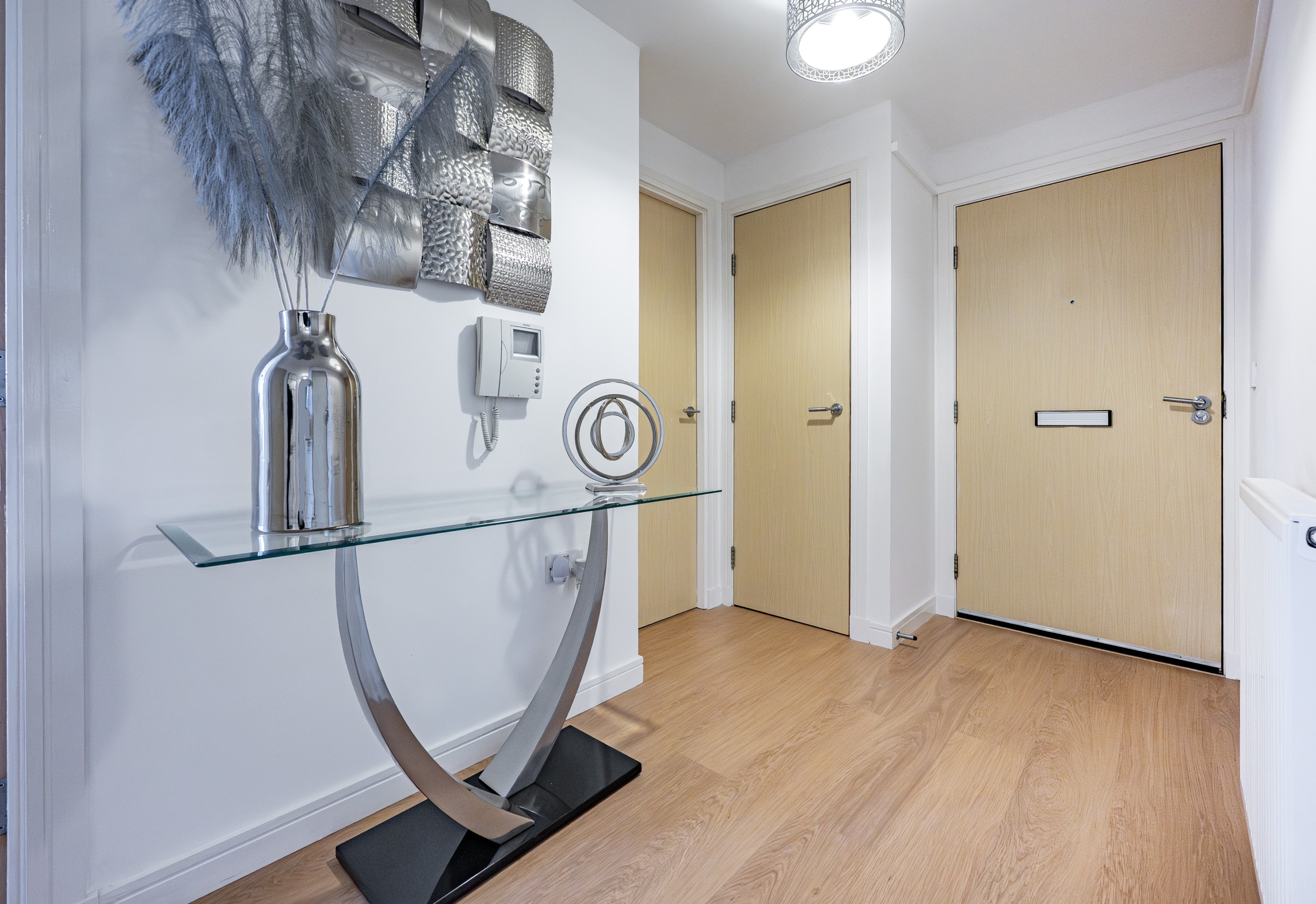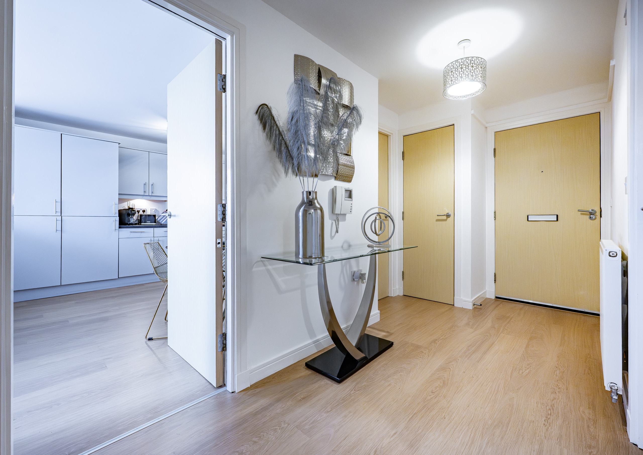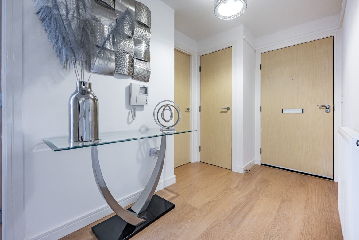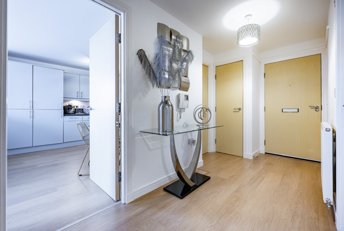 The apartment has been thoughtfully upgraded and meticulously maintained, featuring high-quality flooring and fresh, neutral décor throughout. There is a contemporary fitted kitchen with appliances, while the principal bedroom is enhanced by a modern en-suite shower room. The main bathroom has been beautifully re-fitted within the past two years to a modern specification. Further benefits include PVC double glazing and gas-fired central heating via an Ideal combination boiler. The building itself offers secure video entry, as well as lift and stair access to all levels, ensuring excellent accessibility.
