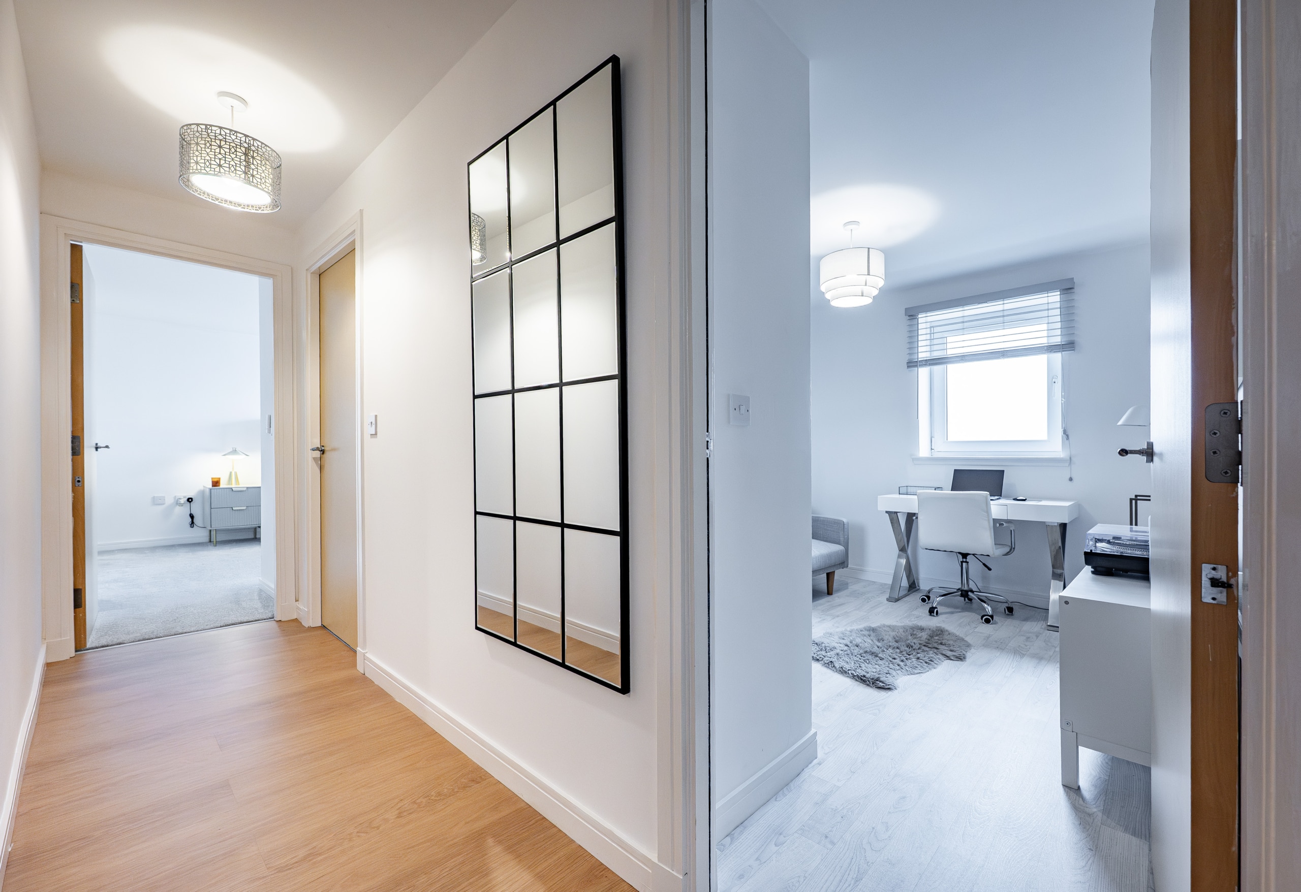 There are three well-proportioned bedrooms, two of which feature fitted wardrobes, while the principal bedroom enjoys the added benefit of an en-suite. A stylishly fitted three-piece bathroom completes the internal accommodation.