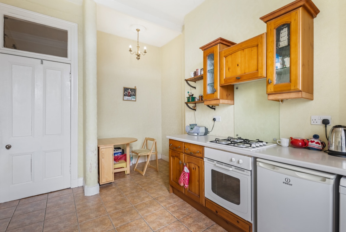 Internally, the accommodation comprises a welcoming and generously proportioned lounge, offering an excellent space for both relaxing and entertaining. The double bedroom is well sized and benefits from good natural light. To the rear, the dining-sized kitchen provides ample space for cooking and dining, while the galley-style bathroom completes the layout. The property requires a degree of internal upgrading, presenting a fantastic chance for purchasers to modernise and personalise to their own taste, ultimately creating a superb home in a prime location.