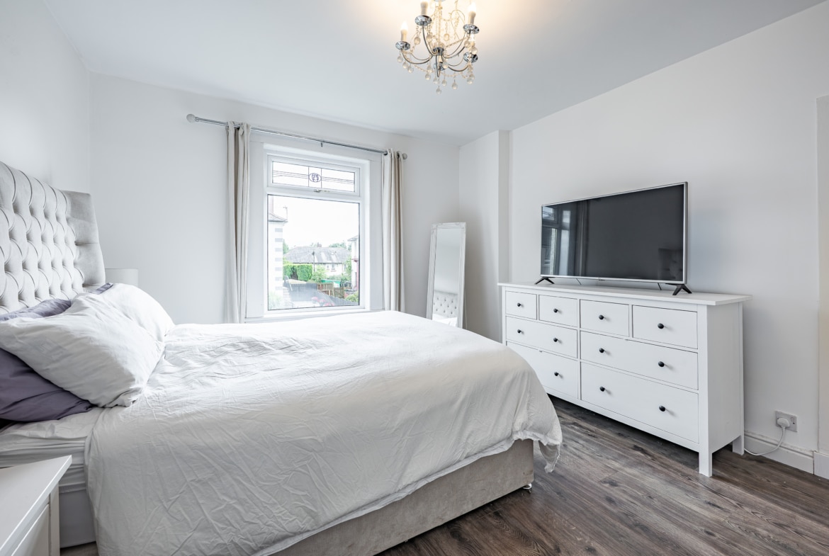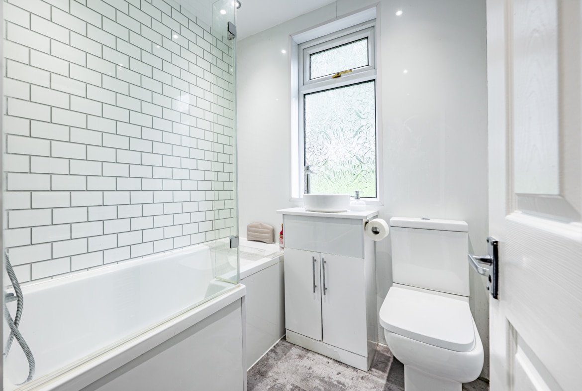 Both bedrooms are generously sized, and completing the accommodation is a stunning bathroom featuring a pristine white three-piece suite with a thermostatic mixer shower over the bath.