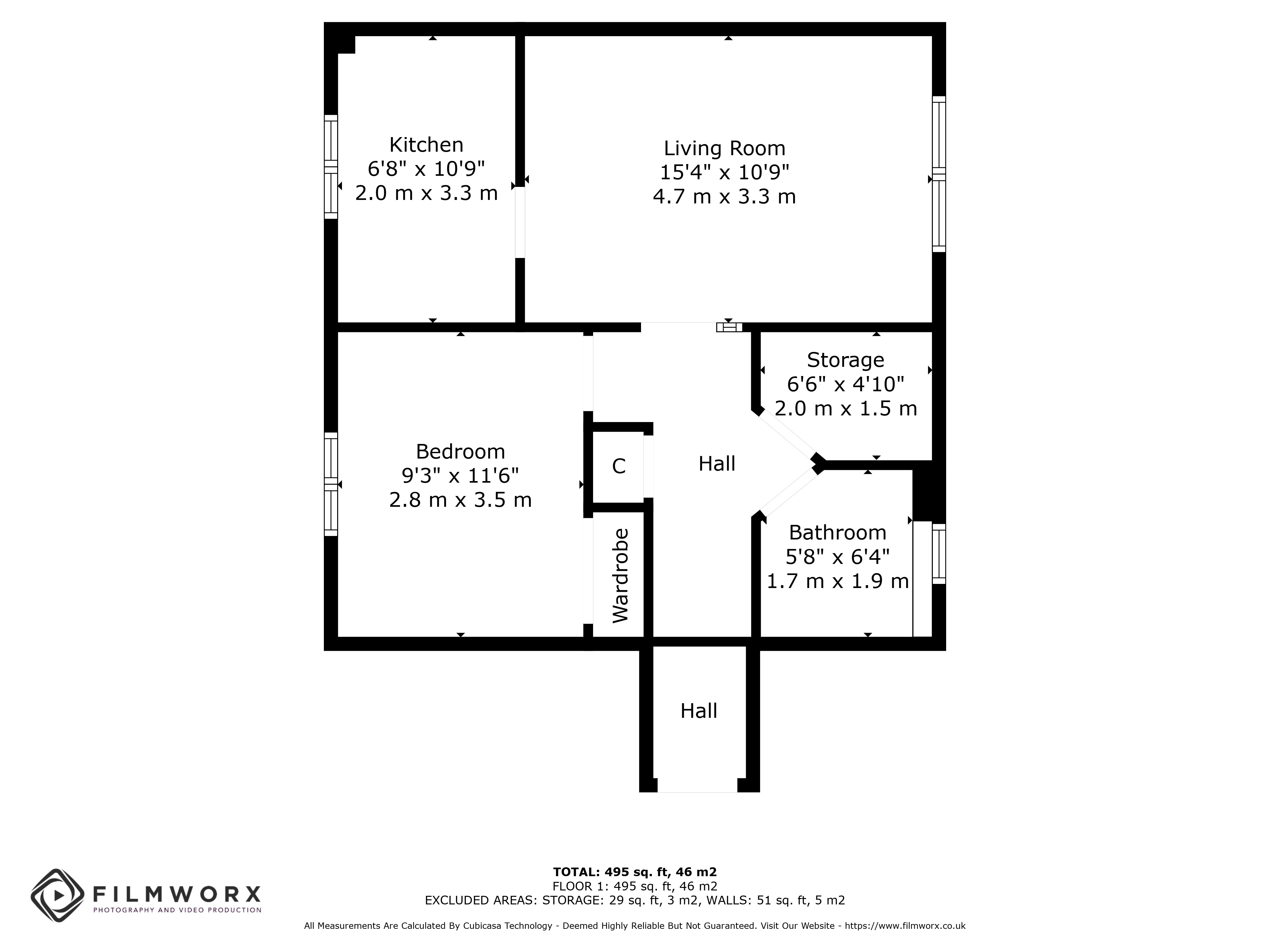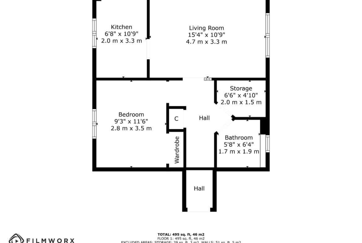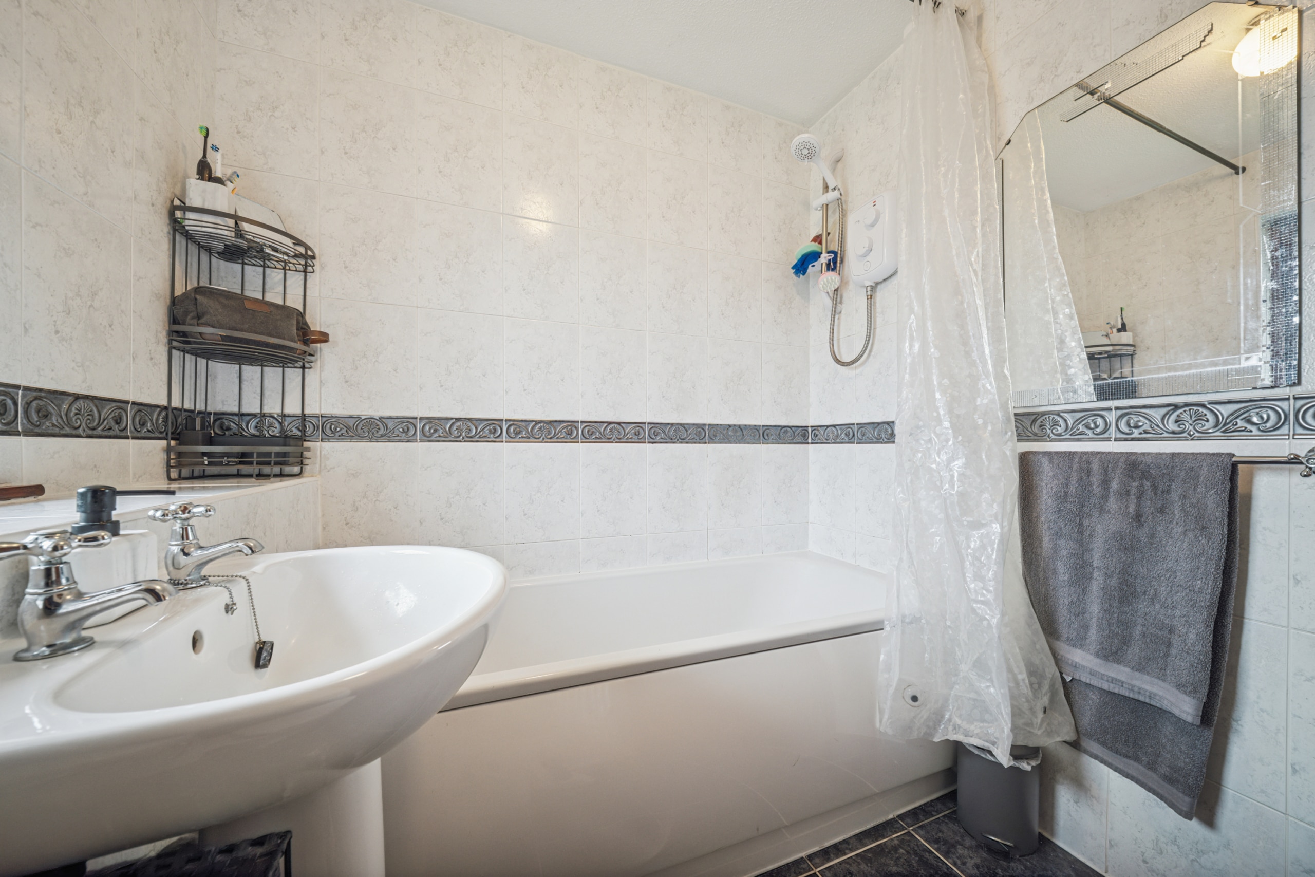 The double bedroom is positioned to the rear of the property enjoying a peaceful aspect, the room benefits from built in storage. Completing the accommodation is the tiled bathroom featuring a bath, electric over bath shower, toilet, and sink. Electric heating and double glazing provide year-round comfort.
