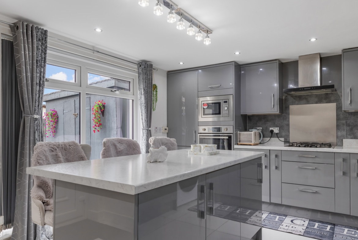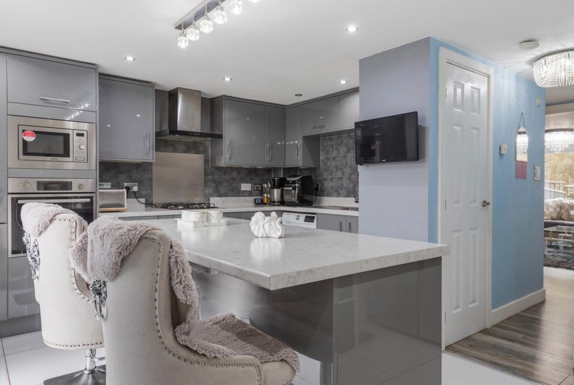 The accommodation comprises four well-proportioned bedrooms, including a superb principal bedroom complete with a stylish en-suite shower room. The remaining bedrooms are versatile and can be utilised as guest rooms, home offices, or additional family space depending on requirements. The heart of the home is the large, contemporary kitchen, offering ample space for dining and entertaining, while the bright and spacious lounge provides a welcoming environment with excellent natural light and pleasant outlooks.