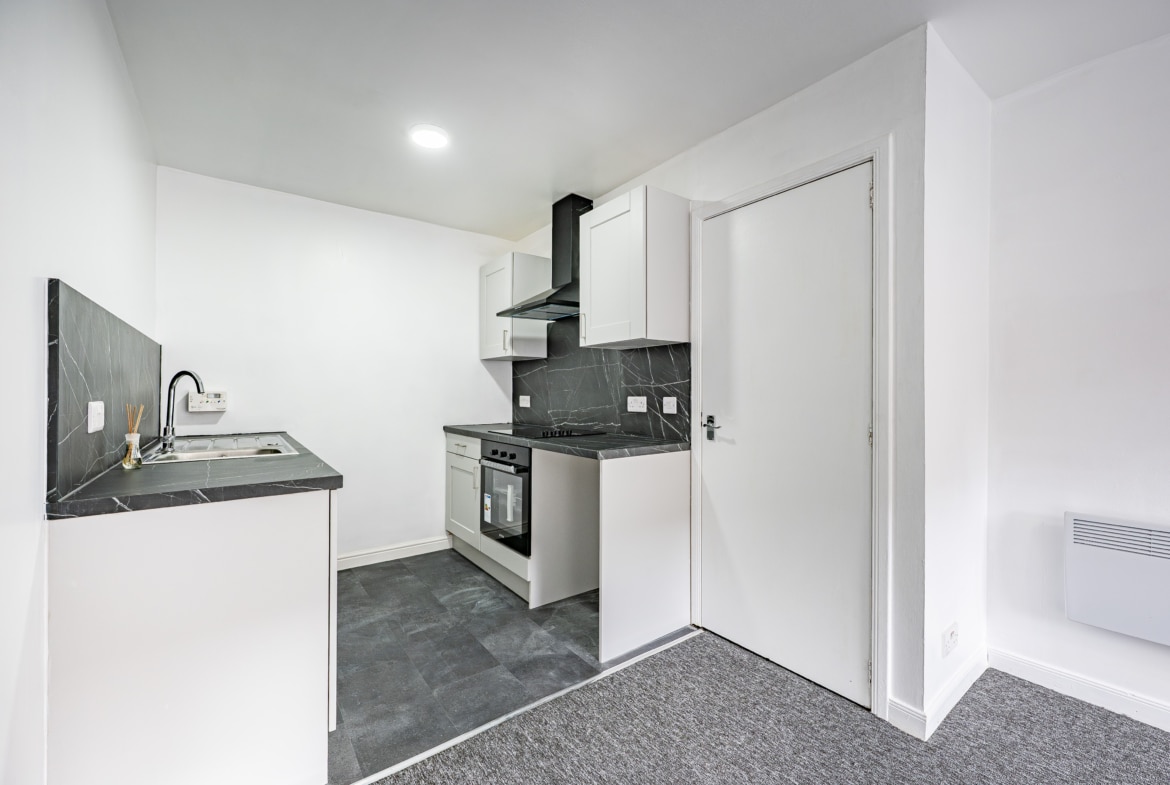 The accommodation is well-proportioned and thoughtfully arranged. A welcoming entrance hallway provides access to all apartments and features a large walk-in storage cupboard. The bright, south-facing lounge is a particularly attractive living space, enhanced by two front-facing windows which flood the room with natural light. Open plan to the lounge is a stylish contemporary kitchen fitted with a range of base and wall-mounted units, an integrated oven and ceramic hob, with designated space for a fridge freezer and washing machine.