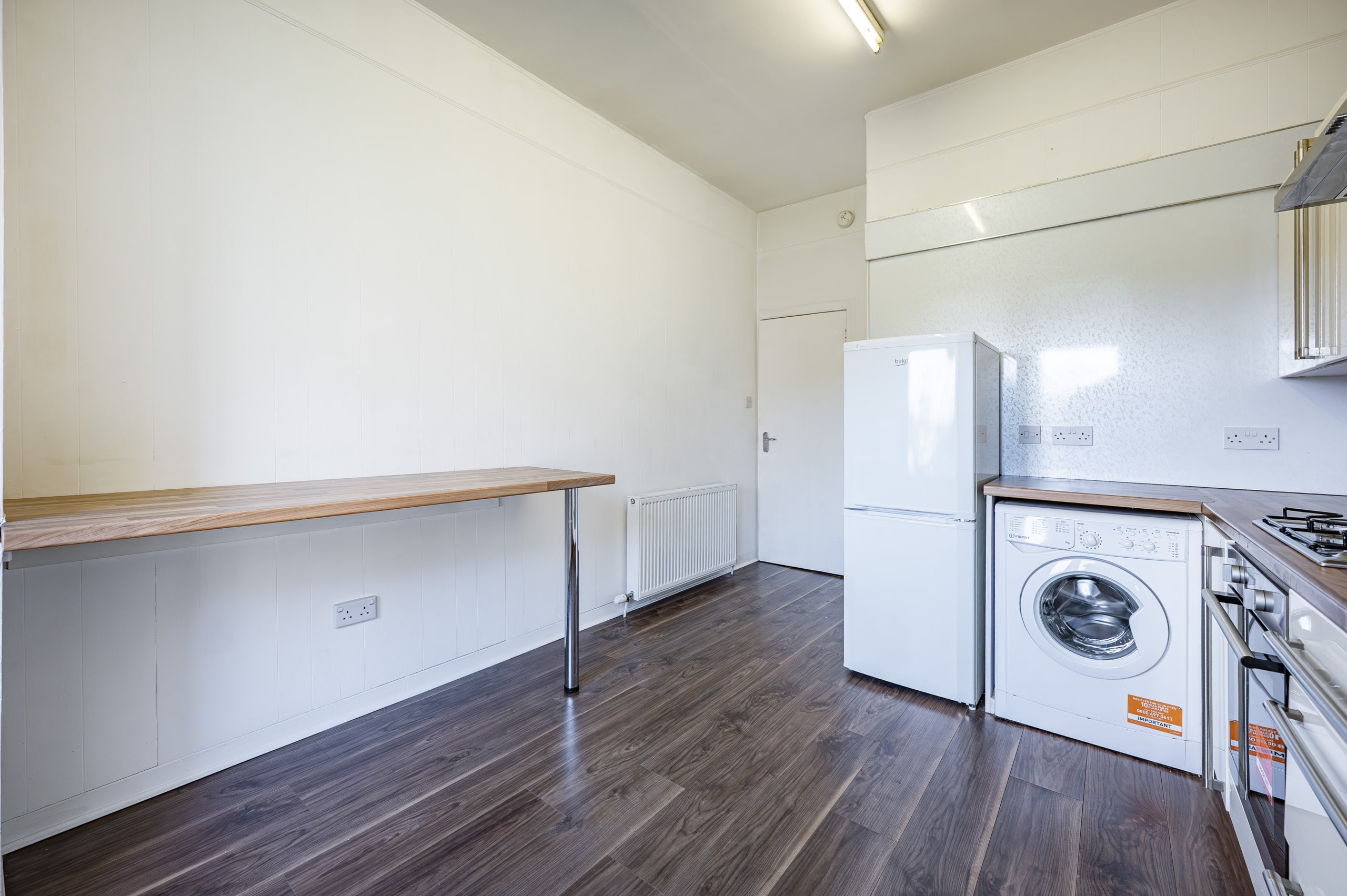 The accommodation is accessed via a welcoming and expansive reception hallway, complete with a useful storage cupboard and access to all principal apartments. The impressive front-facing lounge is flooded with natural light from a broad three-section bay window and further benefits from an additional large storage cupboard. To the rear, the spacious dining kitchen is well-equipped with a range of base and wall-mounted units, a breakfast bar, integrated oven and hob, and freestanding appliances including a fridge freezer and washing machine.