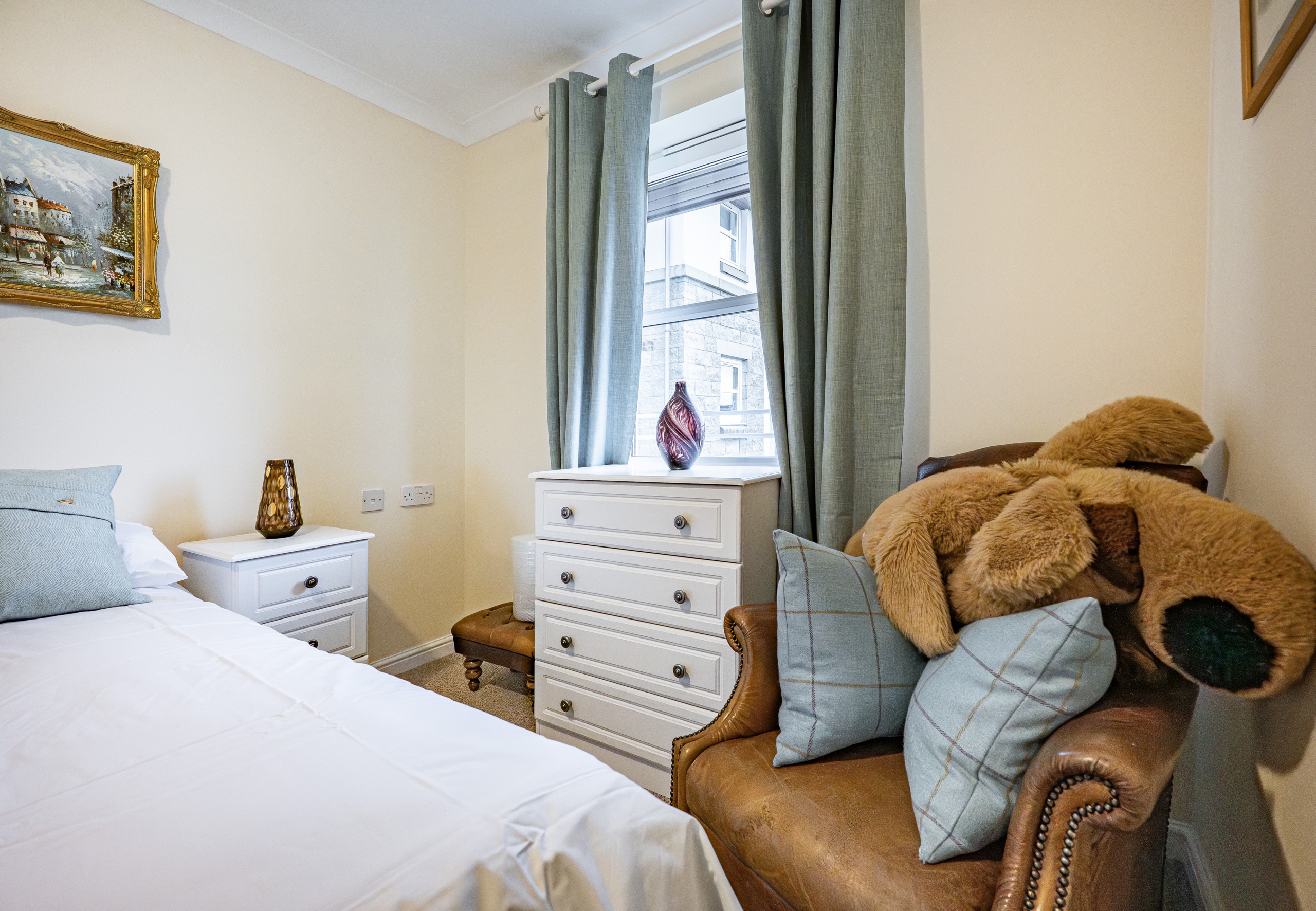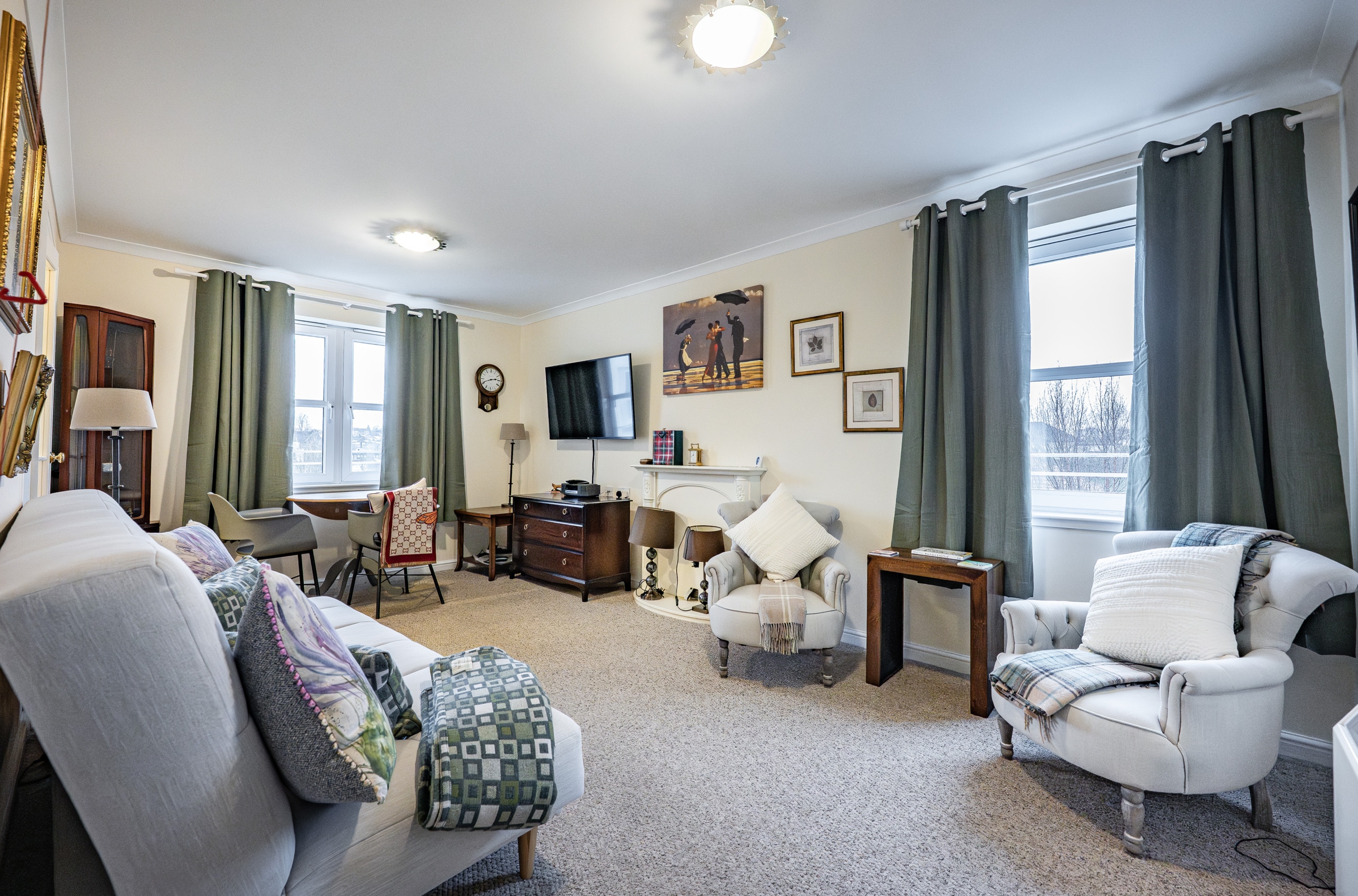 There is a lift access to all levels of the building and an onsite warden, with emergency cords fitted in each room for contact. There is a residents’ lounge on the ground floor where weekly coffee mornings and similar social activities take place. On the lower ground floor there is a fully equipped laundry room.