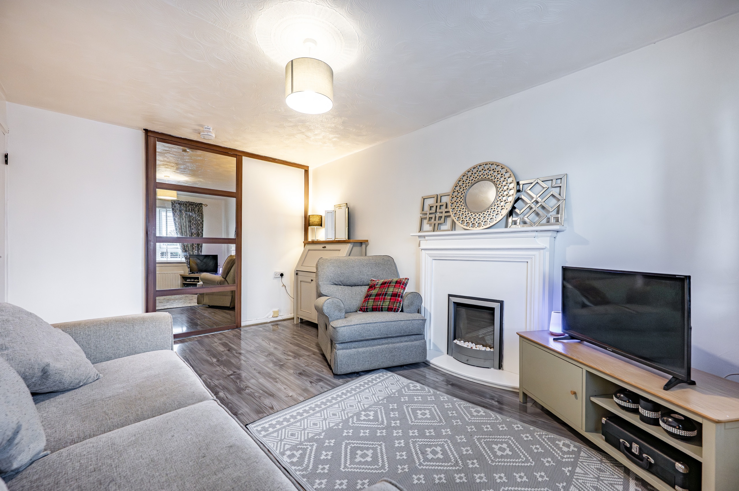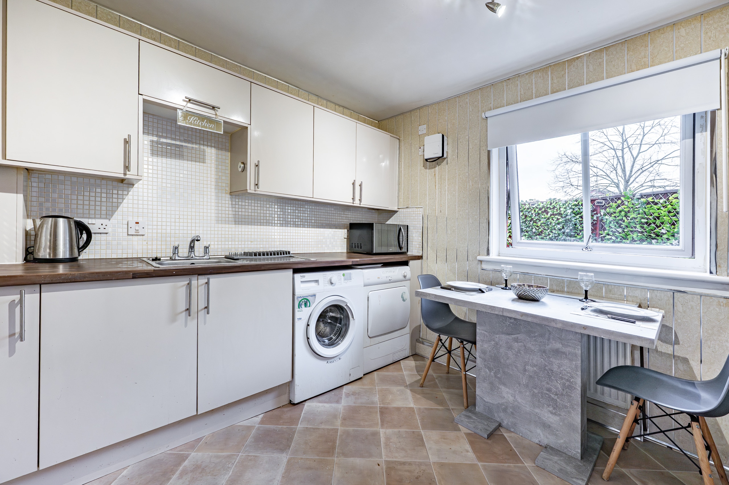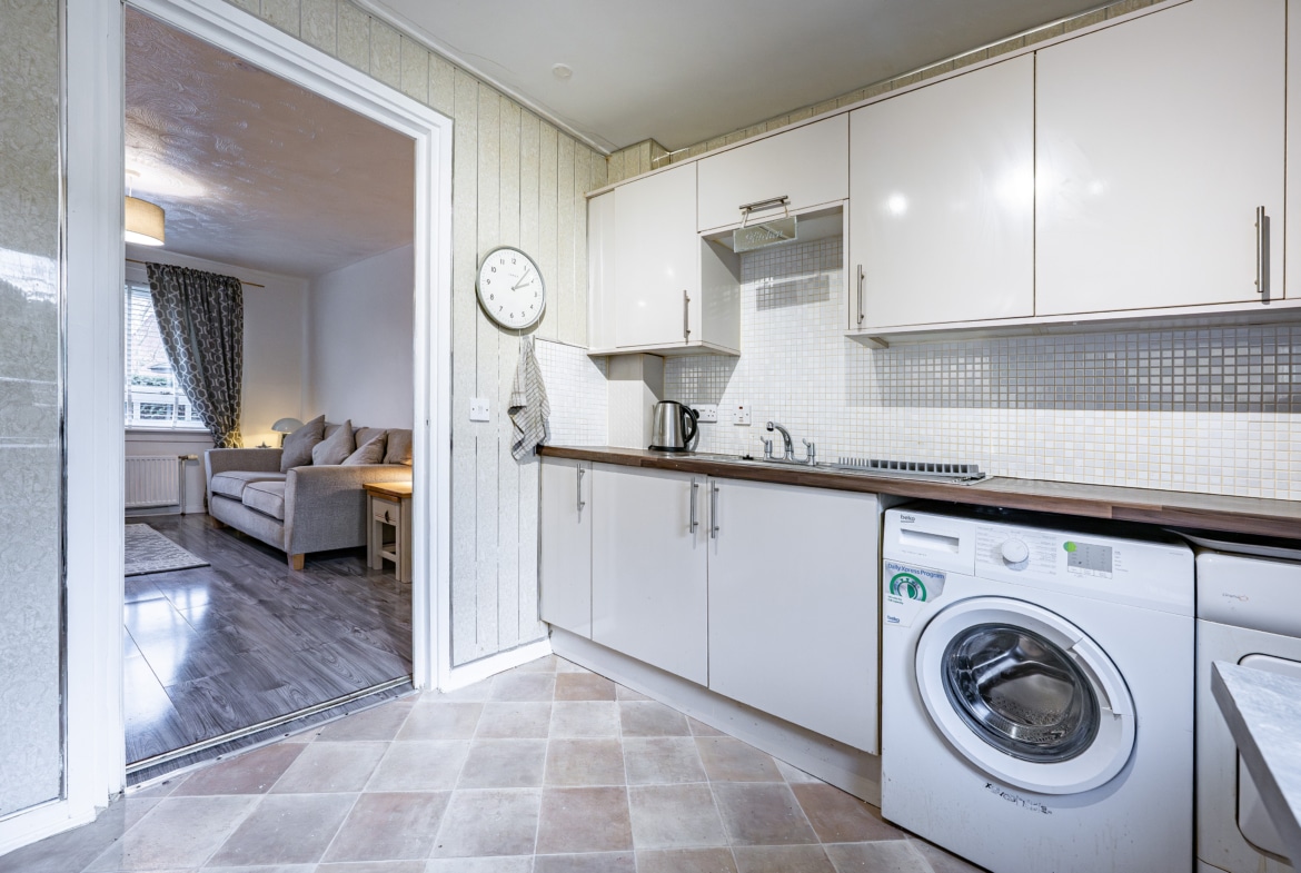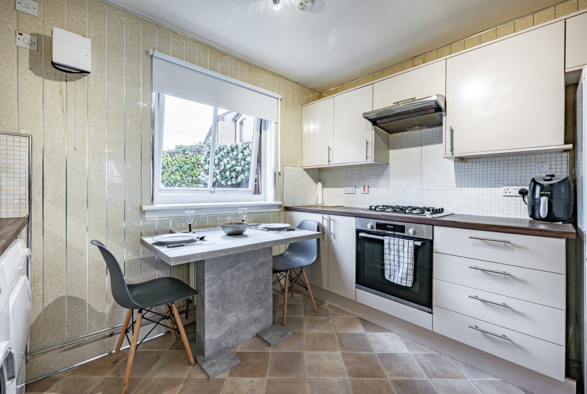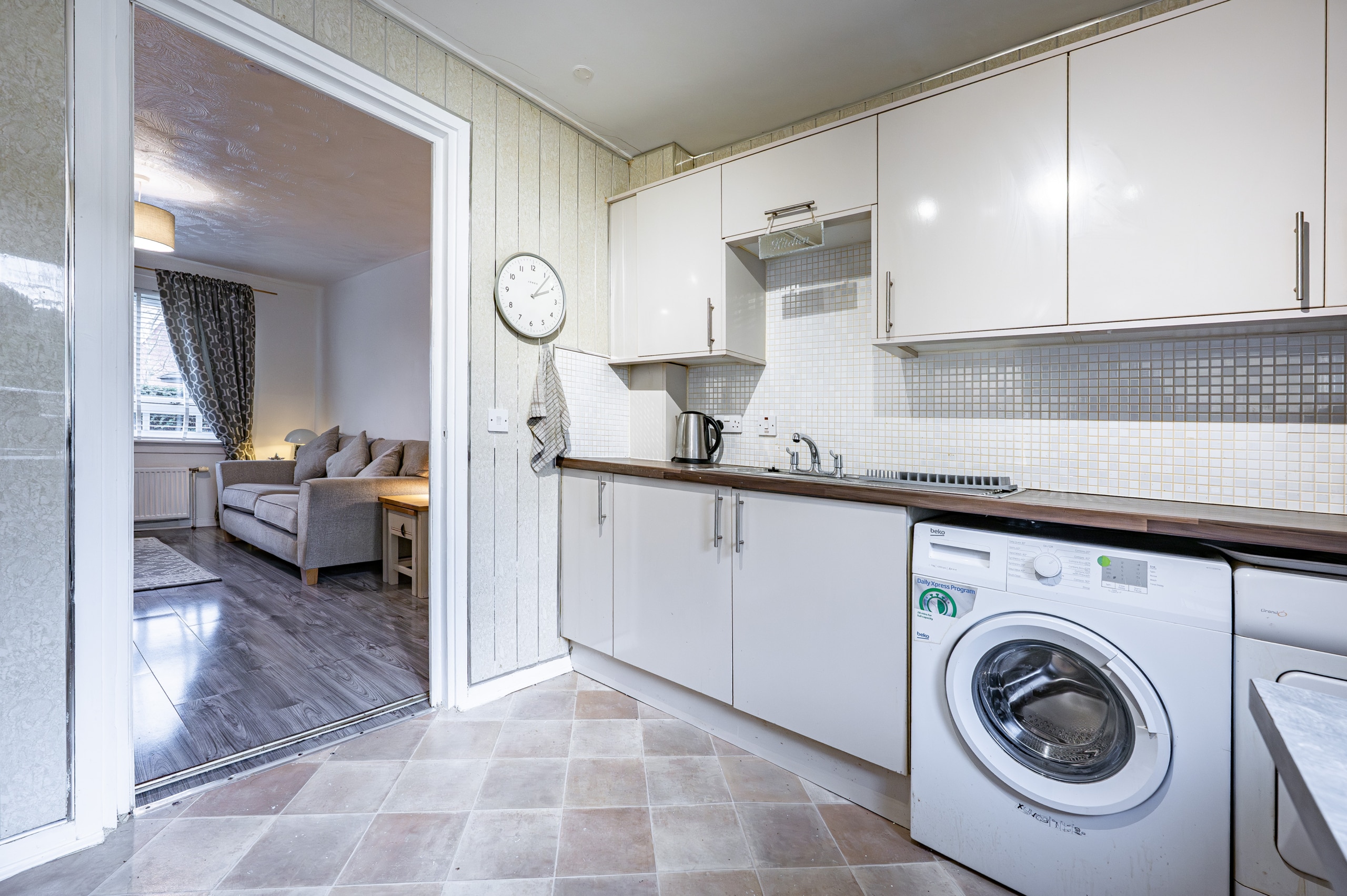 Internally, the accommodation is presented in excellent condition throughout and benefits from outstanding storage. A welcoming entrance hallway provides access to all apartments and features two large built-in storage cupboards. To the front of the property is a bright and comfortable lounge, which flows seamlessly into a contemporary kitchen. The kitchen is fitted with a range of base and wall-mounted units, an integral oven, gas hob, and ample space for freestanding appliances, along with room for a table and chairs.
