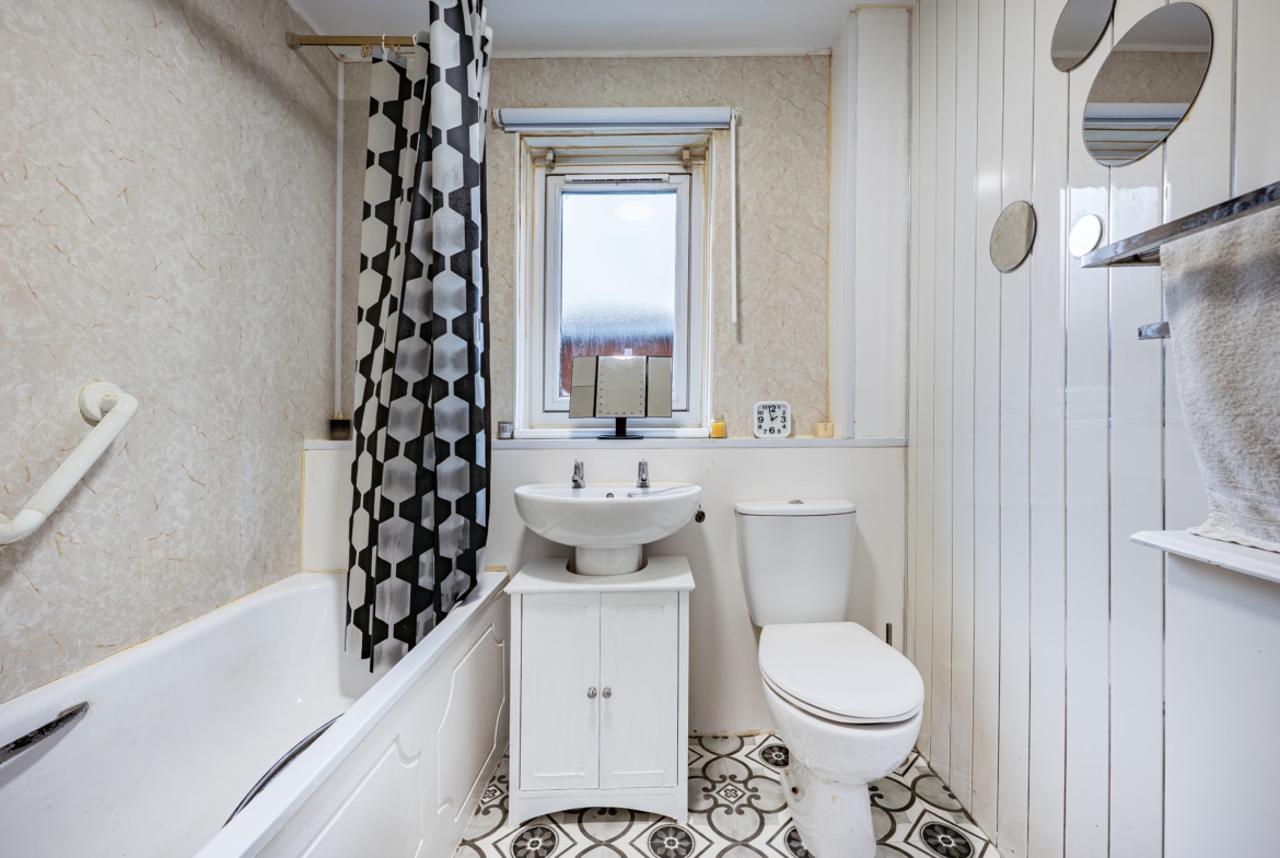 The generously proportioned double bedroom benefits from fitted wardrobes and an additional storage cupboard, while the stylish and well-appointed bathroom completes the internal accommodation. Further features include gas-fired central heating via a Worcester combination boiler and upgraded double-glazed windows, all contributing to the property’s immaculate presentation and energy efficiency.
