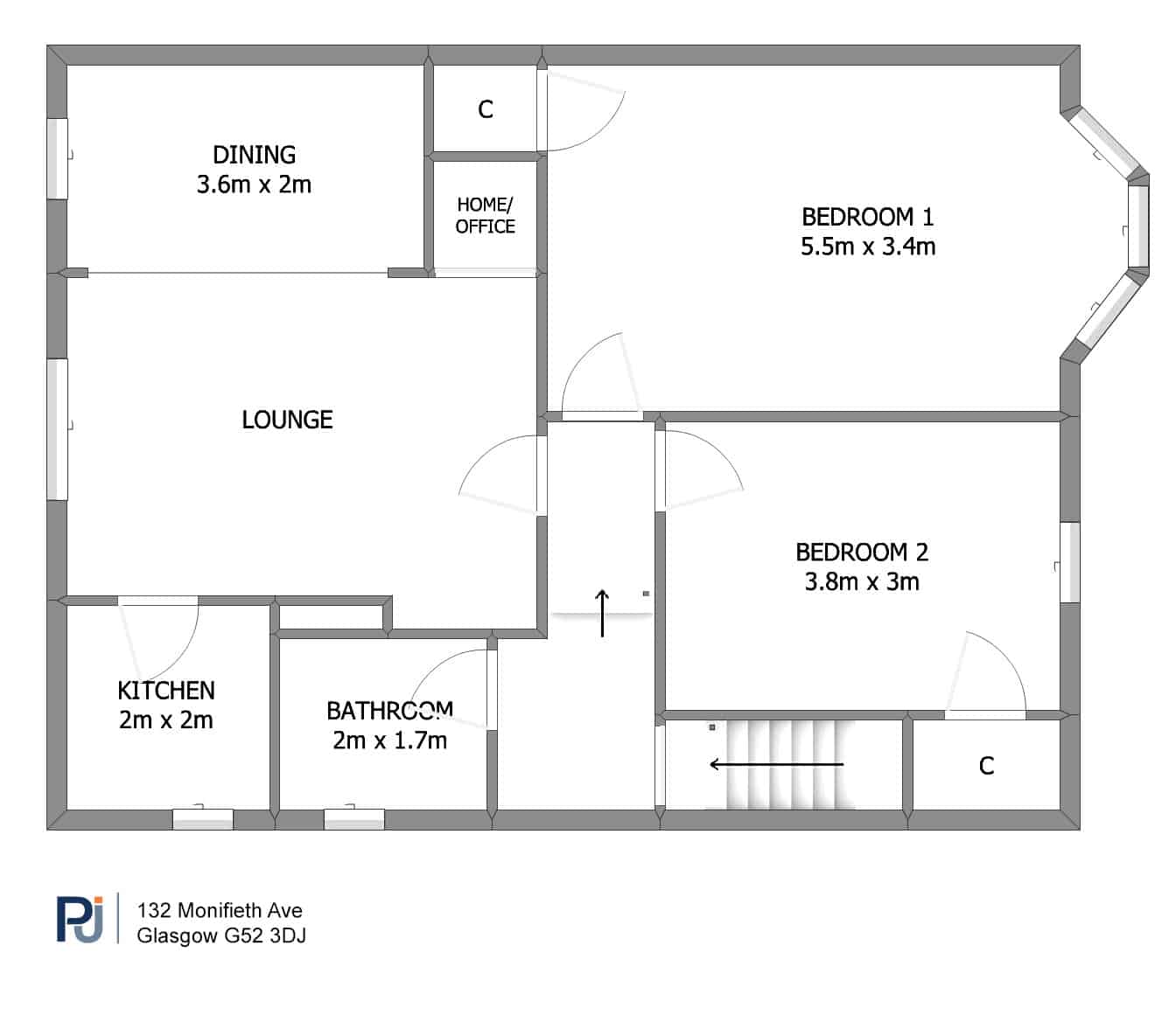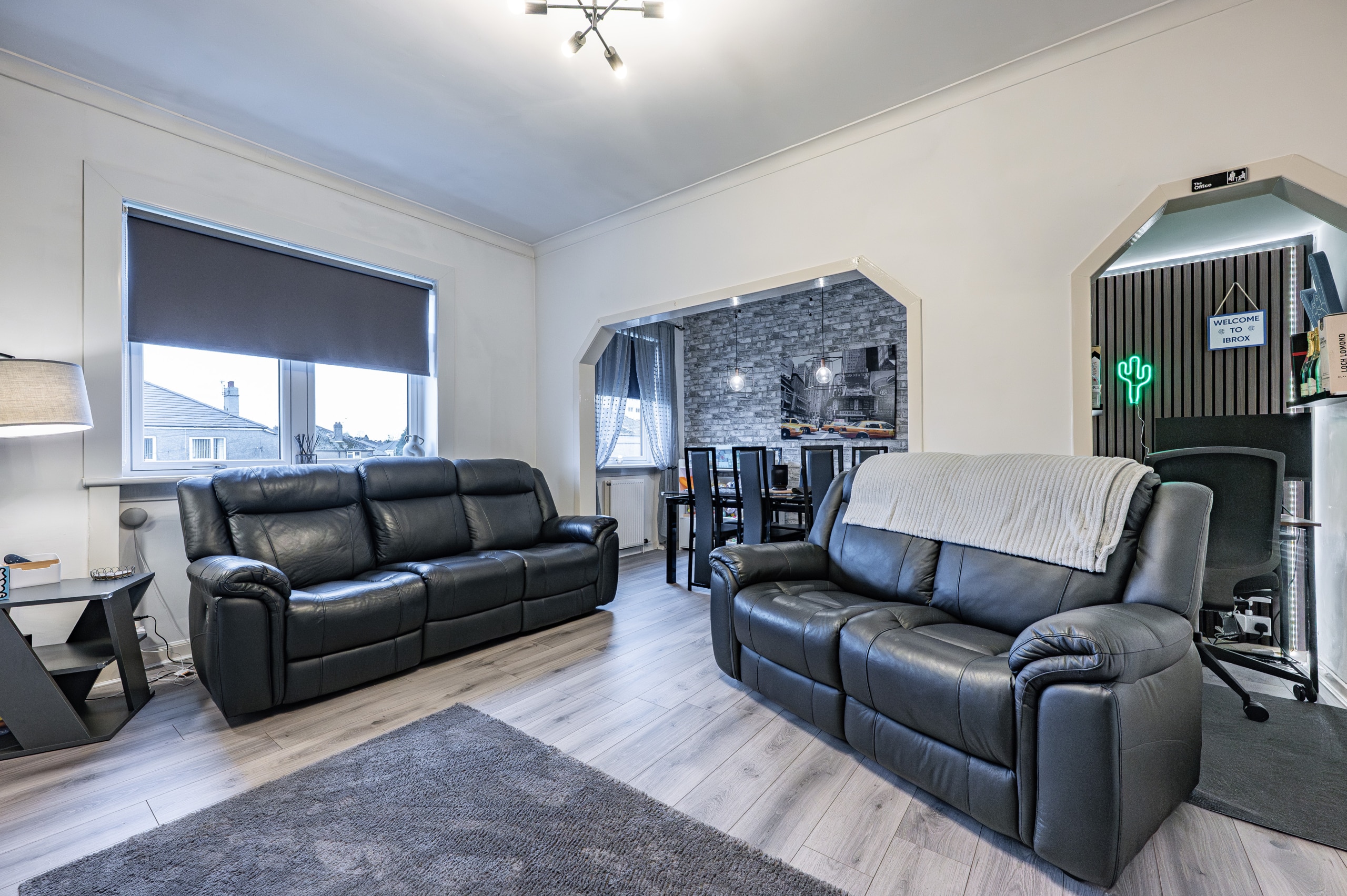 Having been upgraded to an exacting standard internally this attractive main door upper cottage flat provides bright and generously proportioned accommodation. Comprising entrance vestibule and stairwell leading to a welcoming split-level reception hallway. The rear of the property features a well-appointed formal lounge complete with versatile dining/home office area to side. The accommodation continues with a fitted galley style kitchen incorporating a range of base and wall mounted storage units, complementary work top surfaces, co-ordinated splashbacks and with space for a range of appliances. Located to front are two well-presented double sized bedrooms which are generously sized and offer useful built-in storage, with the primary bedroom benefiting from a broad bay window formation. The accommodation is completed by a modern fitted bathroom featuring a contemporary three-piece suite with an overhead shower.