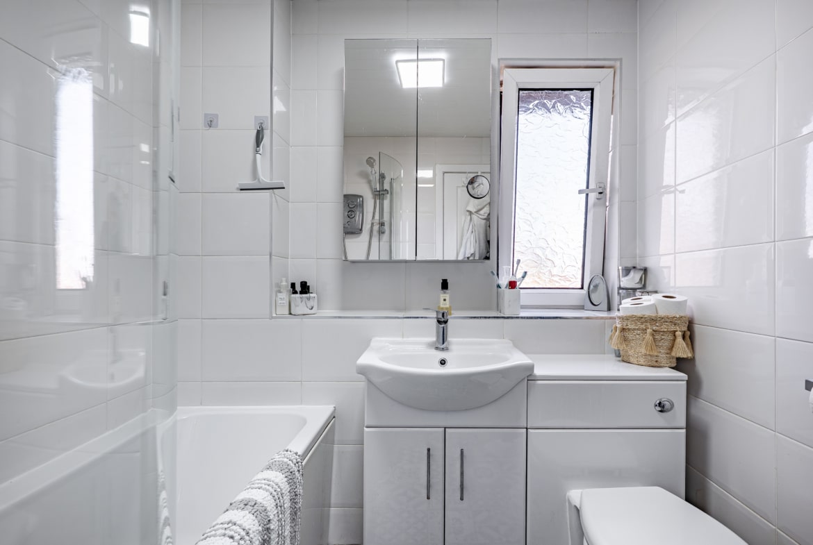 Both bedrooms are well-proportioned double rooms and benefit from in-built wardrobes providing excellent shelving and hanging space. The accommodation is completed by a contemporary three-piece bathroom.
