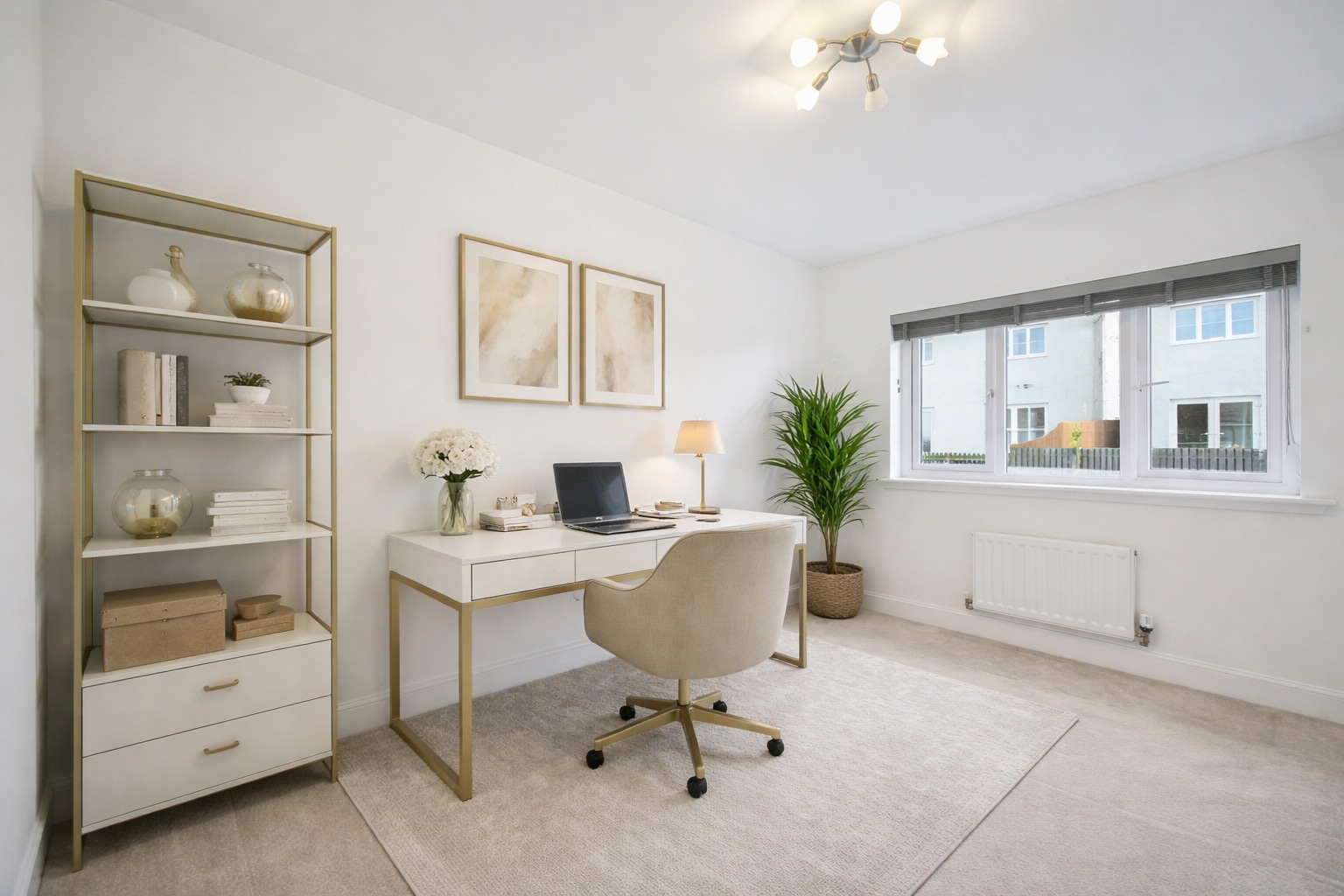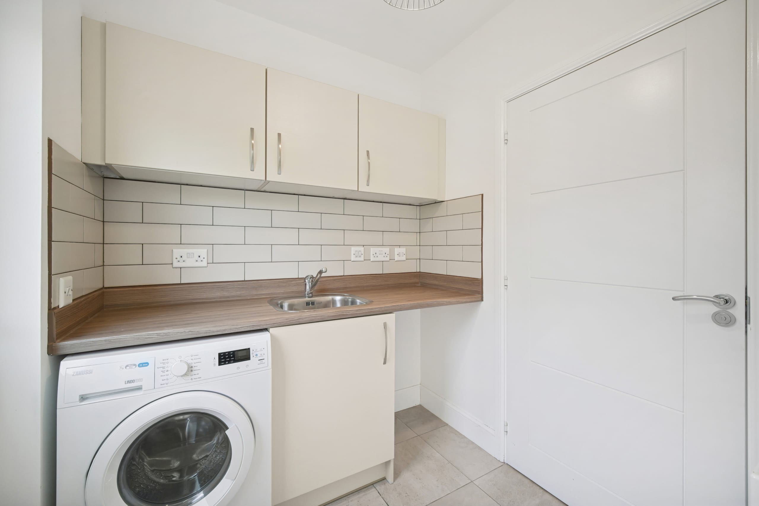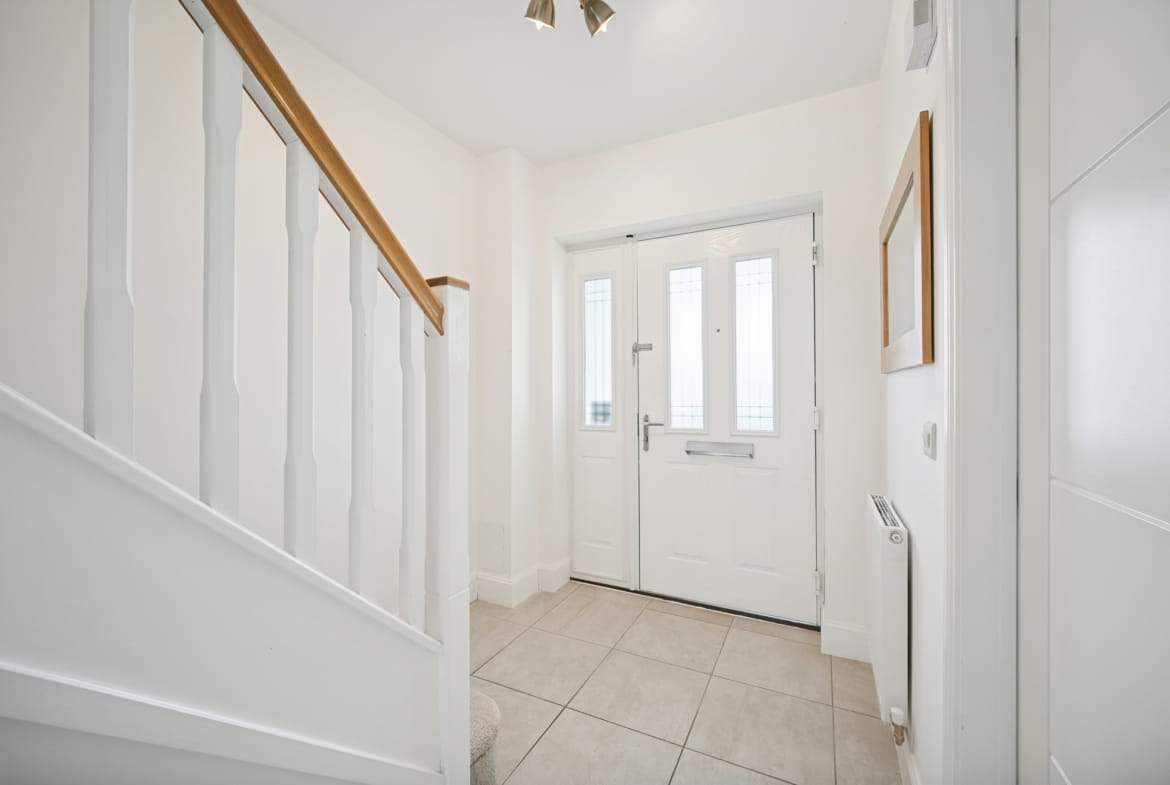 Extending to 1278 sq. ft., this immaculately presented home is thoughtfully laid out and ideal for both family life and entertaining. A welcoming entrance hall with stylish tiled flooring provides access to the ground floor accommodation. On your left you are drawn into the living room, this spacious room boasts neutral décor including a plush carpet, the generous footprint offers ample space for various furniture configurations and extends into a bay window. At the end of the hallway, you step into the impressive open plan kitchen/dining room, the real heart of the home. The kitchen area is fitted with a plethora of cream cabinets framed by a sweep of contrasting work top space and metro tiled splashback, integrated electric oven, gas hob, fridge, freezer, and dishwasher. The dining area offers excellent floor space for a large table and chairs perfect for family meals or entertaining larger groups. The room is flooded with natural light from the kitchen window and French doors which open out to the enclosed, south facing garden. A separate utility room provides additional storage, a washing machine, and space for a tumble dryer. Completing the ground floor is a cloakroom, tiled to dado height with toilet, and sink.