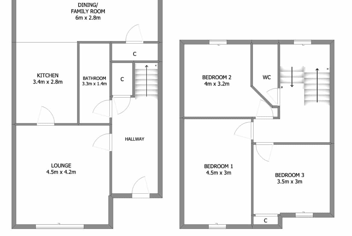 Upstairs, the landing provides access to three generous double bedrooms, a convenient two-piece W.C., and a ceiling hatch leading to a valuable attic storage area.