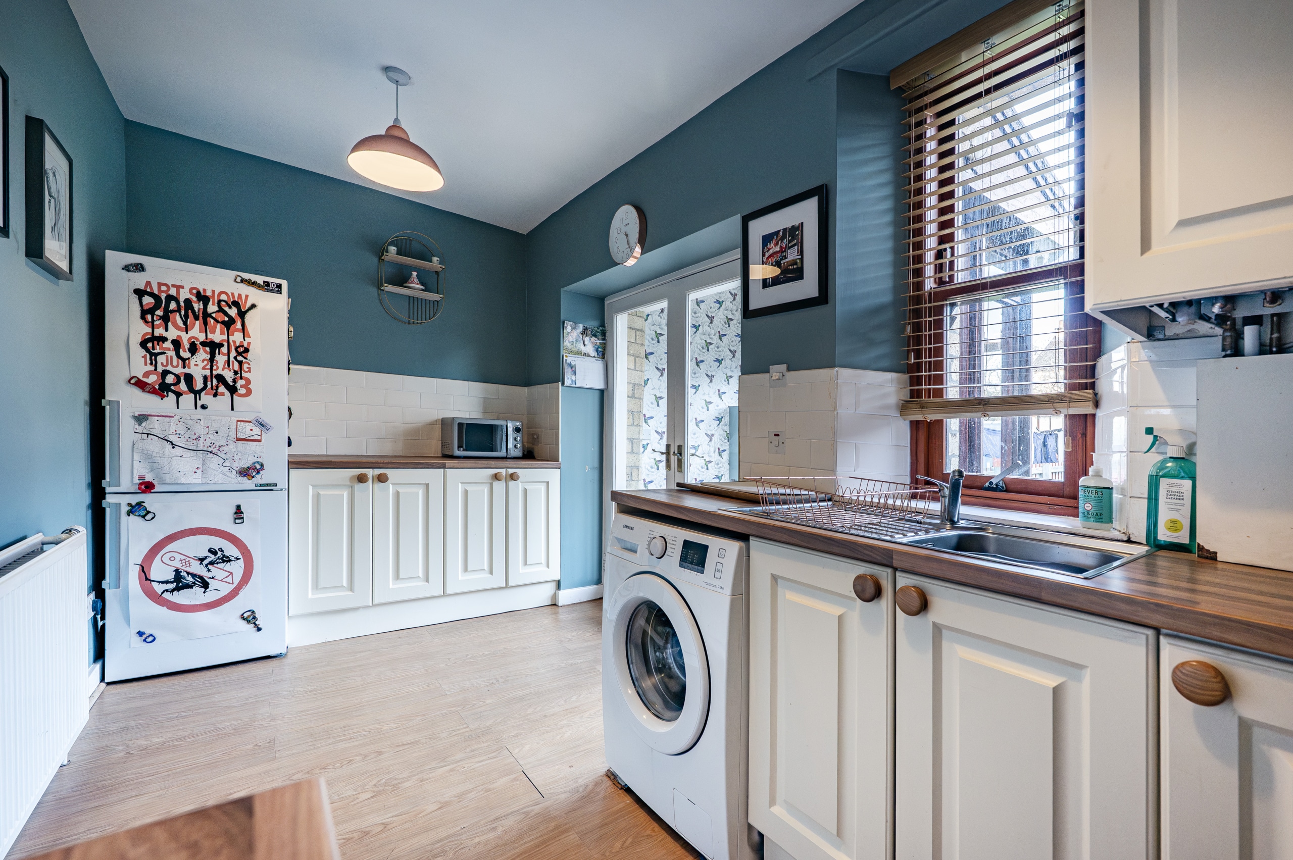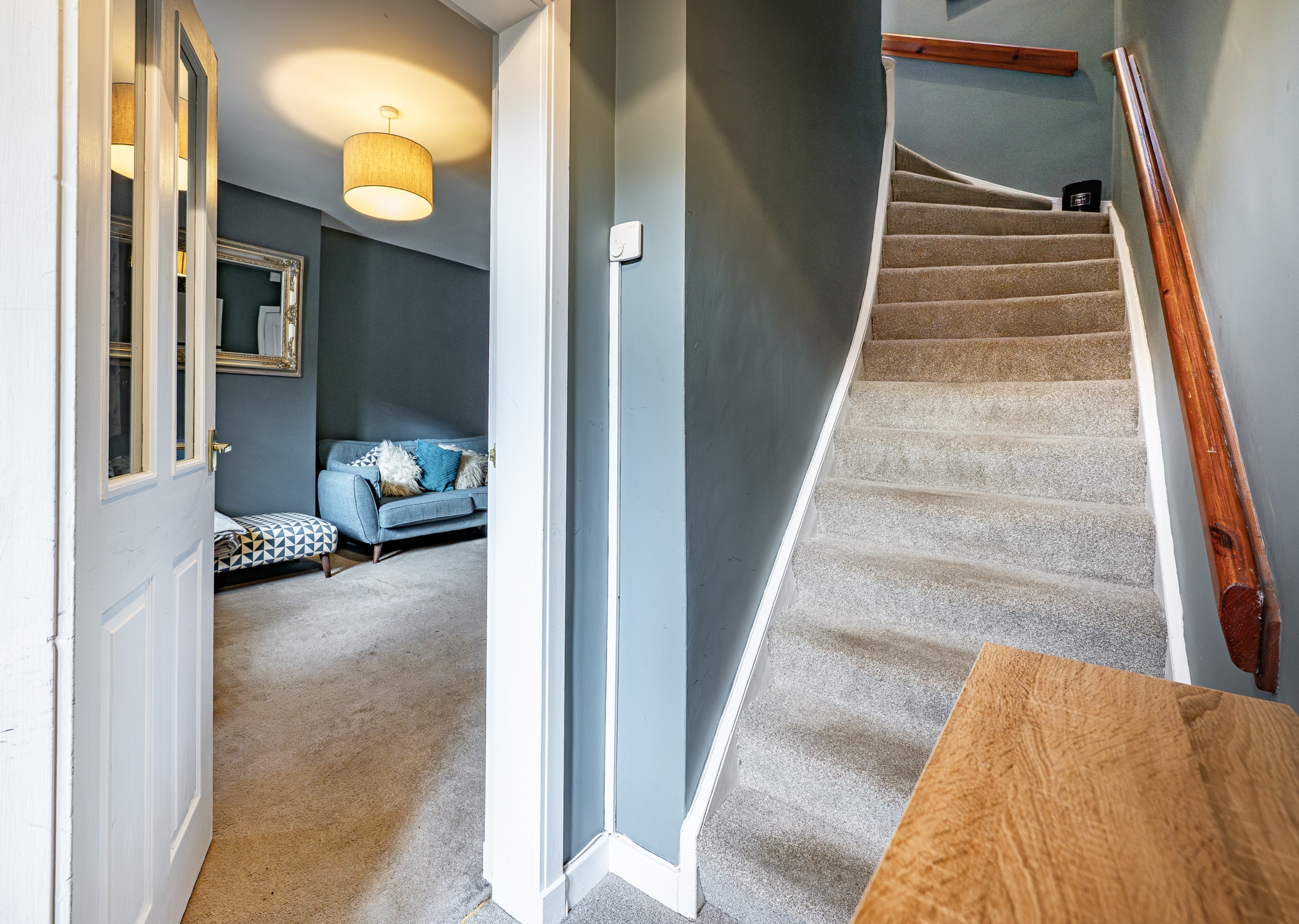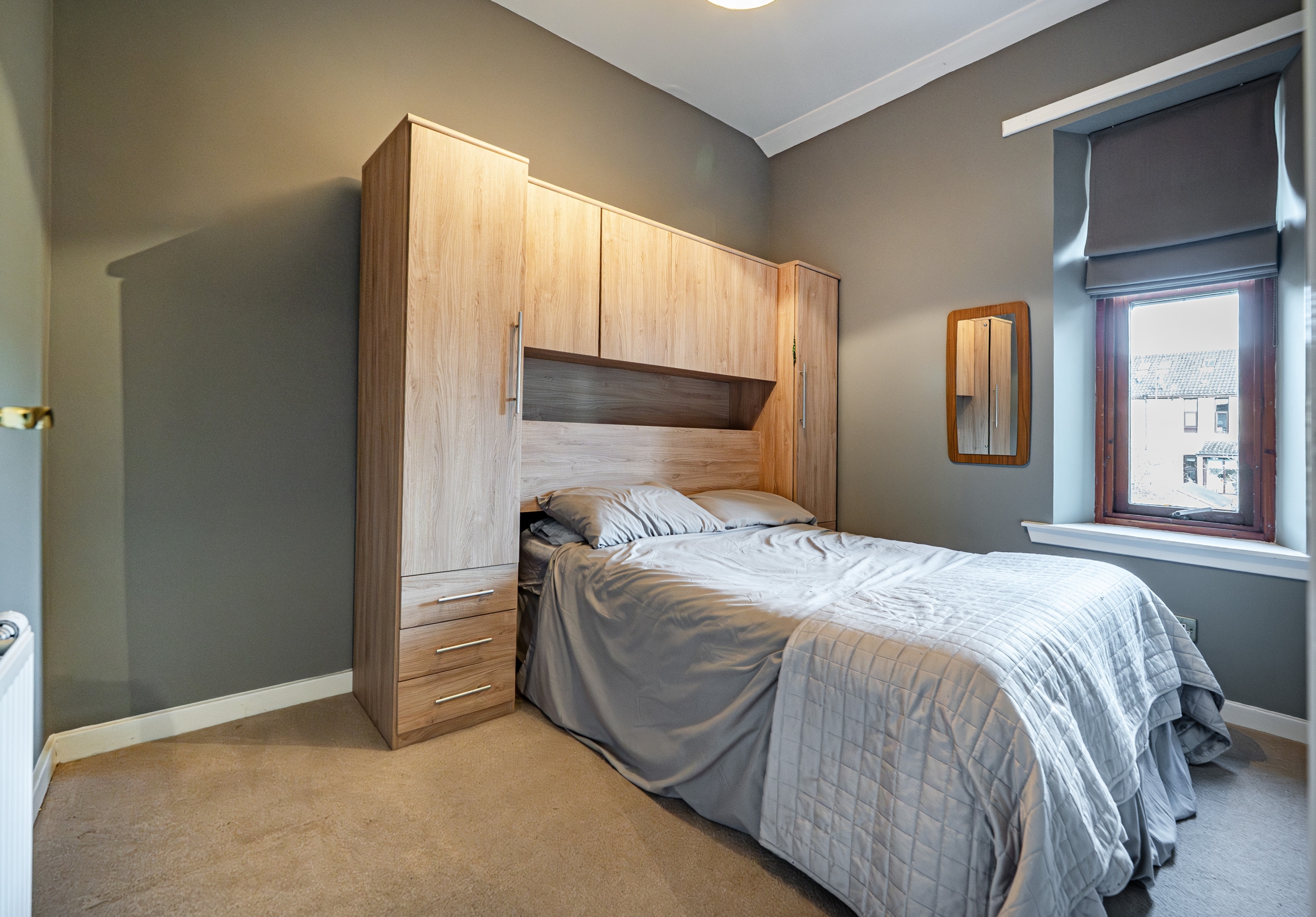 Upstairs, the property boasts two exceptionally spacious double bedrooms, both benefiting from excellent storage, along with a modern three-piece bathroom. A system of gas fired central heating provides year-round warmth and comfort.