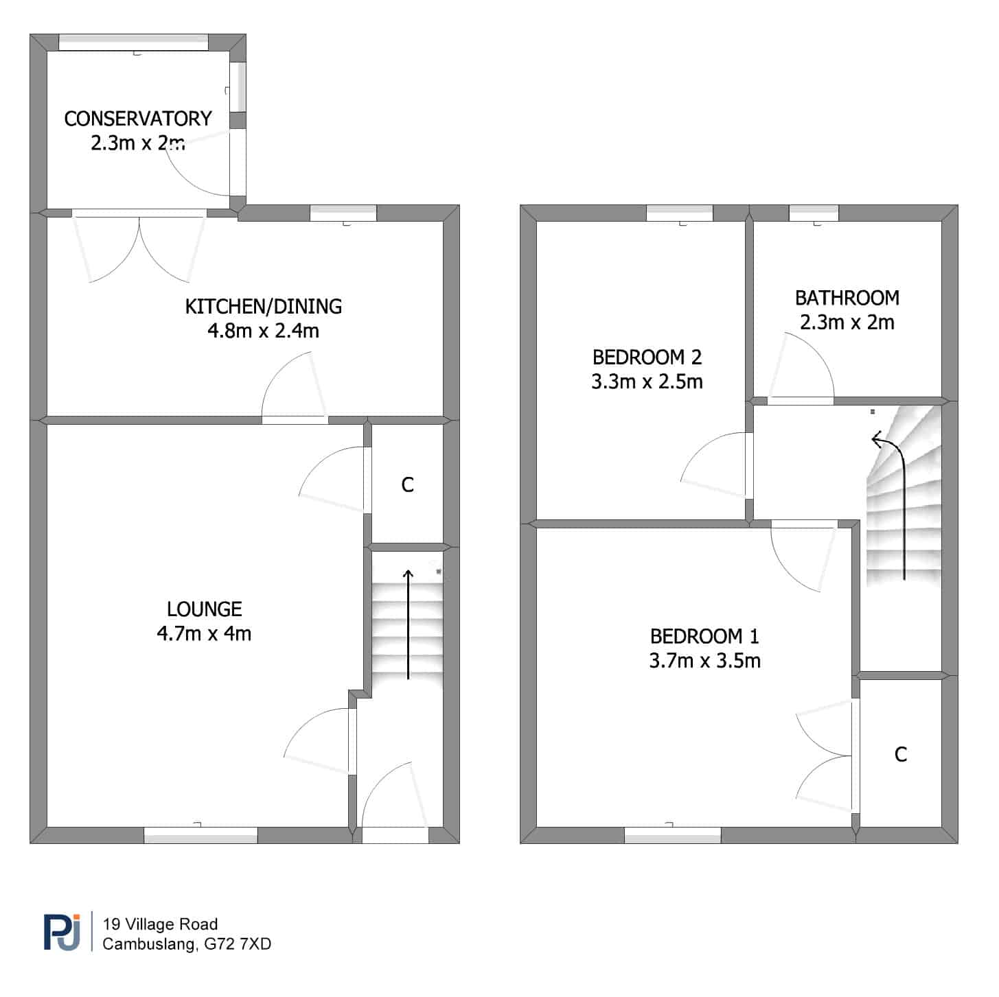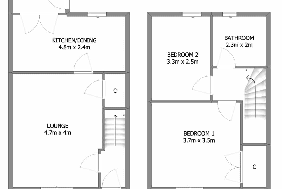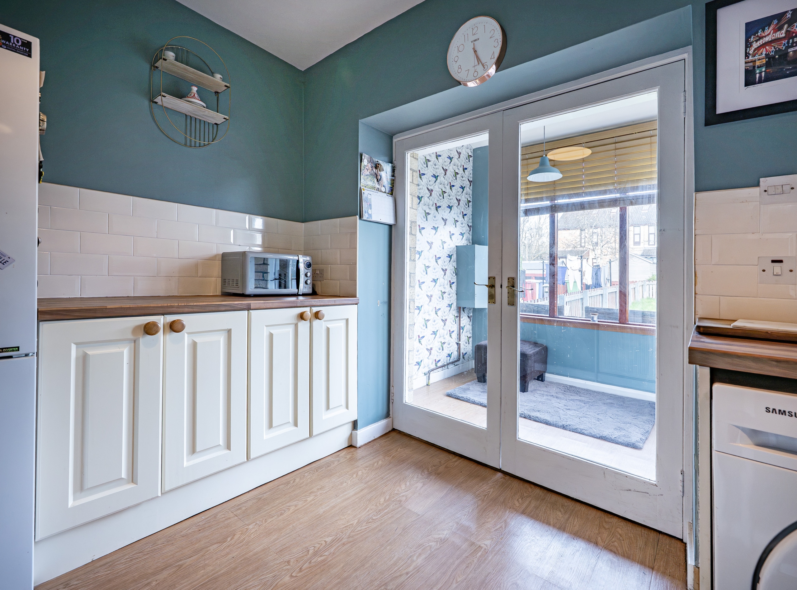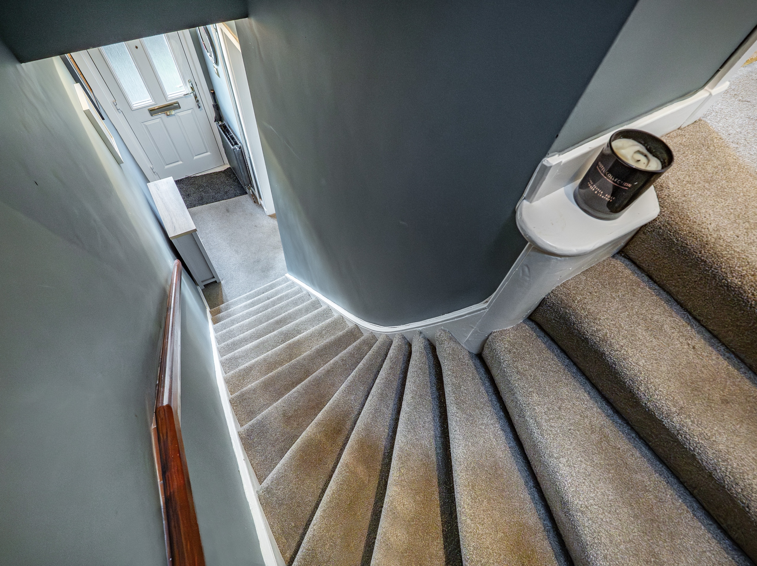 Upstairs, the property boasts two exceptionally spacious double bedrooms, both benefiting from excellent storage, along with a modern three-piece bathroom. A system of gas fired central heating provides year-round warmth and comfort.