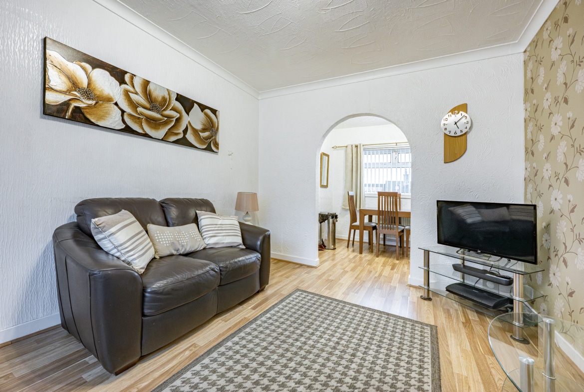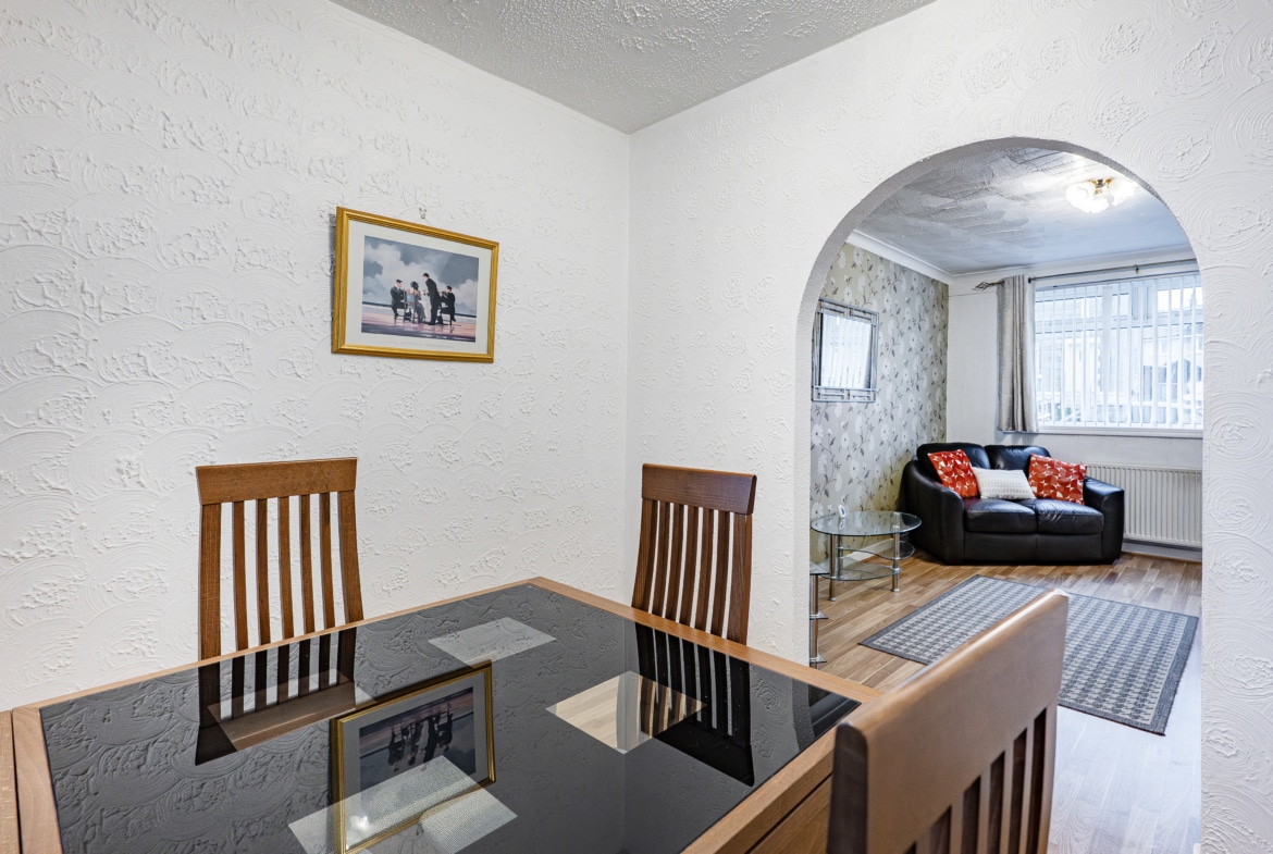 Internally, the accommodation begins with a welcoming entrance hallway, complete with a useful storage cupboard and staircase leading to the upper level. To the front, a bright and comfortable lounge flows seamlessly into a spacious dining room to the rear, creating an ideal setting for both everyday living and entertaining. The adjacent kitchen is well-appointed with a range of base and wall-mounted units, an integrated oven and hob, and ample space for freestanding appliances, with a door providing direct access to the rear garden.
