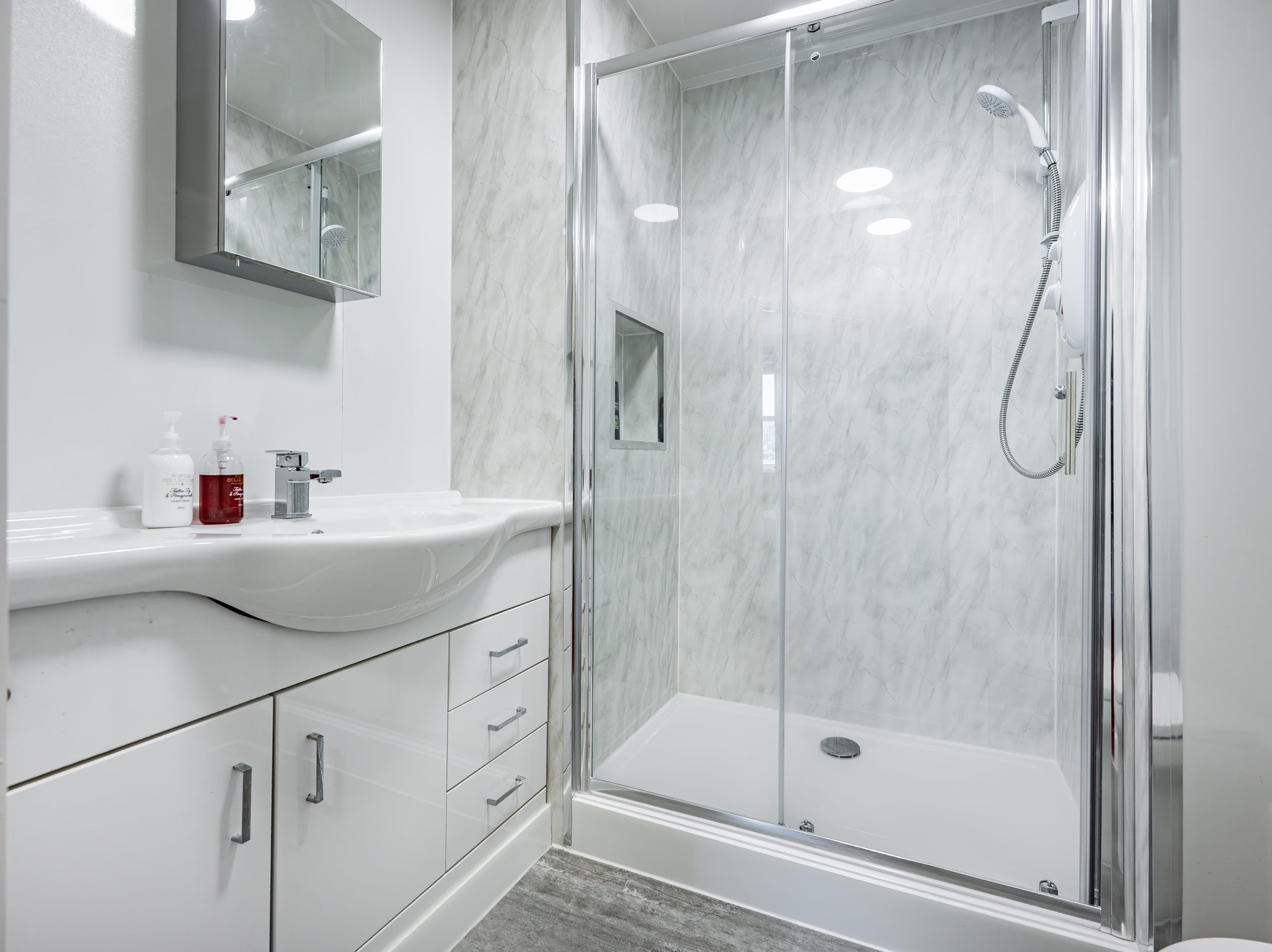 The generous bedroom features an invaluable dressing area, which could also be a study or additional storage space – complete with mirror-fronted fitted wardrobes providing excellent shelving and hanging capacity. The accommodation is completed by a contemporary re-fitted shower room, designed with both style and practicality in mind.