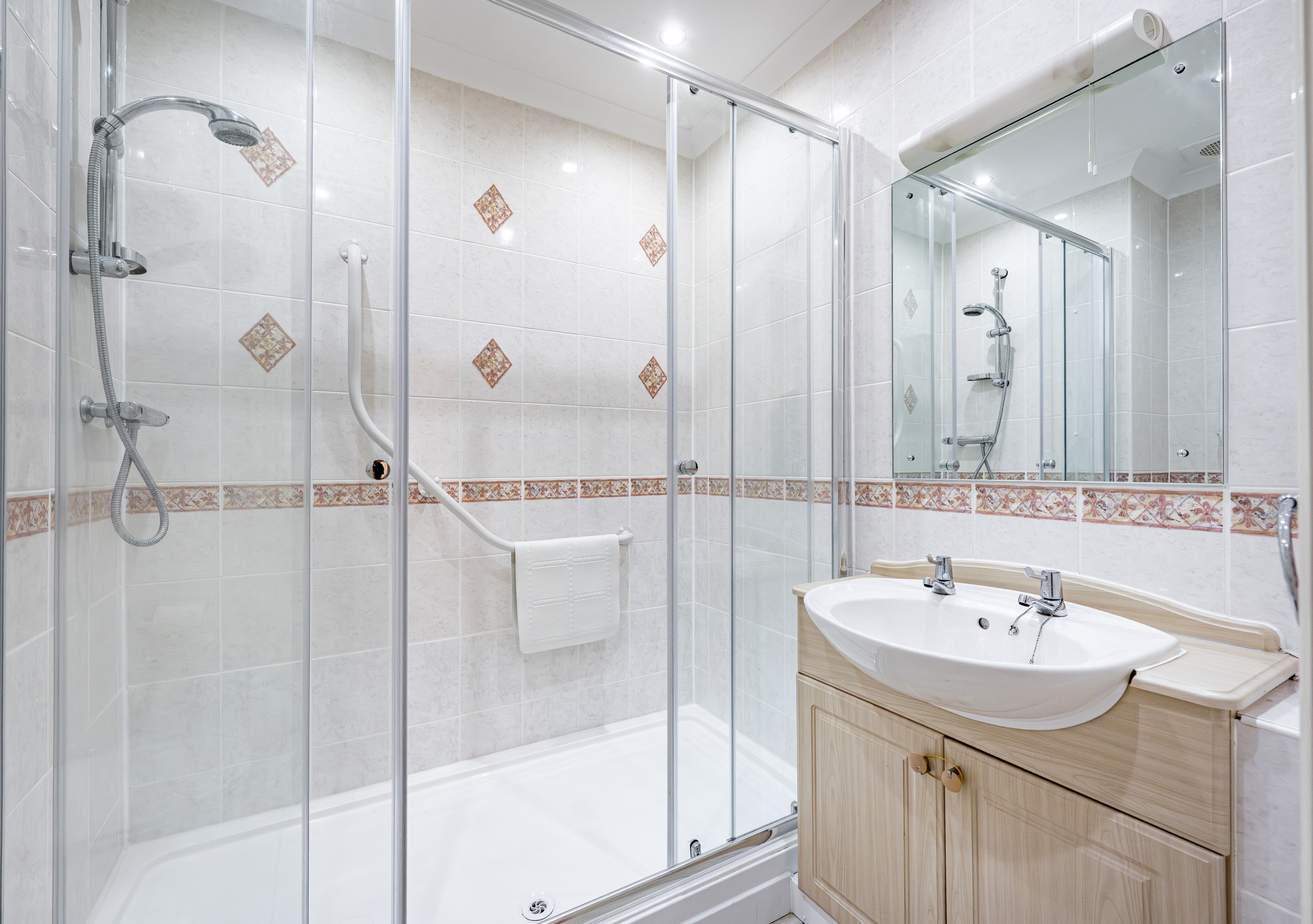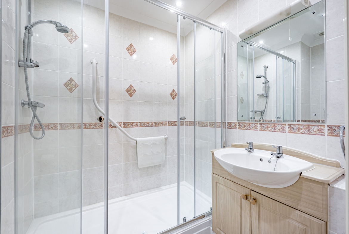 The generous double bedroom benefits from a newly laid carpet and built-in wardrobes offering excellent hanging and shelving space. The shower room has been thoughtfully upgraded and now incorporates a full-width shower enclosure, providing a practical yet stylish finish.