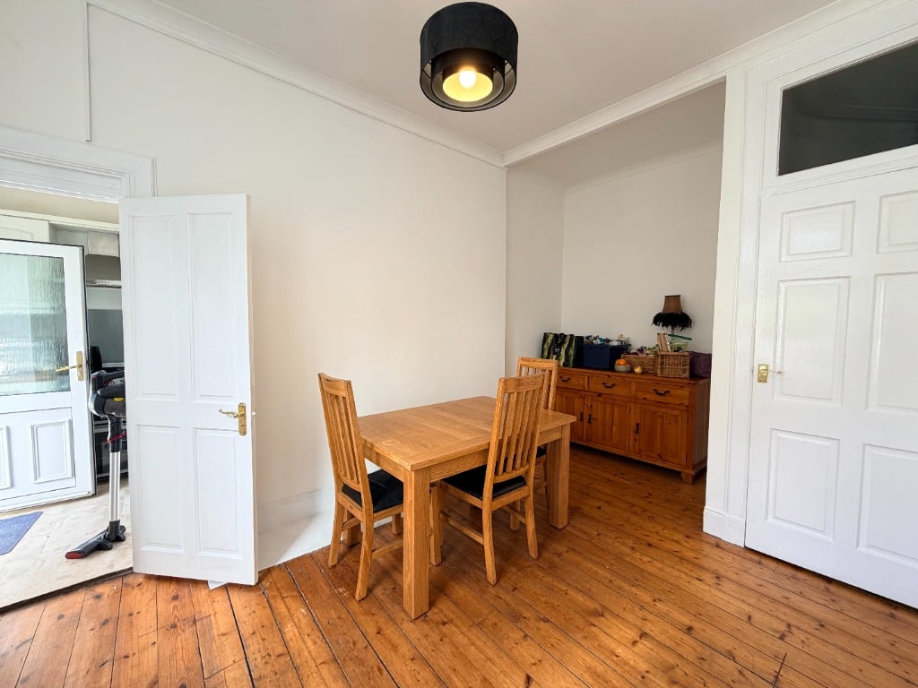 The elegant bay-windowed lounge provides a superb living and entertaining space, enhanced by natural light and period character. A generous double bedroom offers comfortable accommodation, while the additional dining room creates a highly versatile space—ideal for home working, dining, or a second lounge area. To the rear, a well-maintained fitted kitchen offers excellent storage and practicality, complemented by a modern three-piece bathroom with shower.