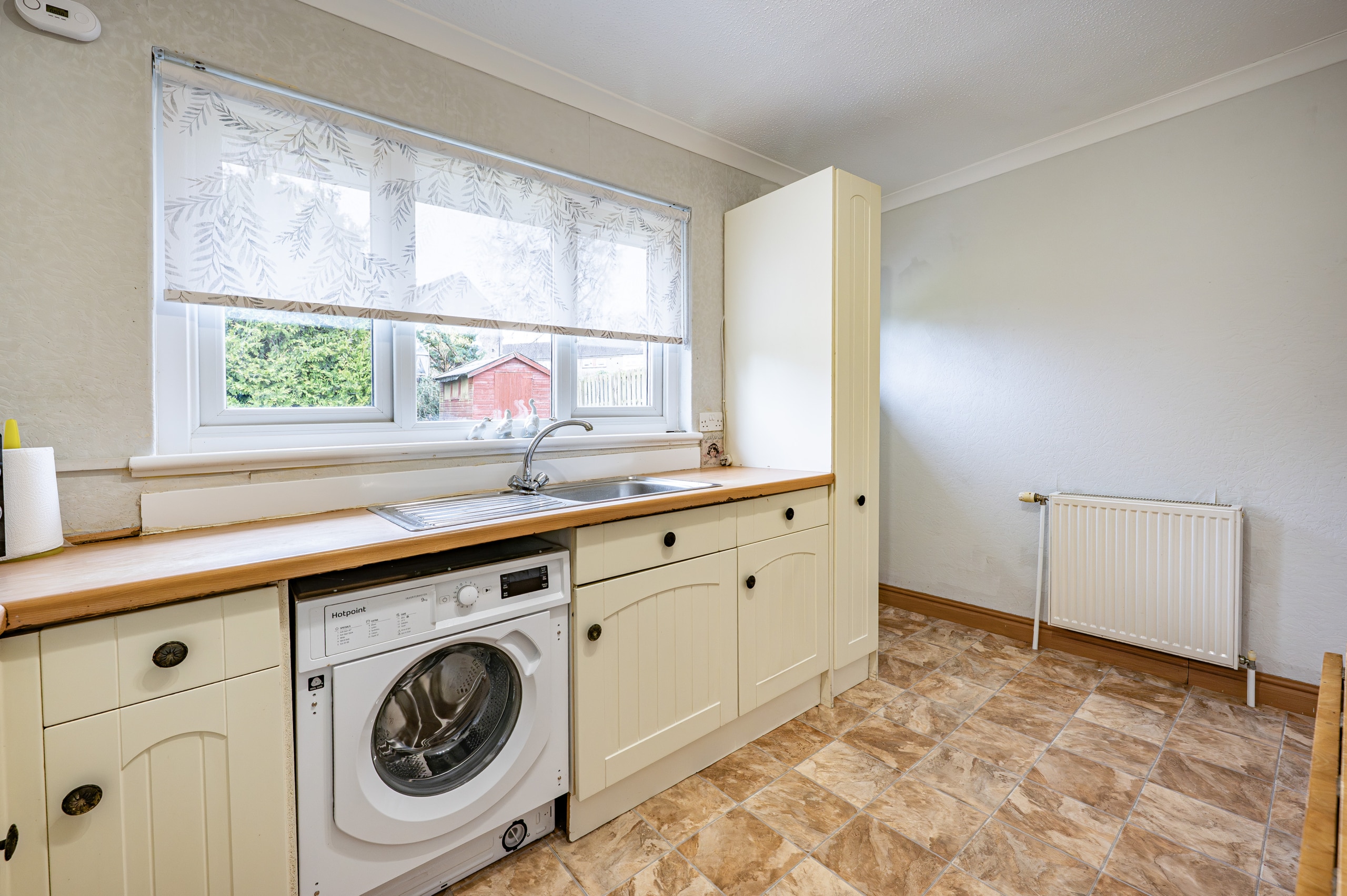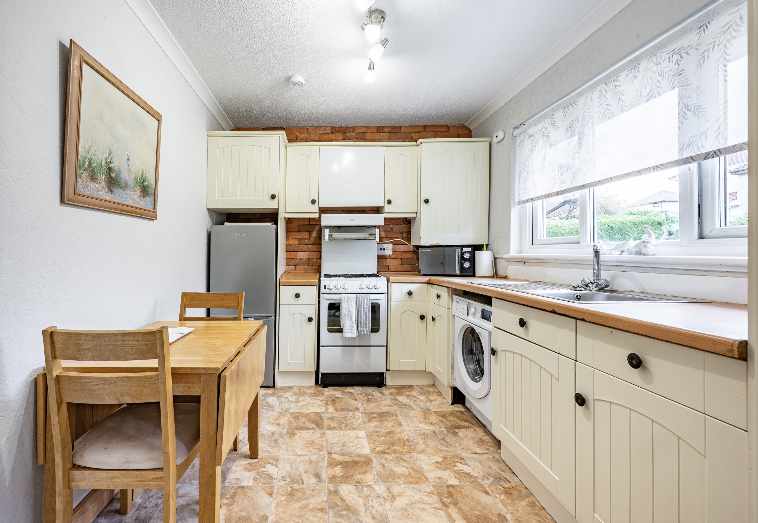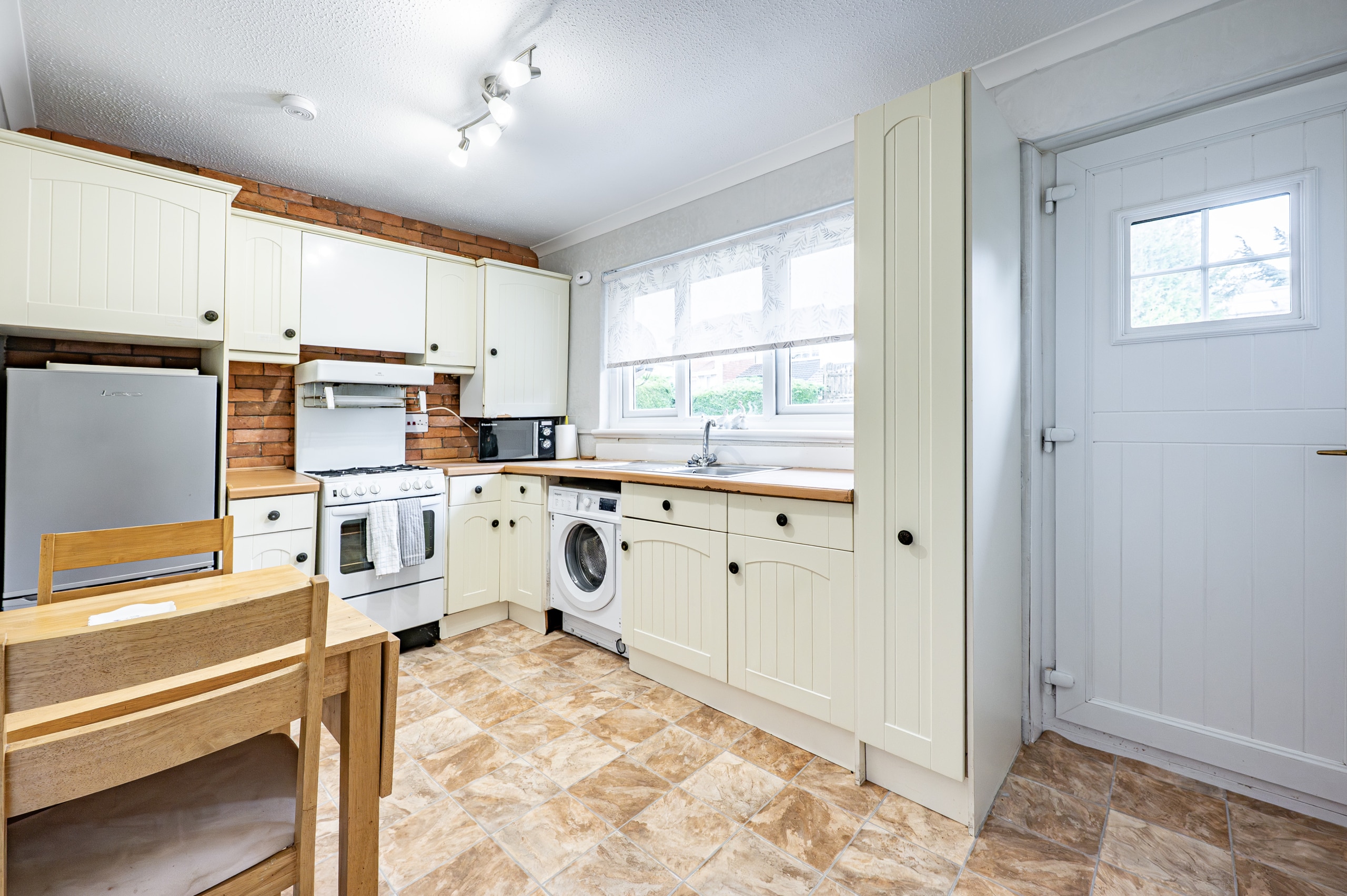 The lounge is of generous proportions, overlooking the front of the property with large picture window flooding the room with natural light. There is a good sized kitchen which gives ample space for a small dining suite and ample room for free standing white goods and gives access to to the rear gardens.