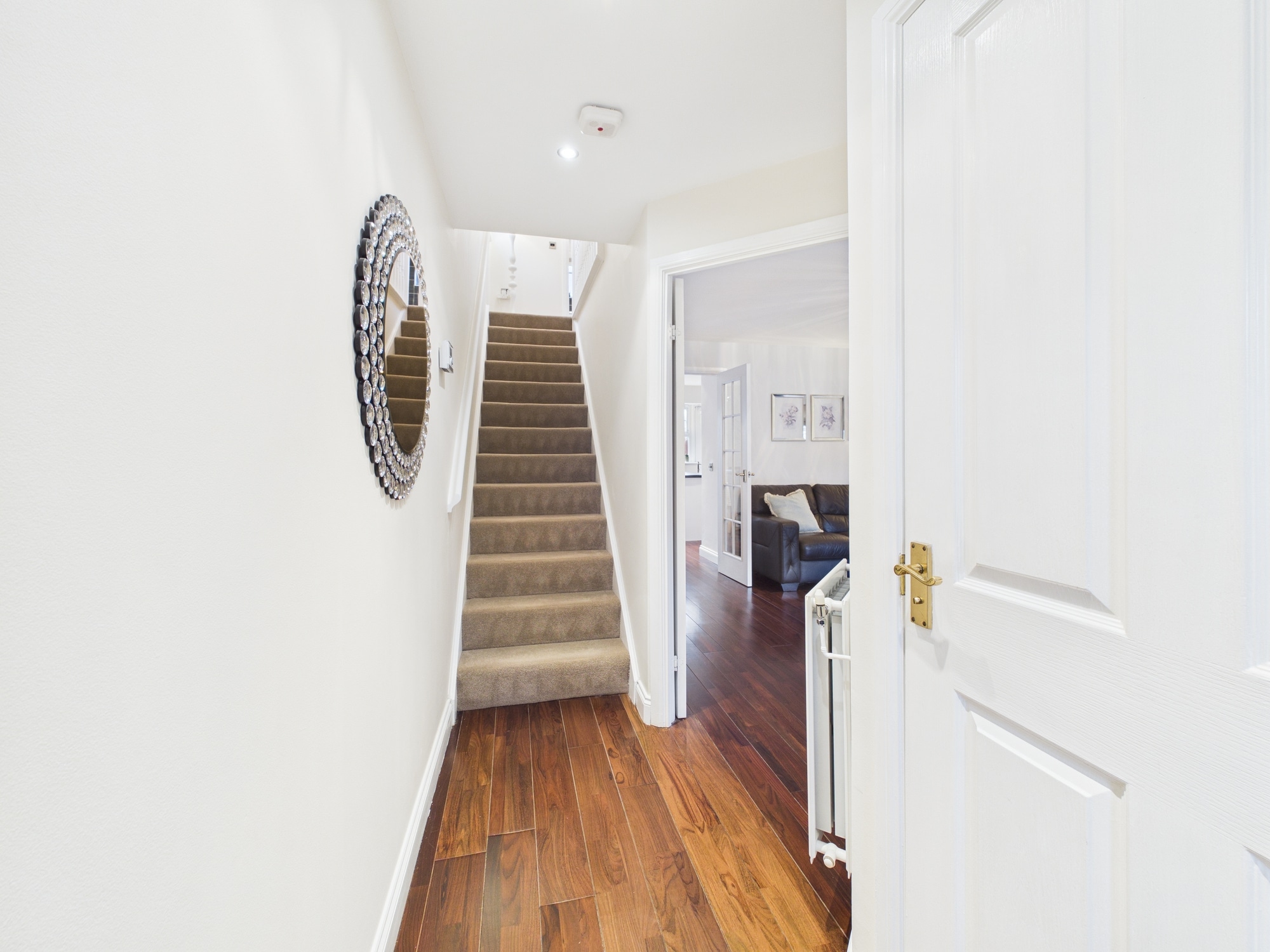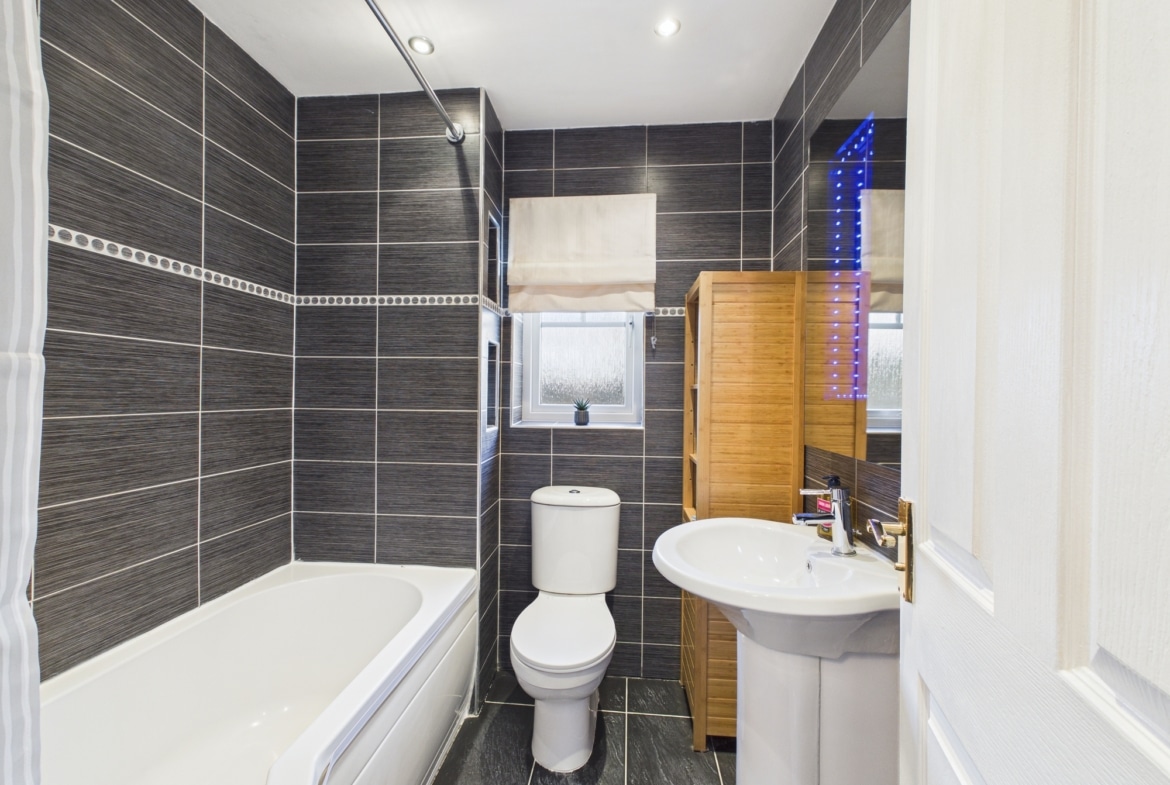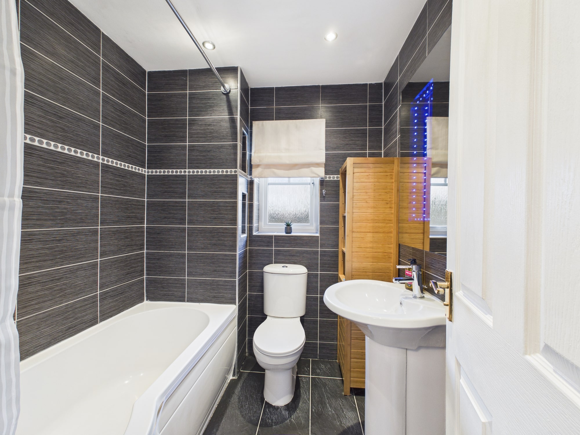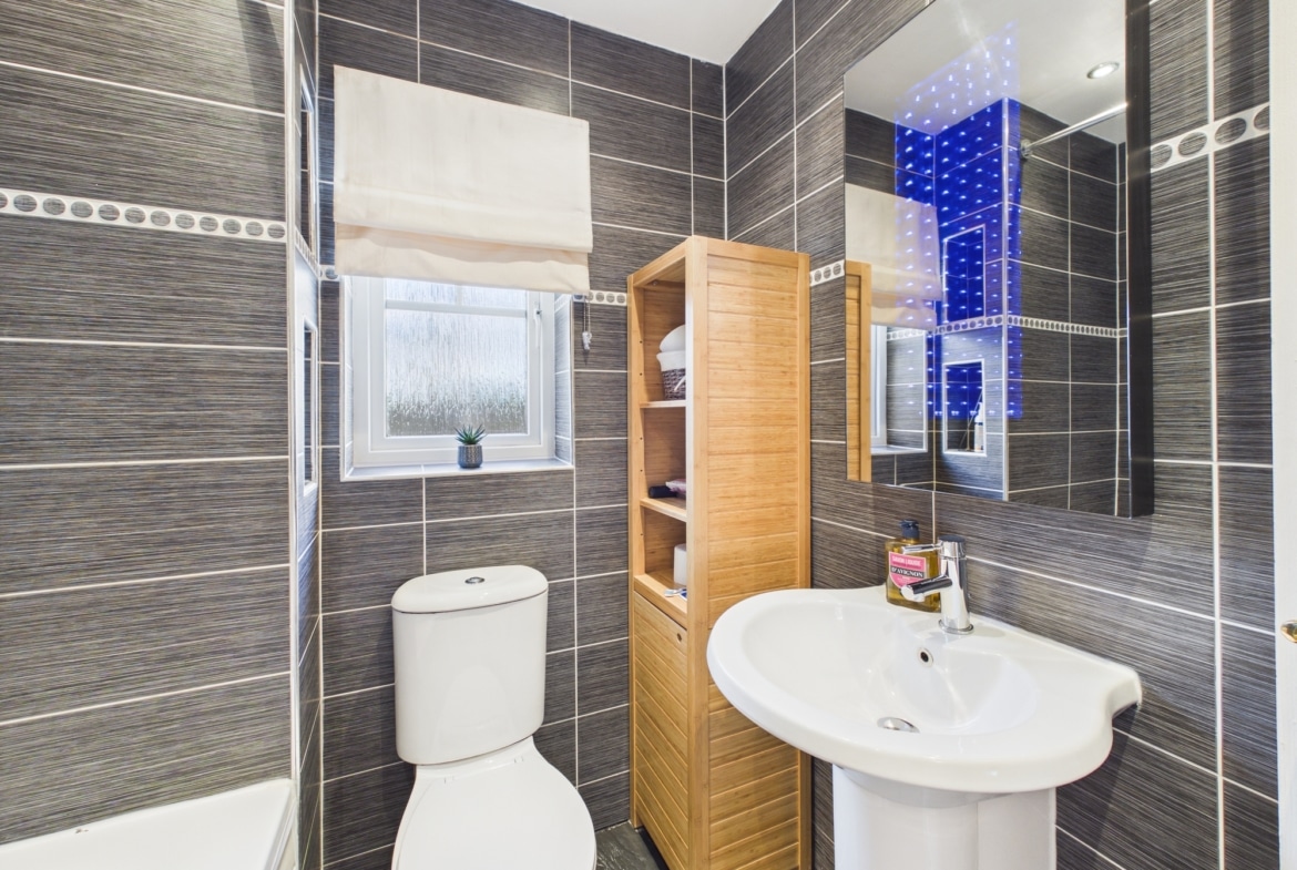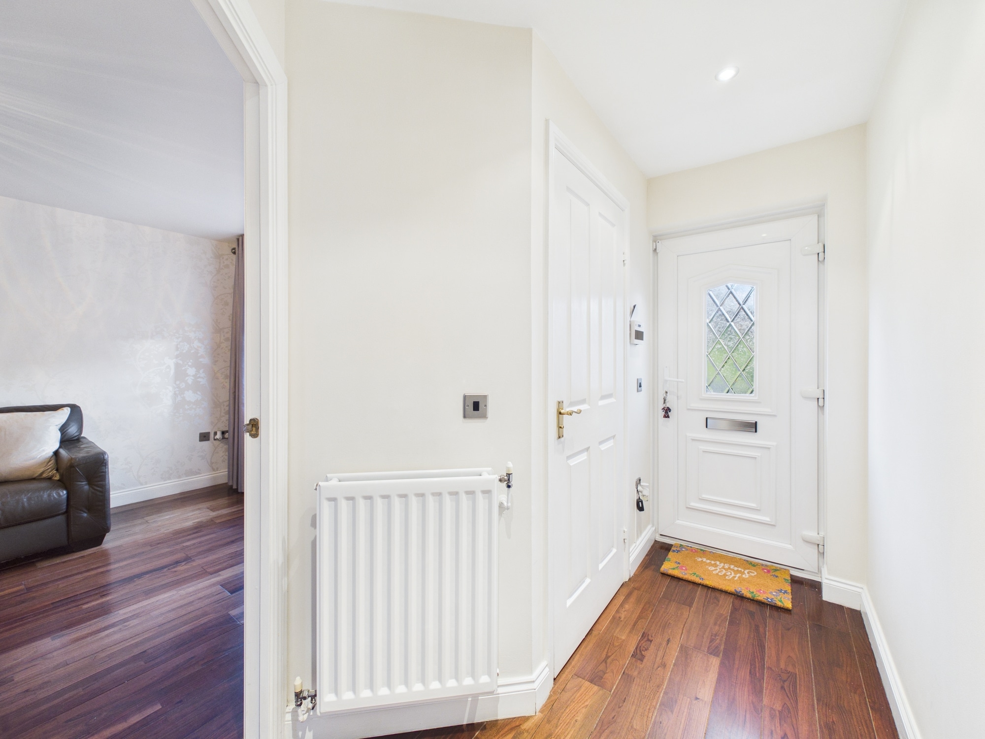 Side facing upper landing with fitted carpet and decorative timber balustrade gives access to three bedrooms, family bathroom, storage and loft hatch. Bedroom one is rear facing with fitted carpet and wardrobes. Bedroom two is front facing with fitted carpet. Bedroom three is again front facing with fitted carpet. Rear facing family bathroom comprising low flush wc, wash hand basin, bath, shower (over bath), decorative alcove, heated towel rail, fully tiled walls and tiled flooring.