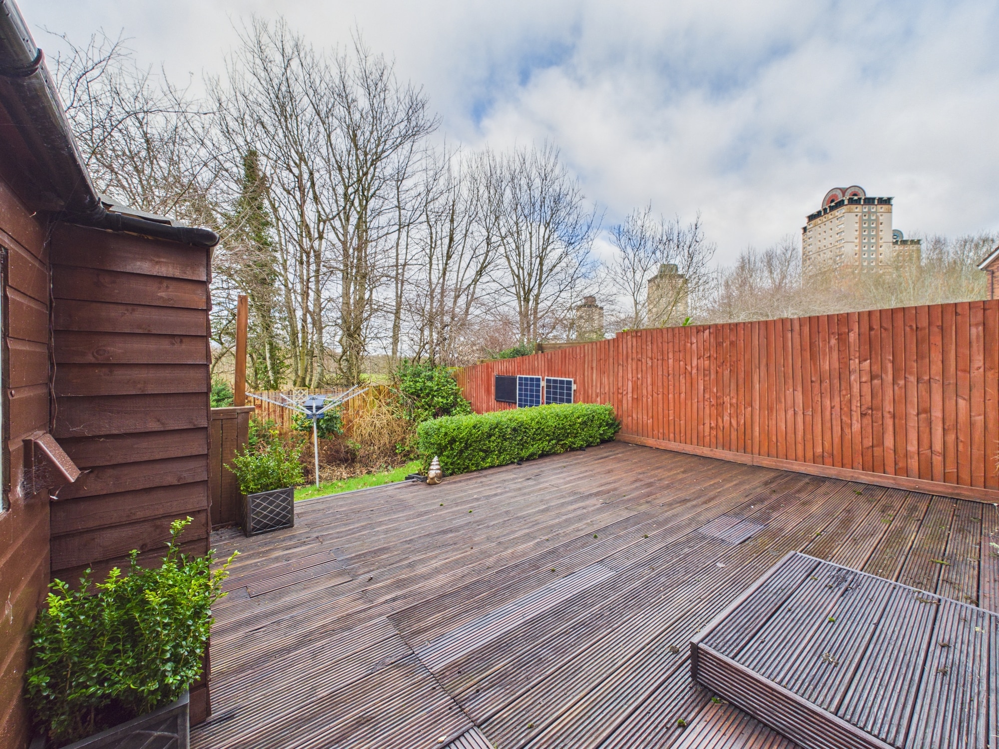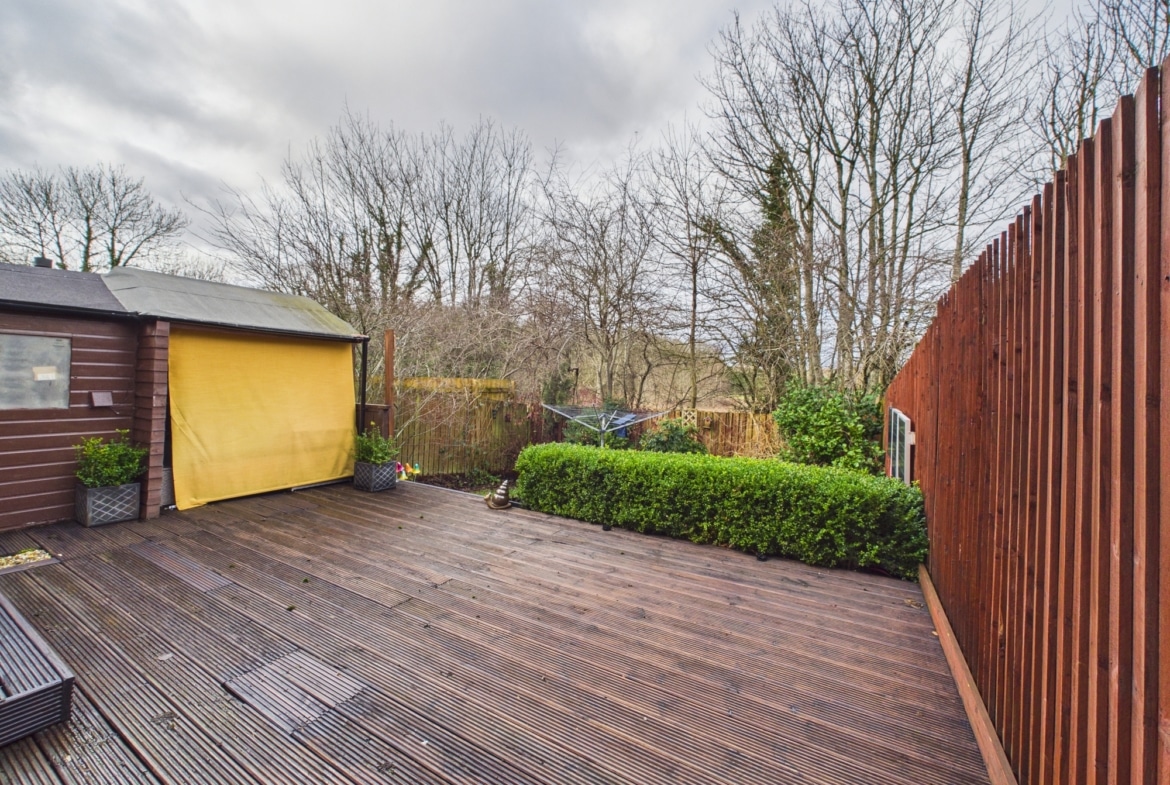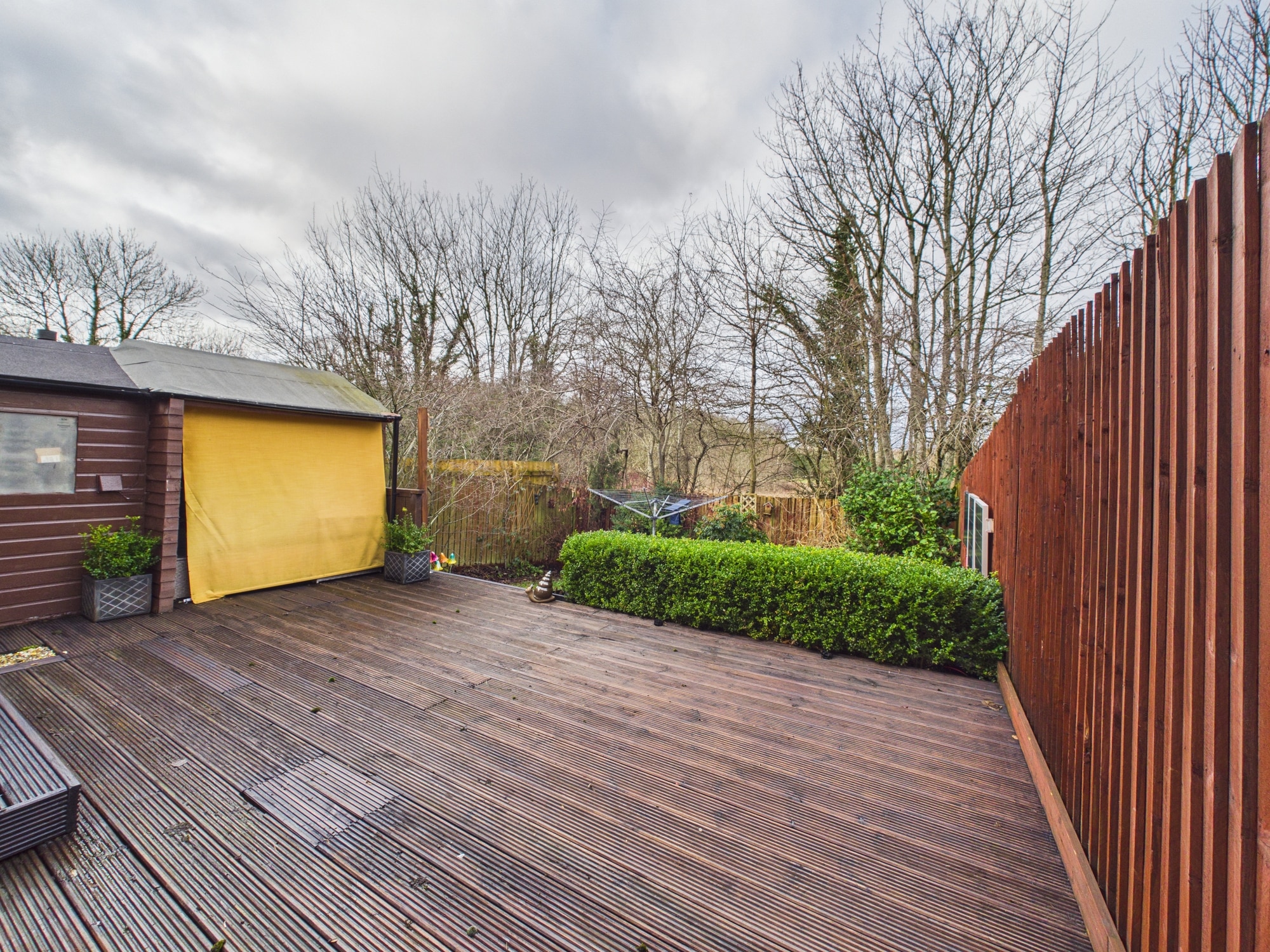 The property boasts full gas central heating and double glazing throughout. Front garden is mainly laid to lawn with decorative planted borders. Paved and gravel driveway to side provides off street parking for two cars. Private rear garden with open countryside aspects offering large timber deck patio, lawn, timber garden shed, matured planting and timber boundary fencing.