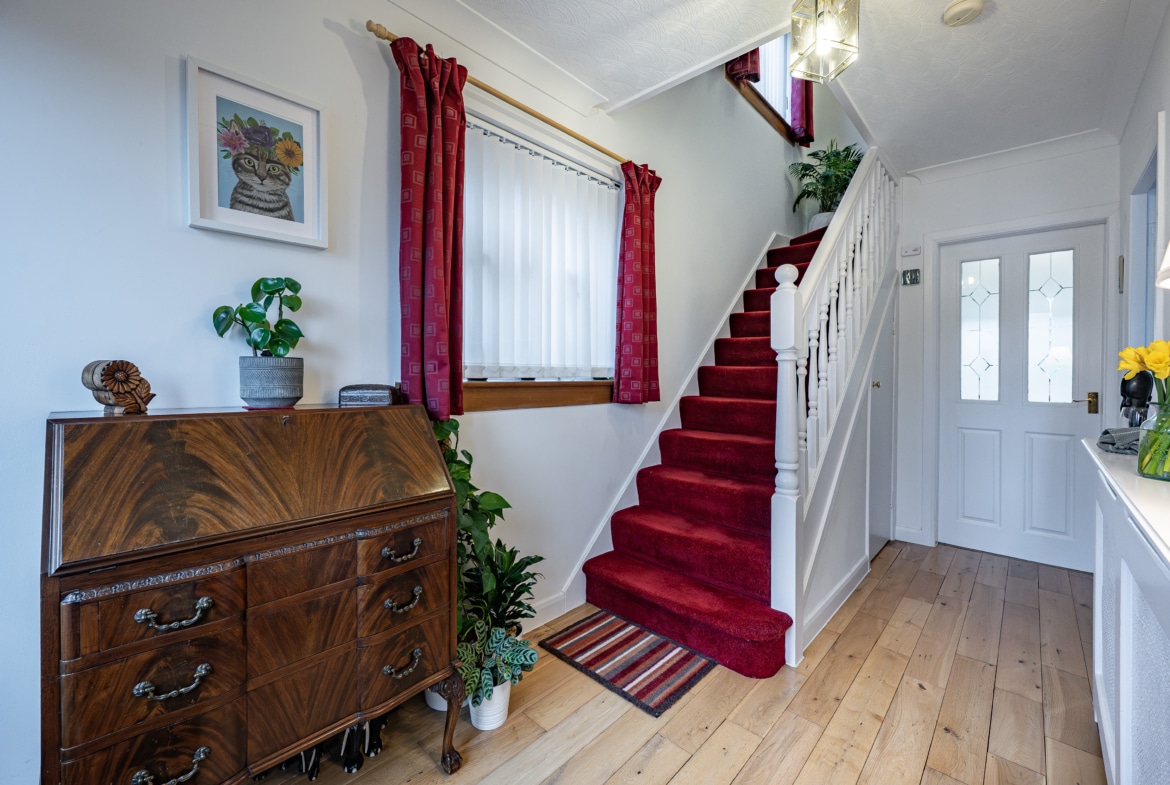 The entrance hallway leads to the main ground floor accommodation and gives access to the upper level. The lounge is to the front of the property and is of generous proportions, with a feature fireplace at its focal point. A separate dining room is accessed from the lounge and overlooks the rear gardens.
