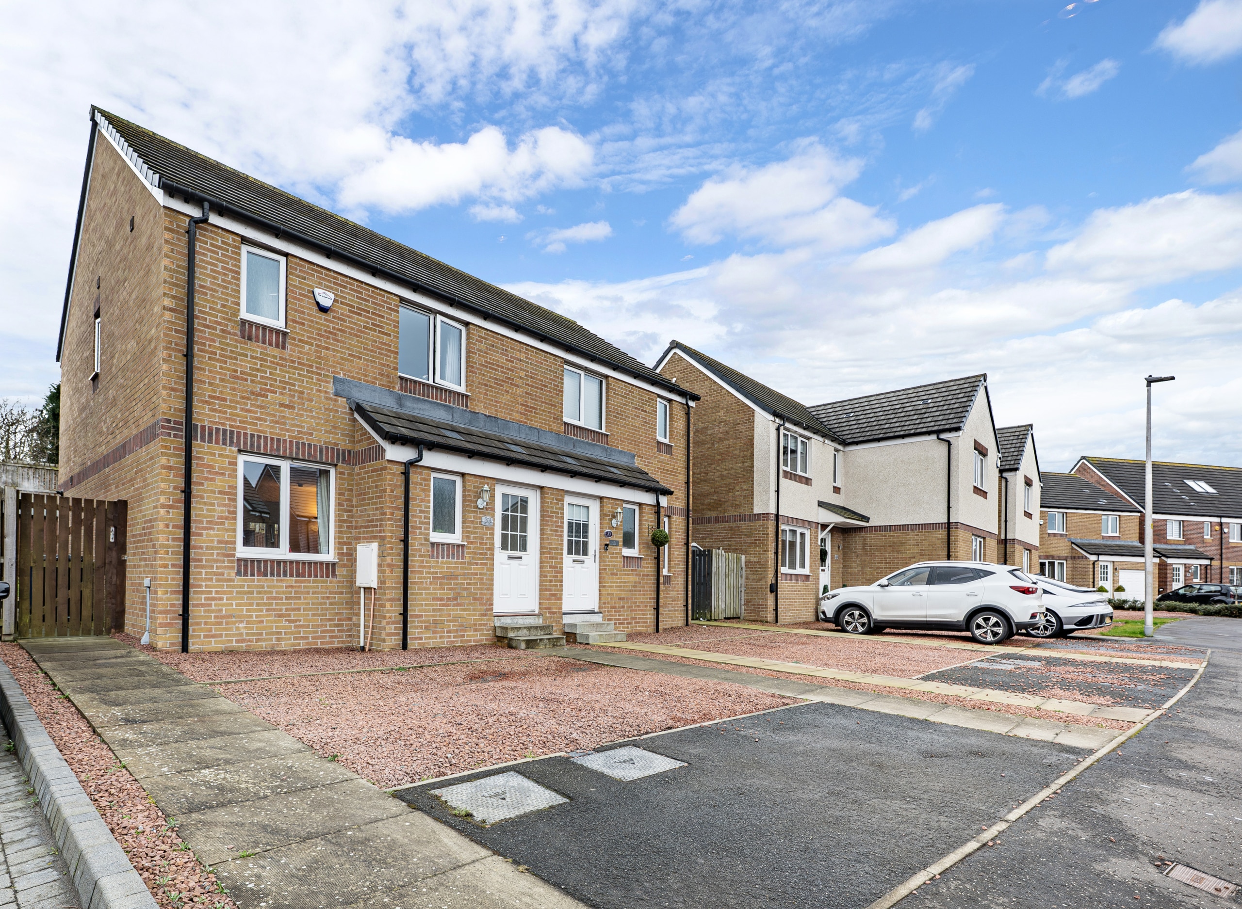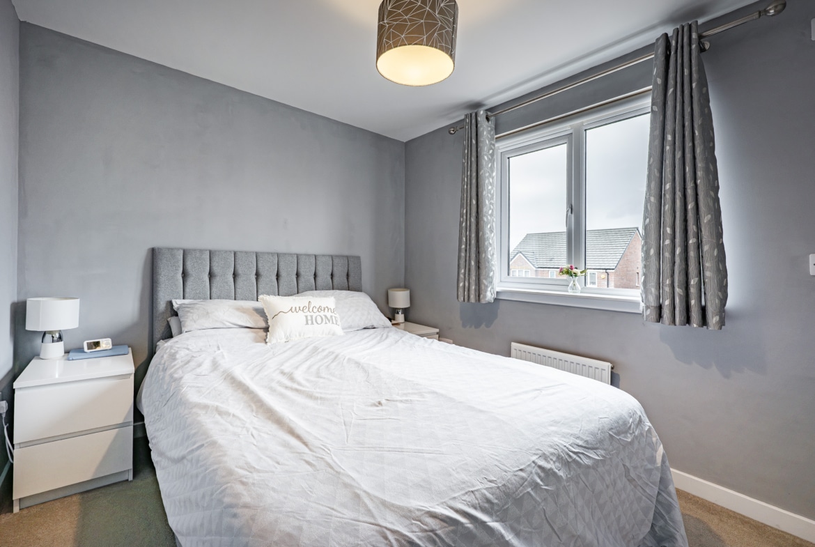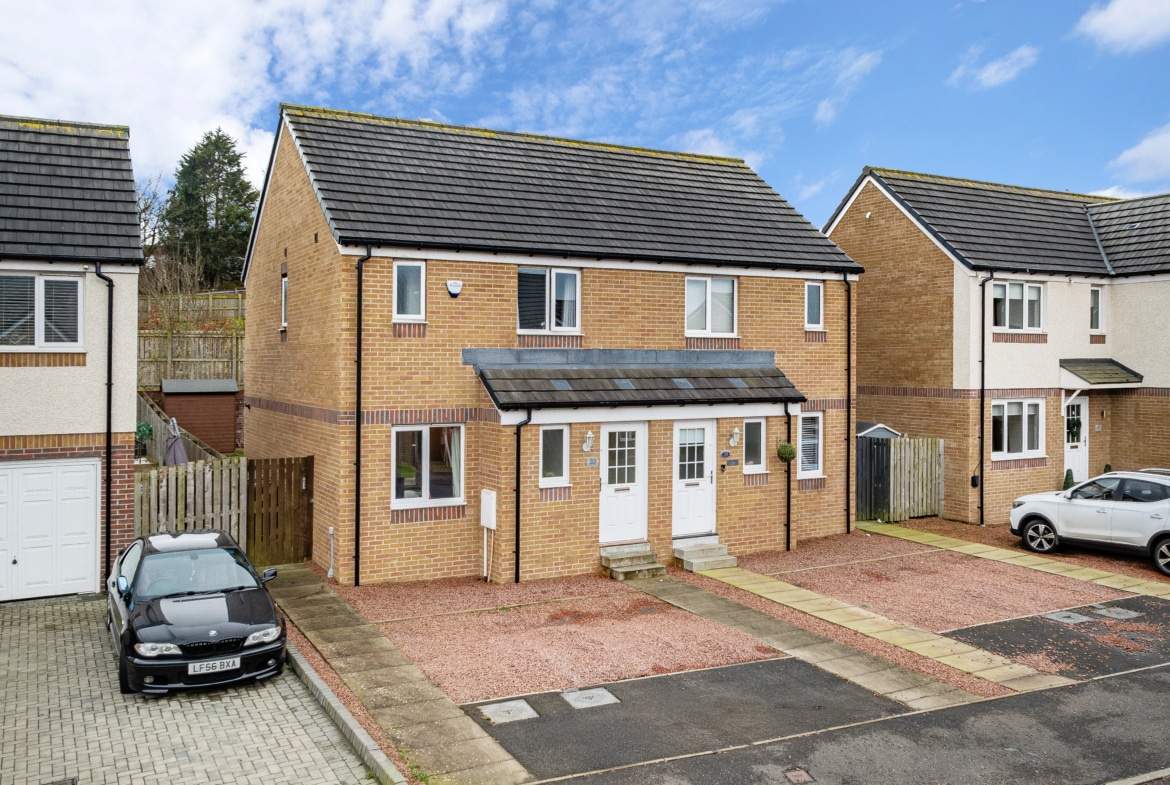 Built in 2018 by Persimmon Homes, this beautifully presented semi-detached villa enjoys a prime position within a generous south-facing rear garden in the highly sought-after Greenlees development in Cambuslang.