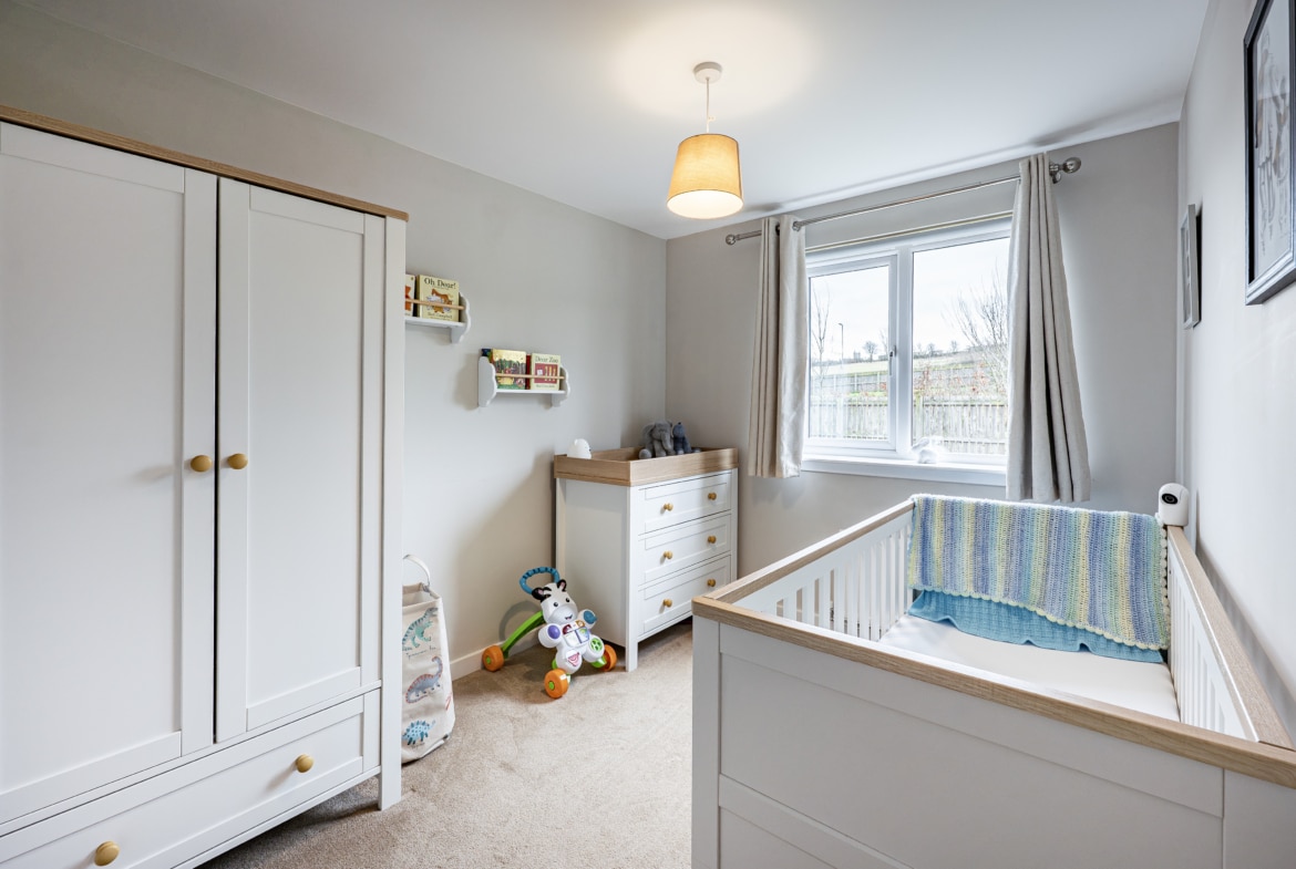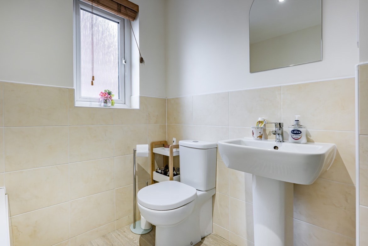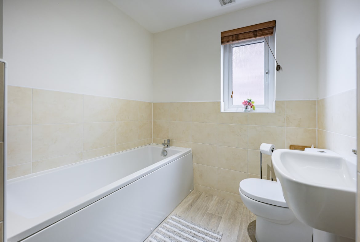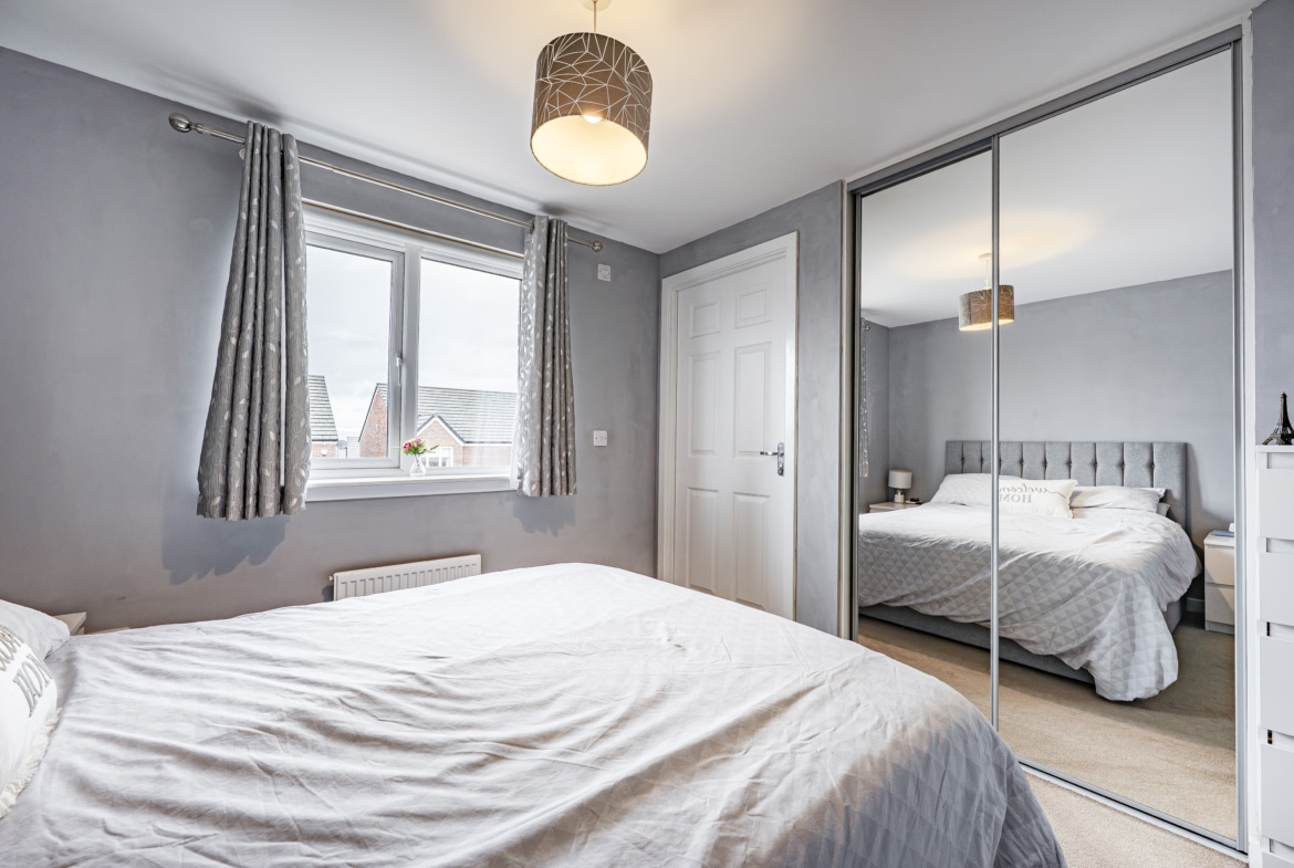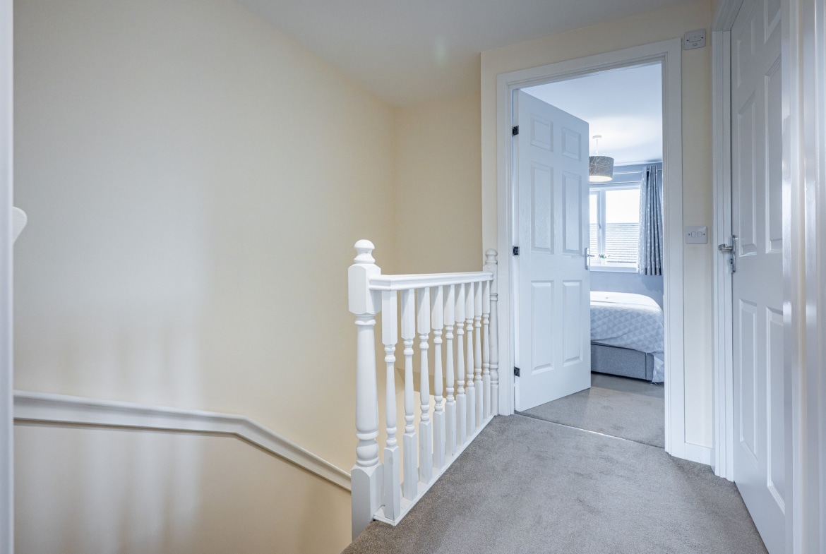 Upstairs, the landing provides access to a practical attic storage space and leads to three well-proportioned bedrooms. The principal bedroom benefits from fitted wardrobes and a stylish en-suite shower room. A contemporary three-piece family bathroom completes the upper level.