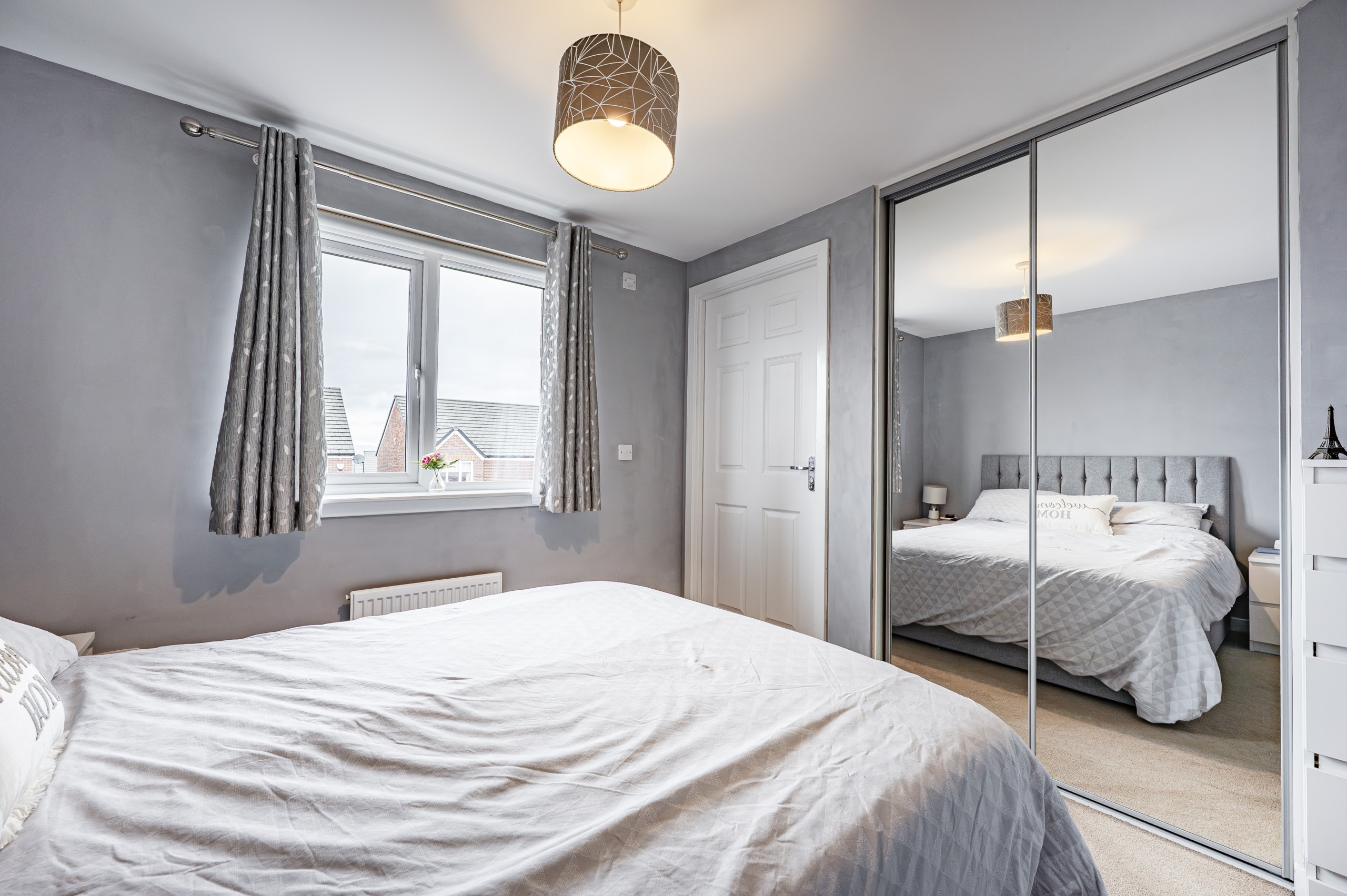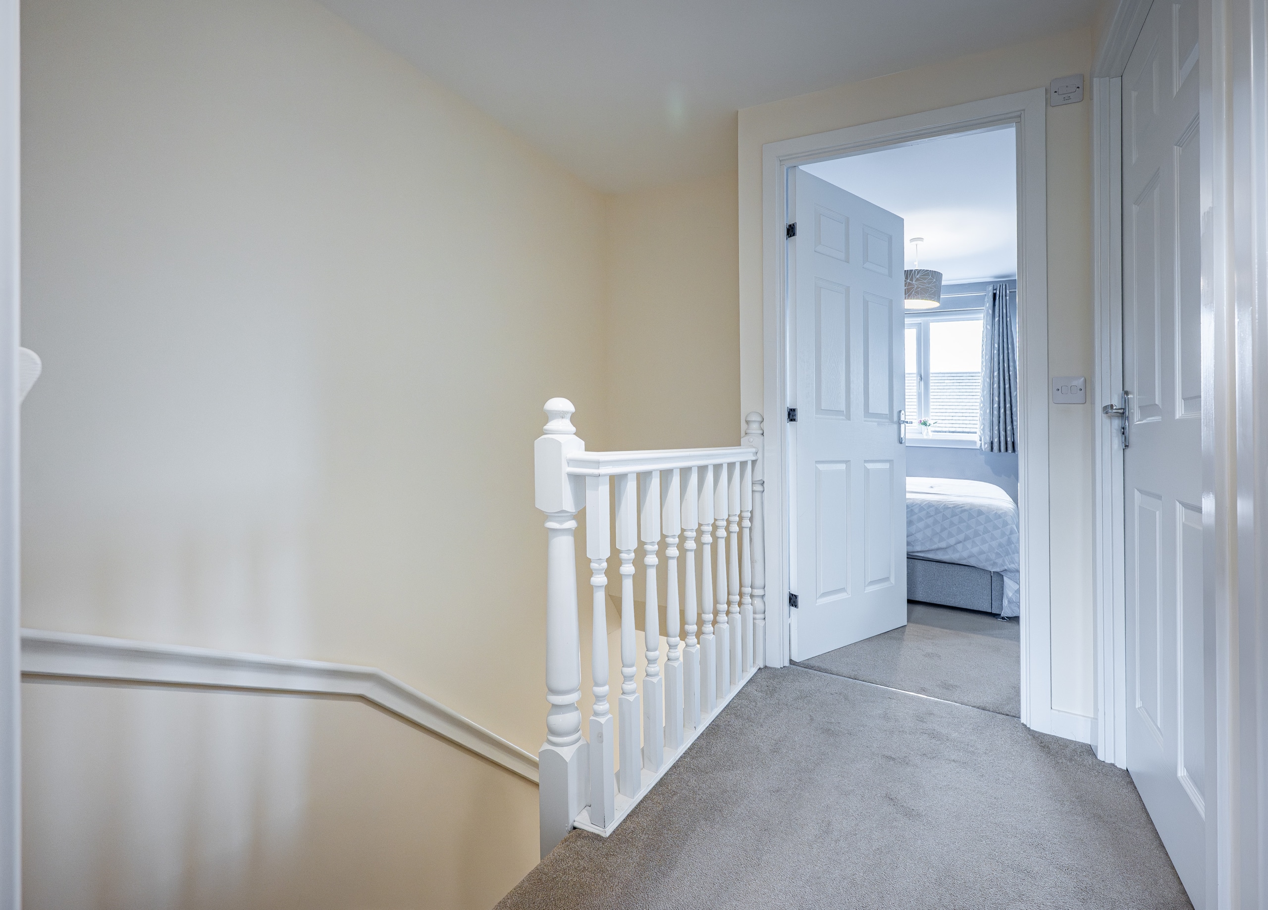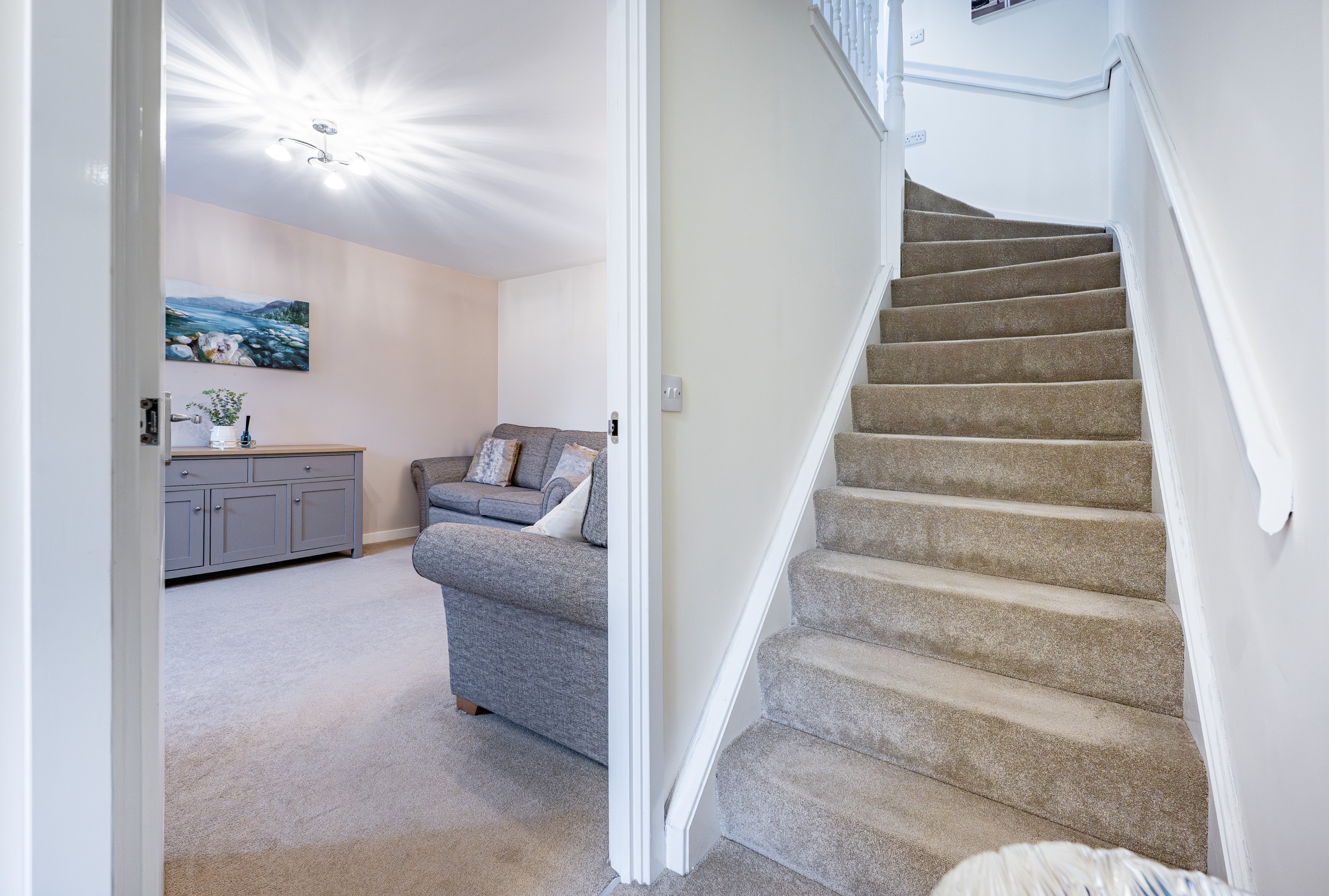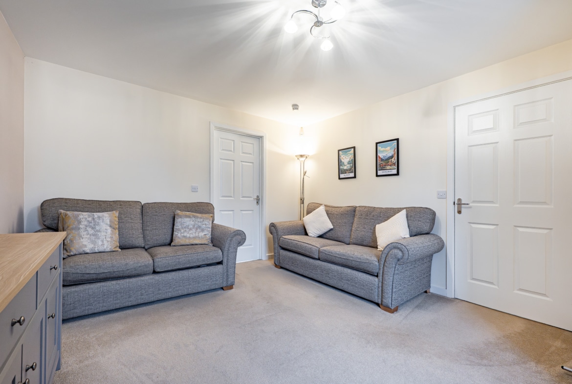 Upstairs, the landing provides access to a practical attic storage space and leads to three well-proportioned bedrooms. The principal bedroom benefits from fitted wardrobes and a stylish en-suite shower room. A contemporary three-piece family bathroom completes the upper level.