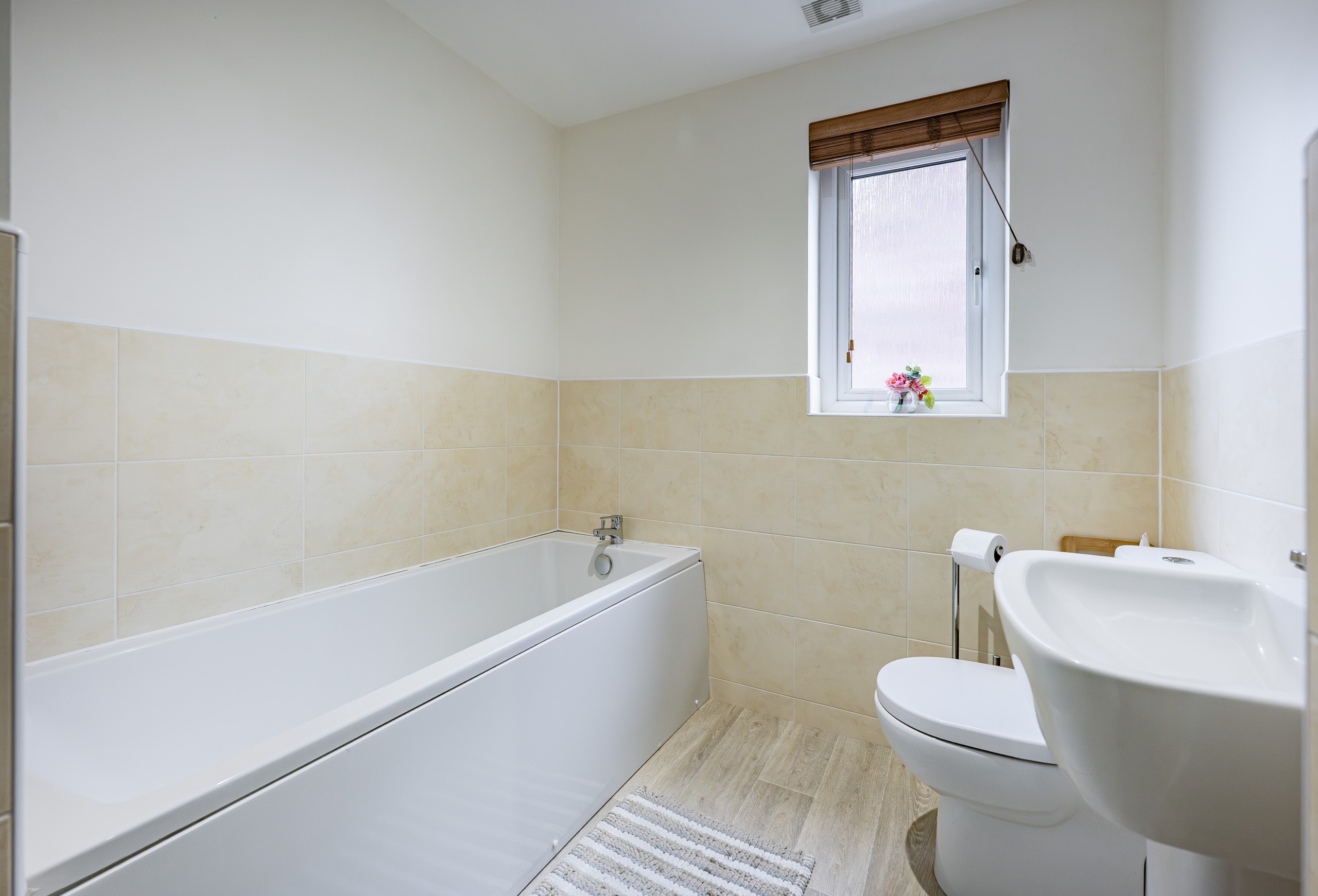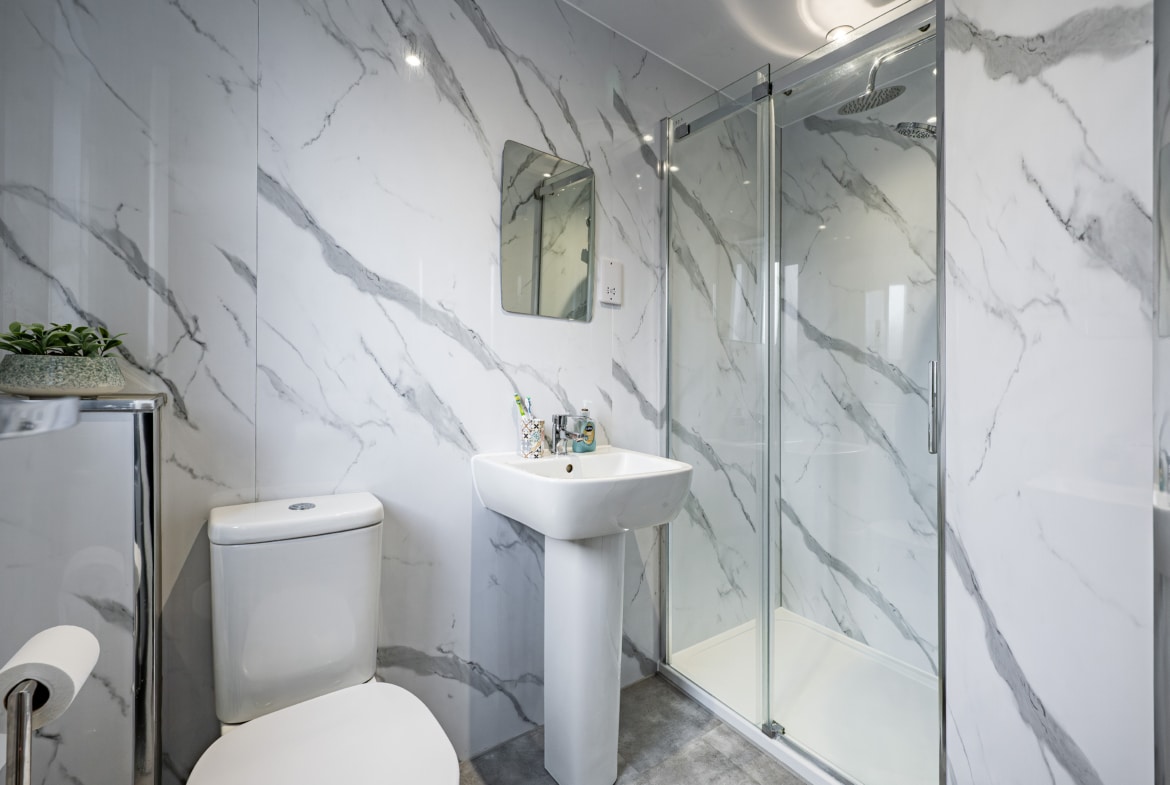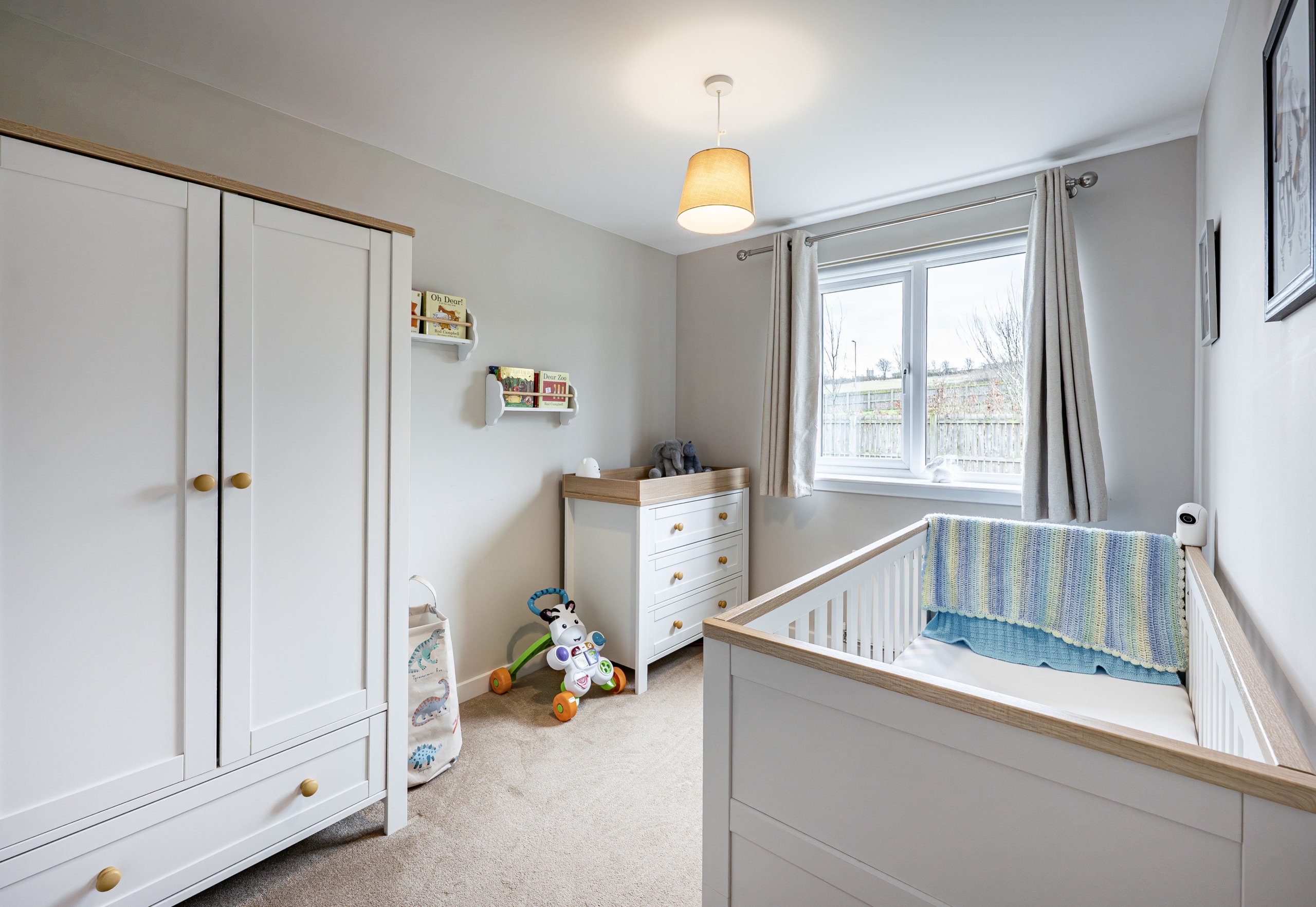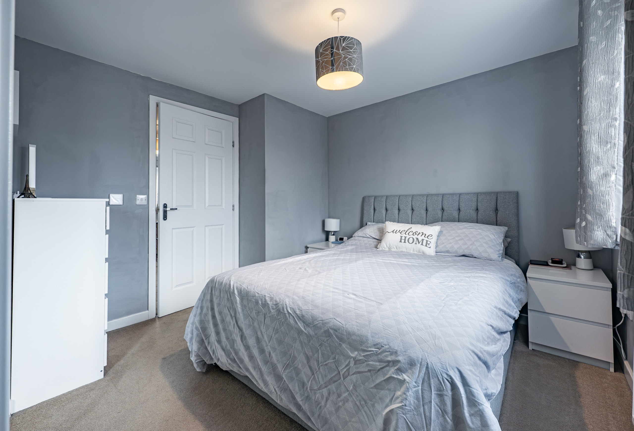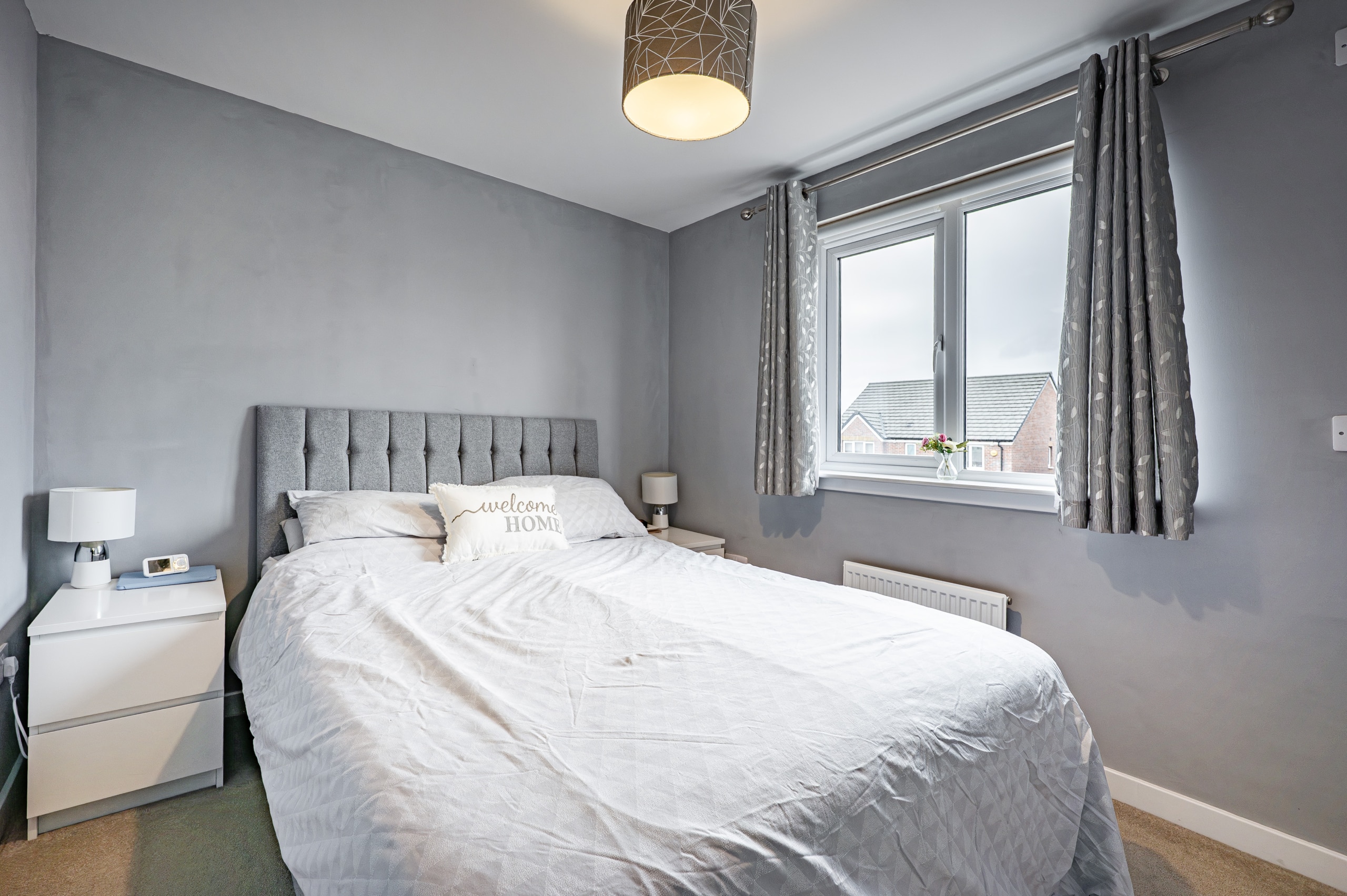 Upstairs, the landing provides access to a practical attic storage space and leads to three well-proportioned bedrooms. The principal bedroom benefits from fitted wardrobes and a stylish en-suite shower room. A contemporary three-piece family bathroom completes the upper level.