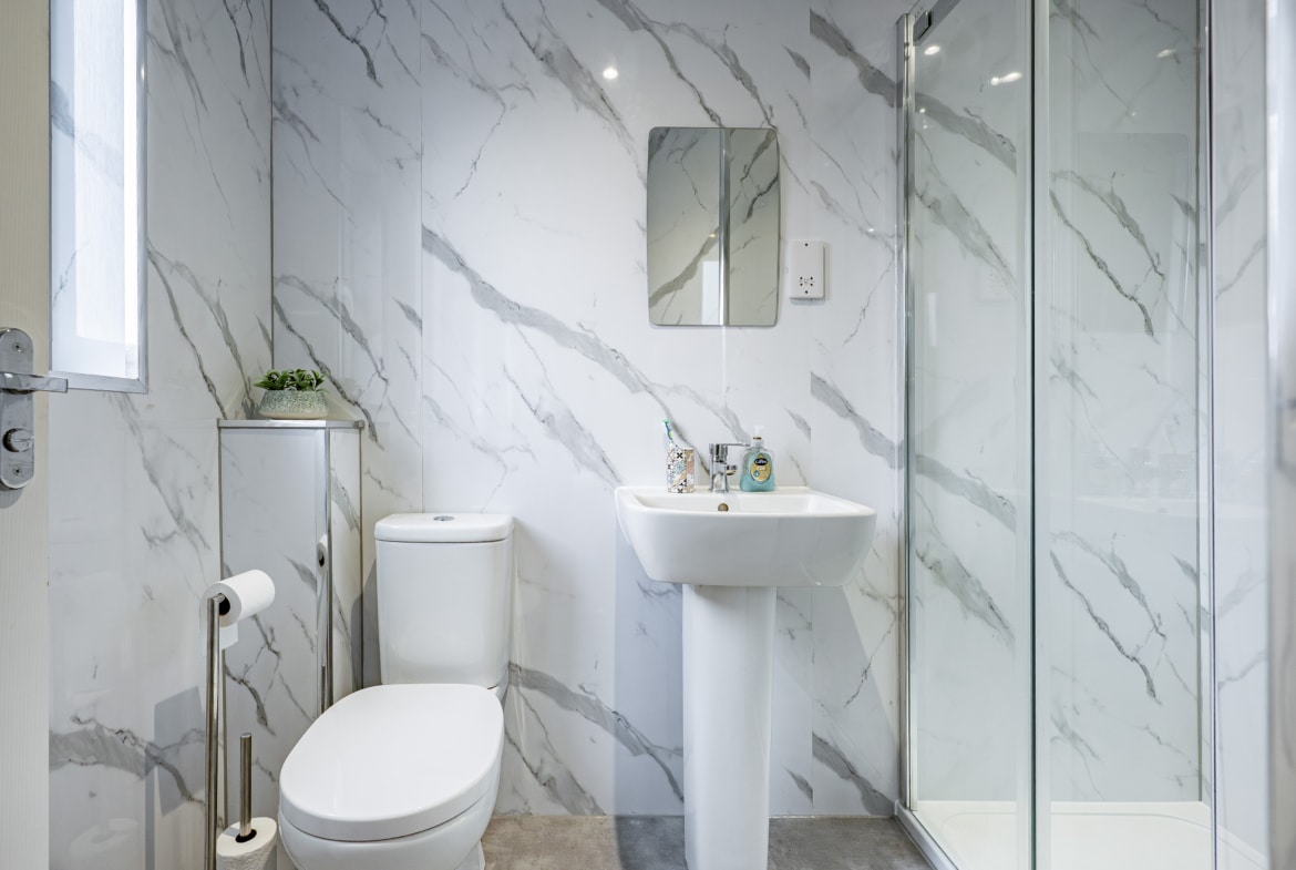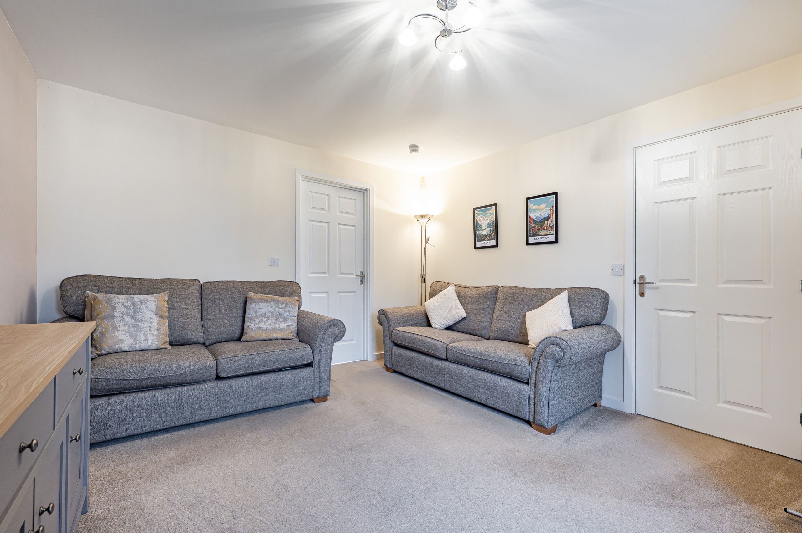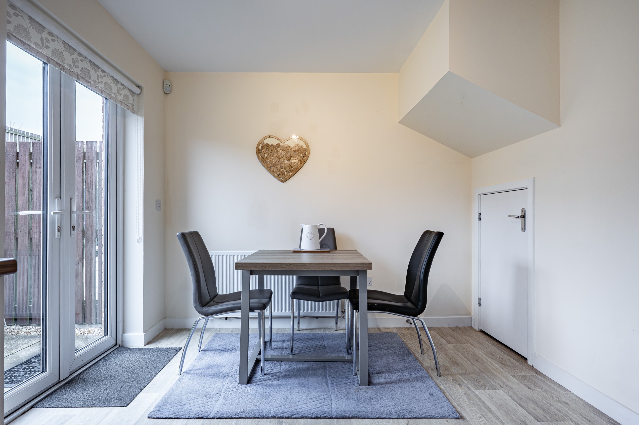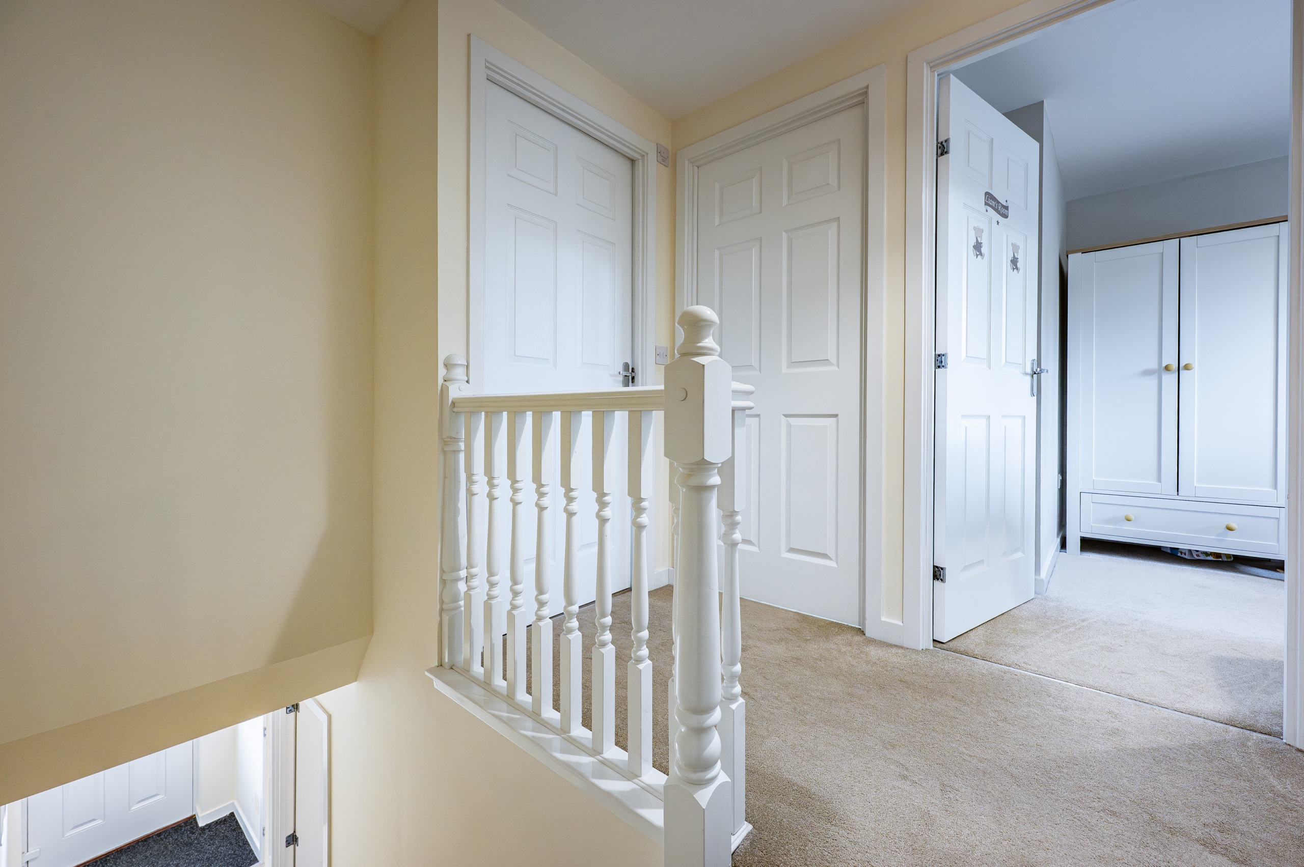 Upstairs, the landing provides access to a practical attic storage space and leads to three well-proportioned bedrooms. The principal bedroom benefits from fitted wardrobes and a stylish en-suite shower room. A contemporary three-piece family bathroom completes the upper level.