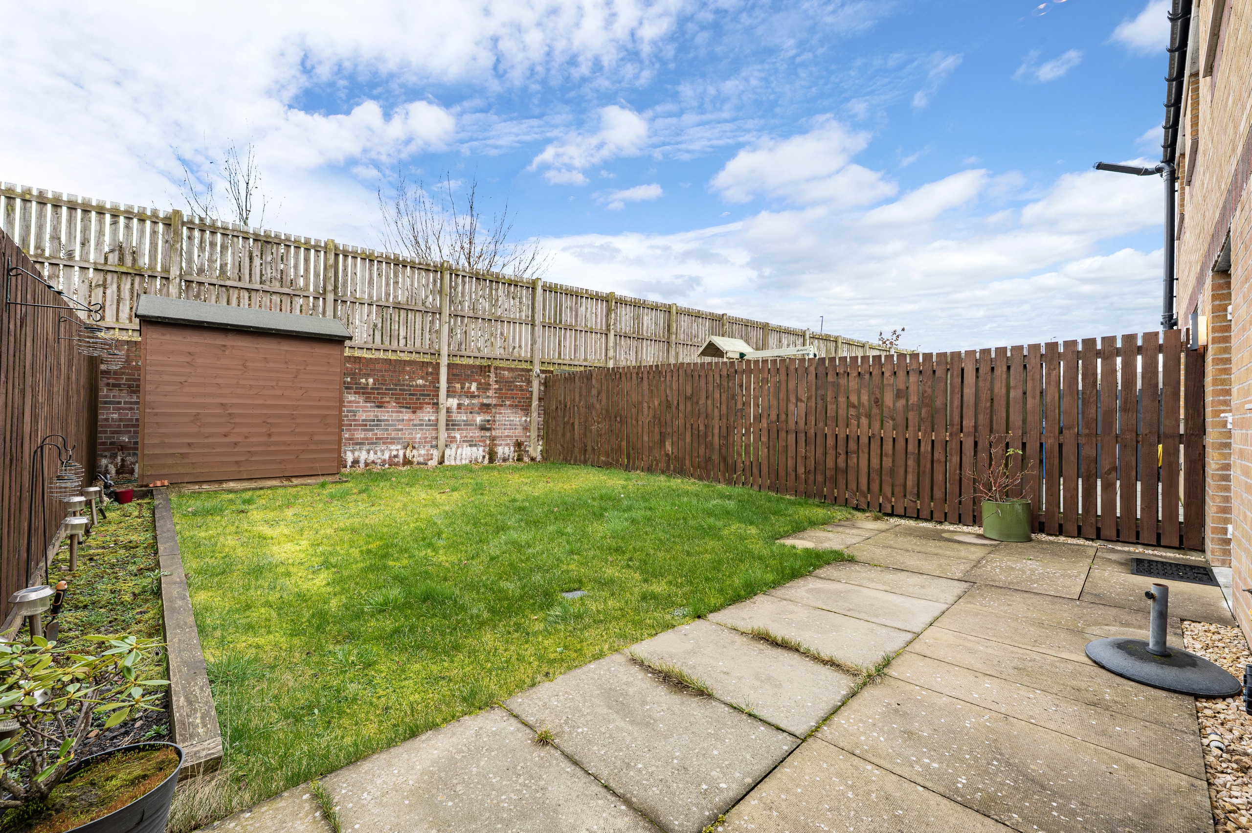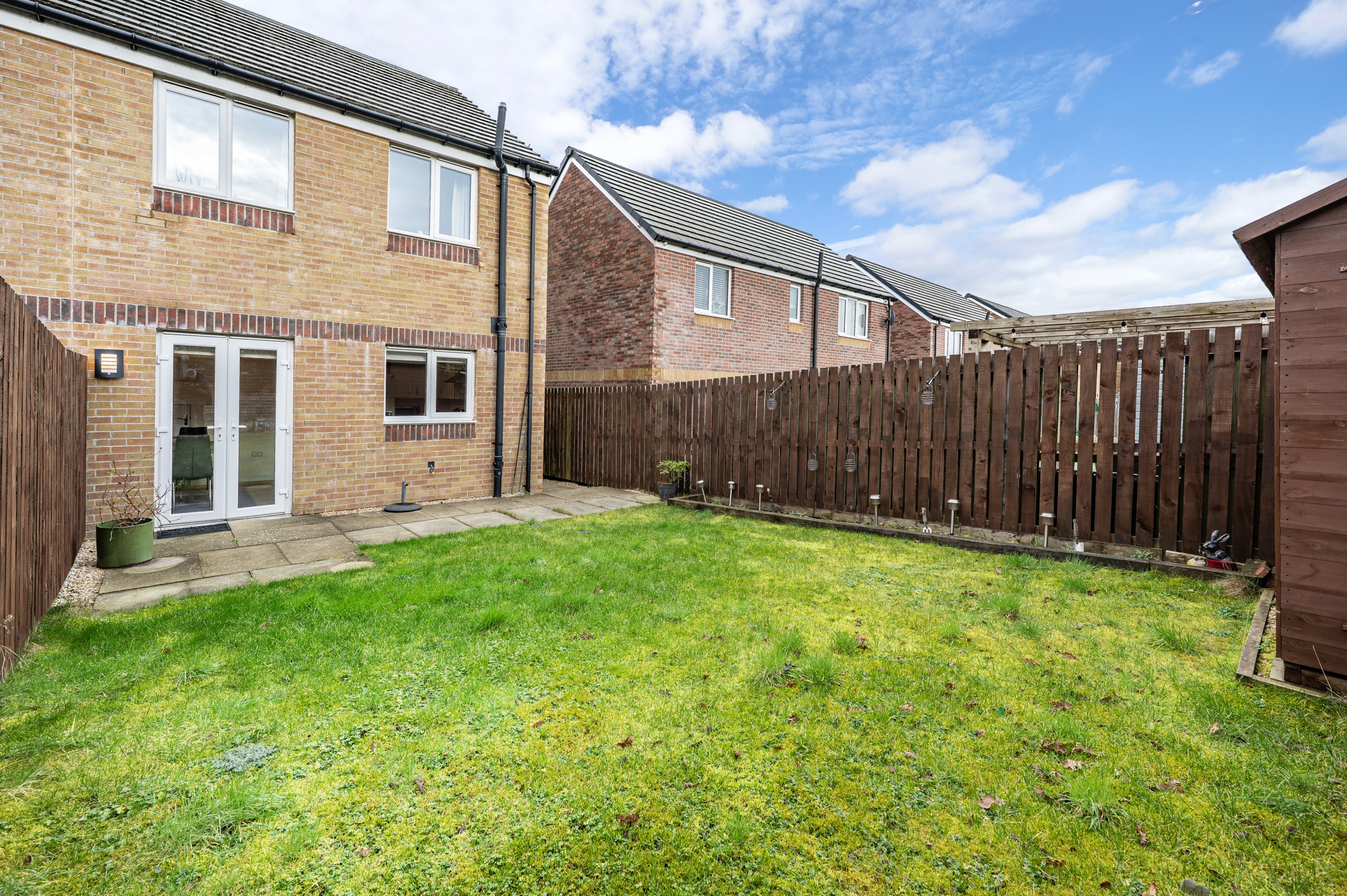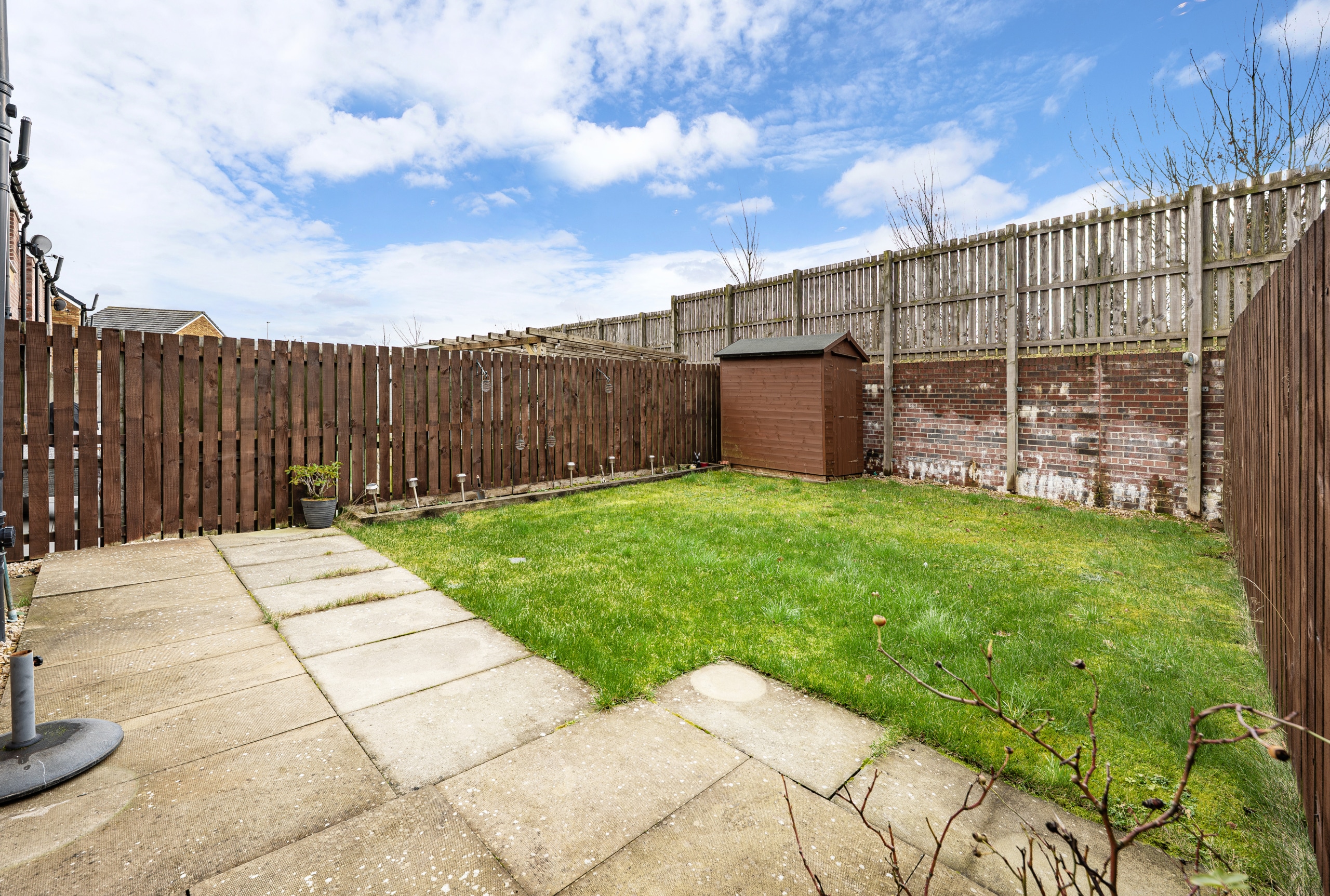 Externally, the property offers off-street parking via a driveway to the front, accommodating two vehicles. The fully enclosed rear garden is predominantly laid to lawn and features a paved patio area and garden shed, creating an ideal space for outdoor entertaining and al fresco dining.