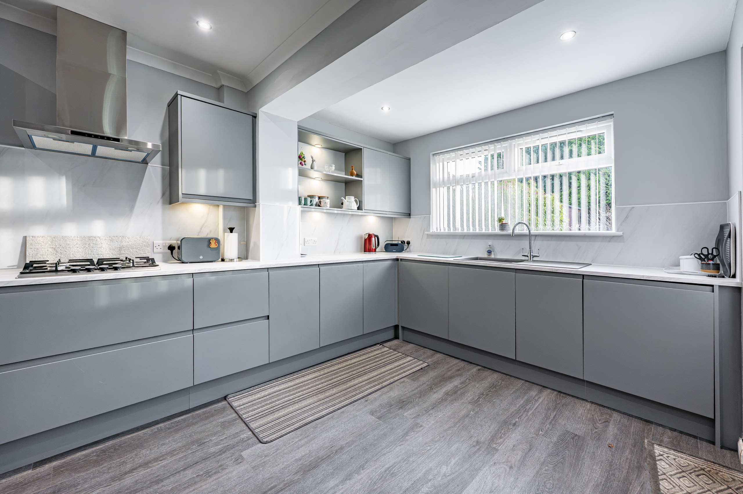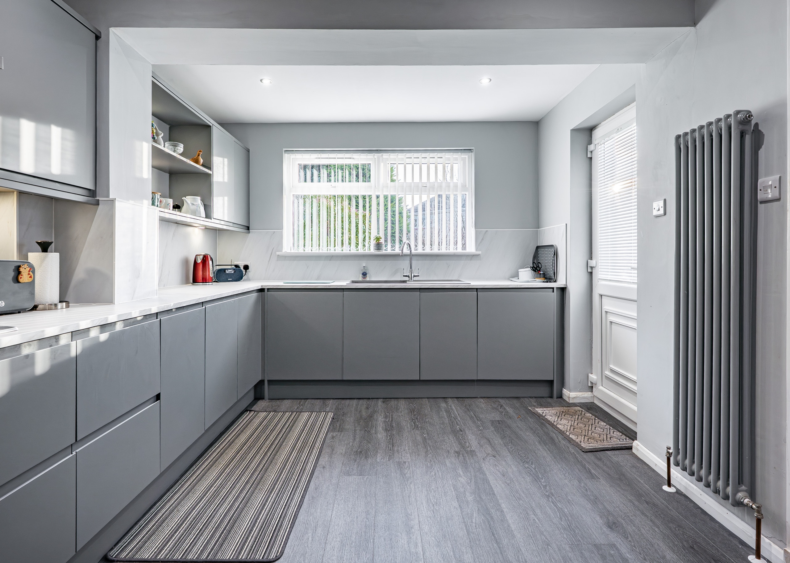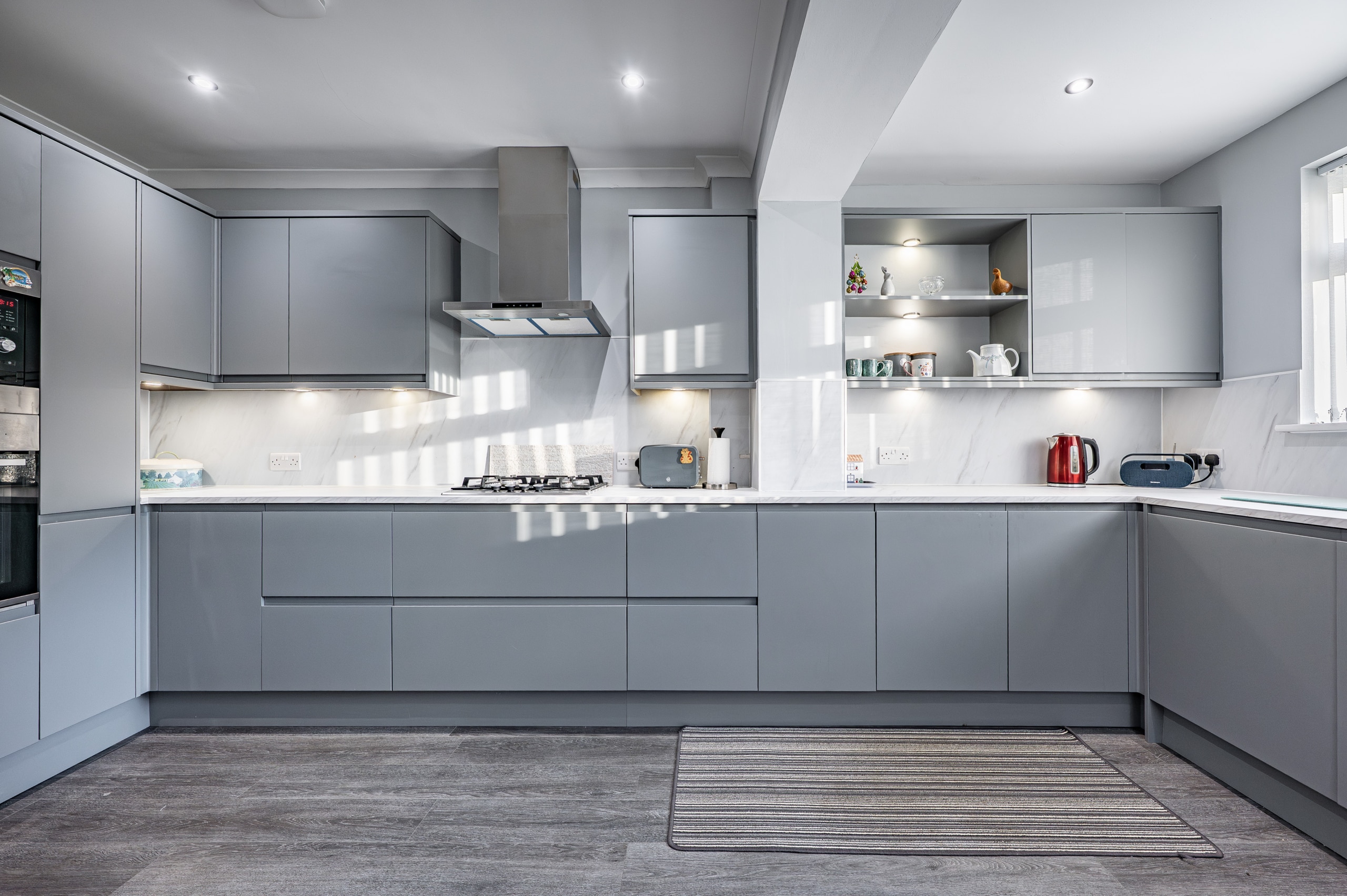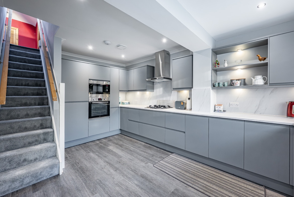 The kitchen has been greatly improved by an extension and is beautifully appointed with sleek modern cabinetry and integrated appliances.