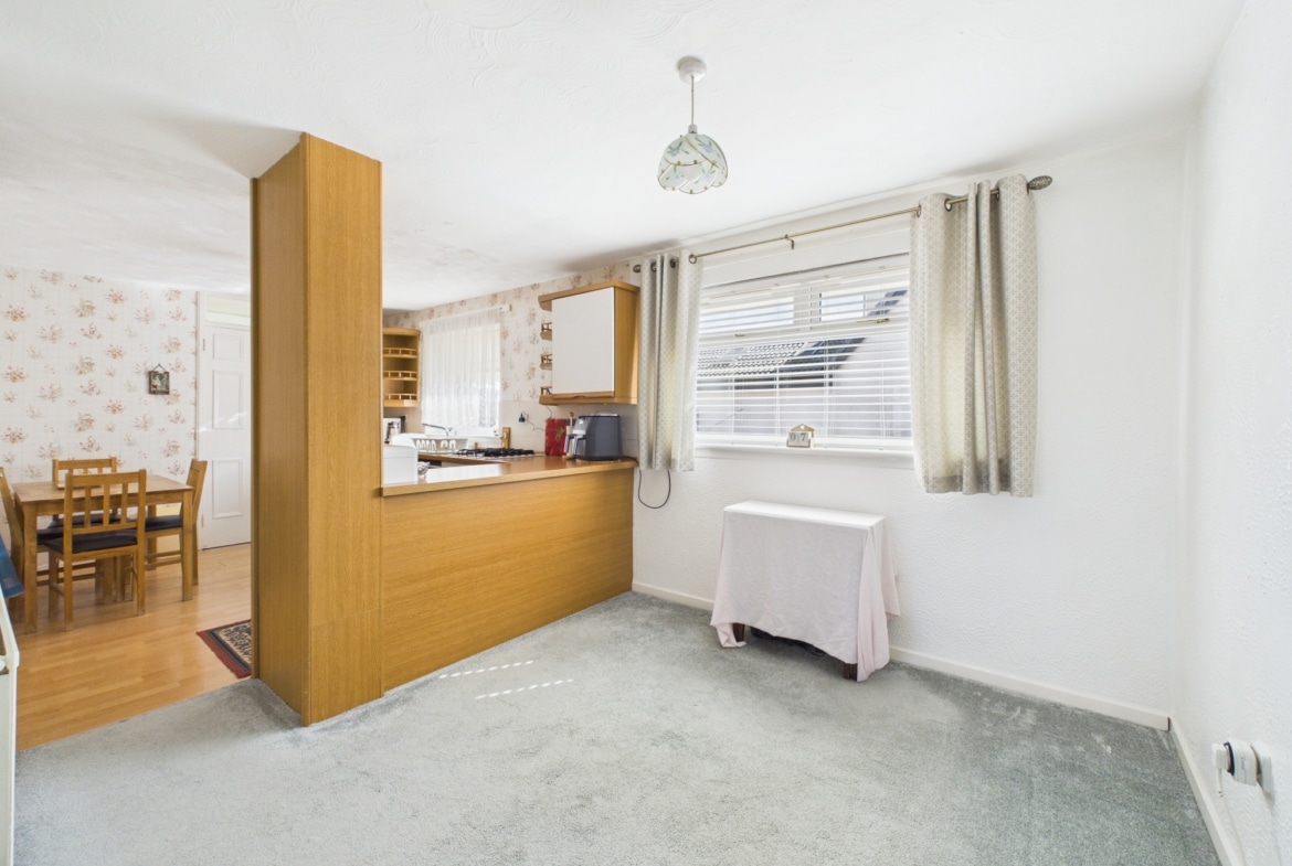 We are delighted to present to the market this deceptively spacious semi detached villa within sought after locale. The property has been well maintained and has been under the same family custodianship since construction. The flexible family accommodation is arranged over two floors comprising: Entrance to property via front facing composite door with matching glazed side panel giving access to entrance hallway. Hallway with fitted carpet leads to lounge, dining kitchen, bedroom one, storage cupboard and carpeted staircase. Lounge benefits from front facing bay style window formation, decorative gas fire and carpet. The lounge provides open access to formal rear dining area with fitted carpet. Rear facing fitted kitchen offering range of base and wall mounted units, ample work surfaces, gas hob, electric oven (no longer operational), partially tiled walls and vinyl flooring. The kitchen leads to rear vestibule providing access to walk in store/pantry, wc and rear facing half glazed upvc door to garden. Rear facing wc comprising low flush wc, wash hand basin, partially tiled walls and vinyl flooring. Bedroom one is front facing with fitted carpet.