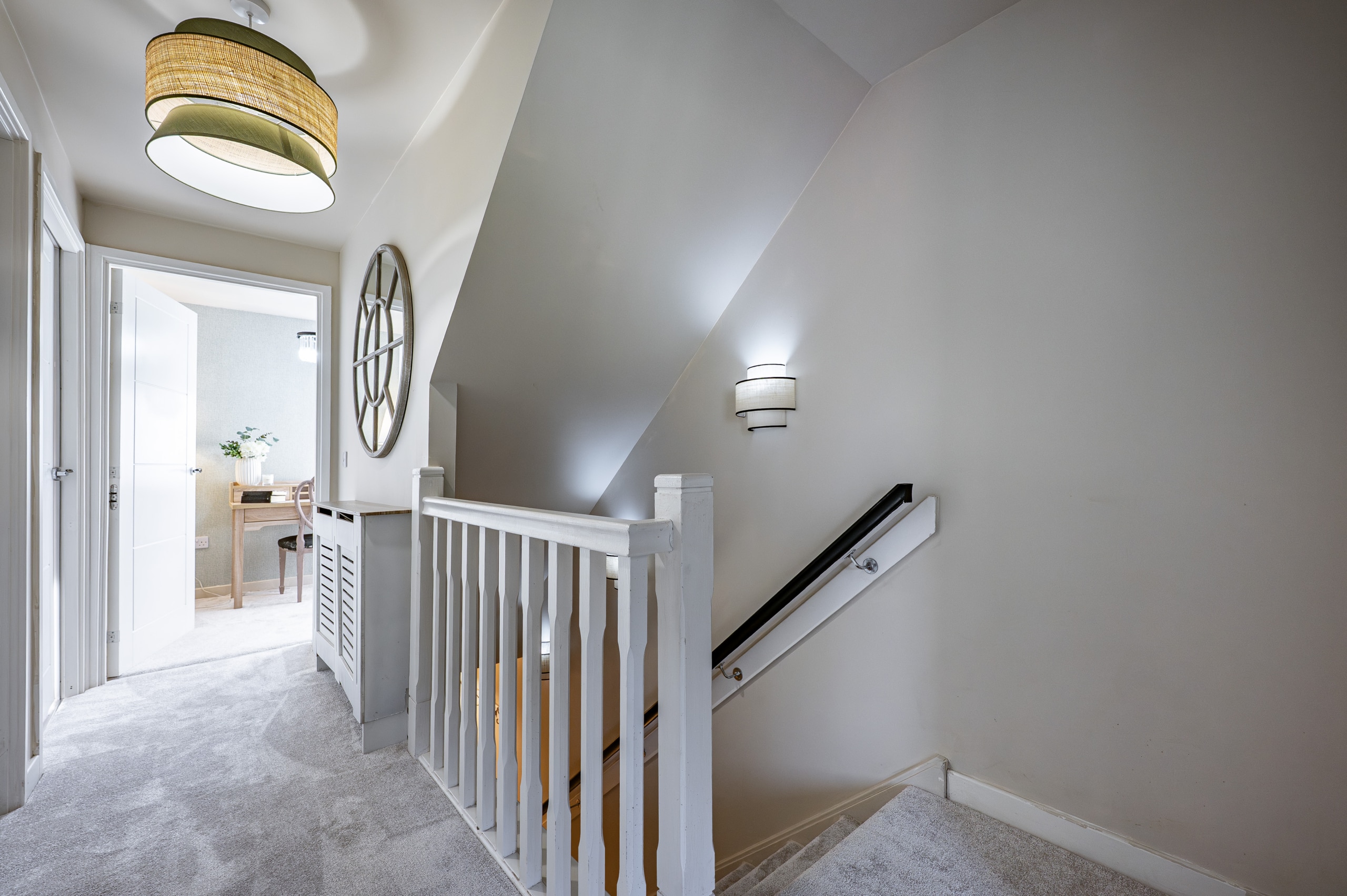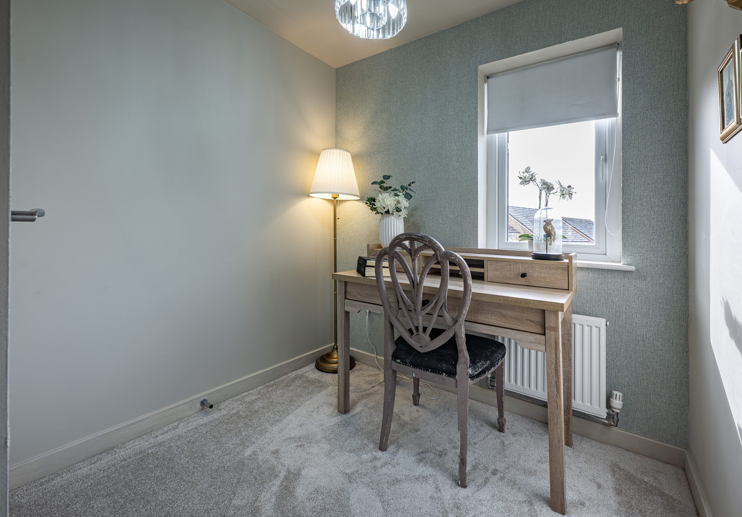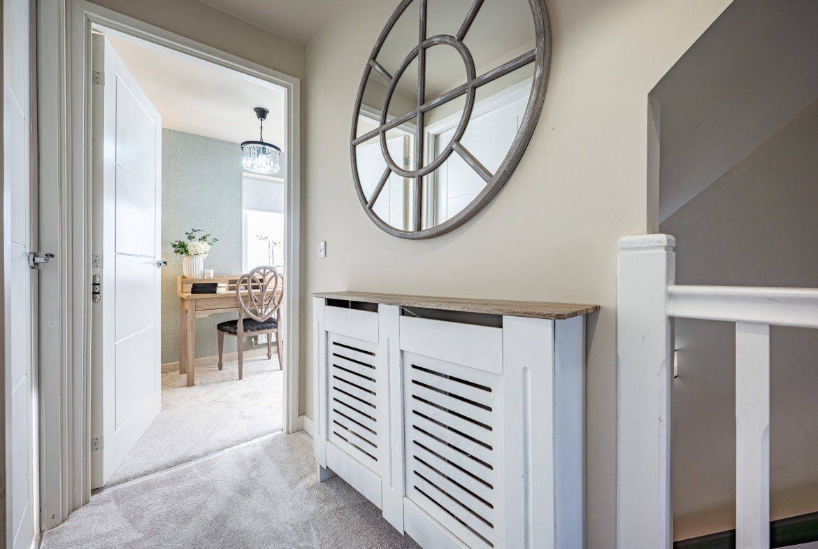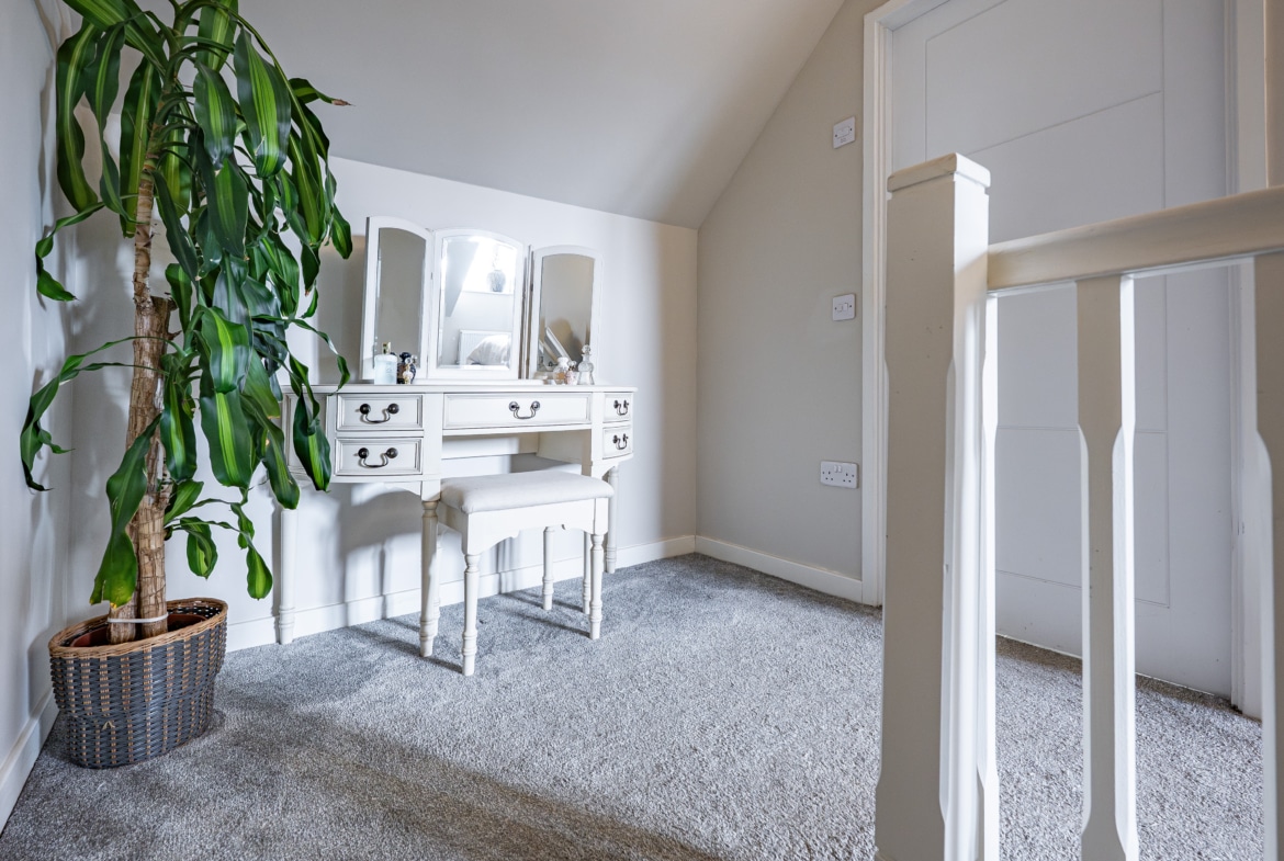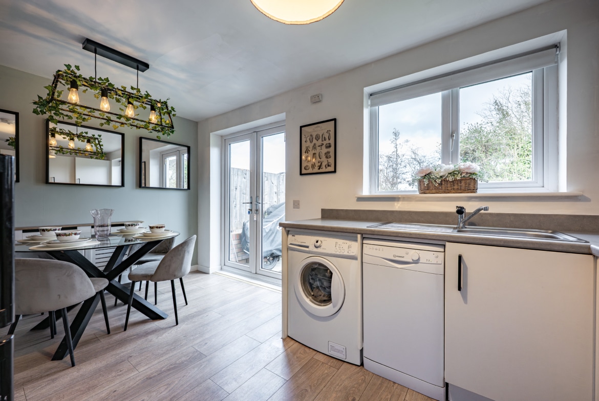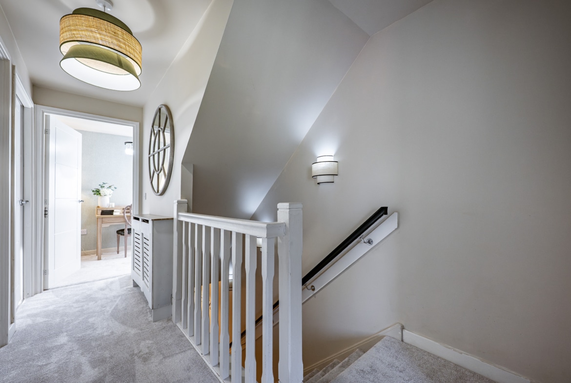 The accommodation begins with a warm and welcoming entrance hallway, where a staircase rises to the upper levels. The lounge is a comfortable front-facing room, featuring a bay window. From here, there is an inner hallway with fitted storage, access to the guest w.c. and the impressive dining-sized kitchen, which opens through French doors to the rear garden. On the first floor, there are two large double bedrooms, a well-appointed three-piece bathroom, and a designated work-from-home or study area. The top floor reveals a spectacular principal bedroom with an en-suite shower room, and excellent floored eaves storage.