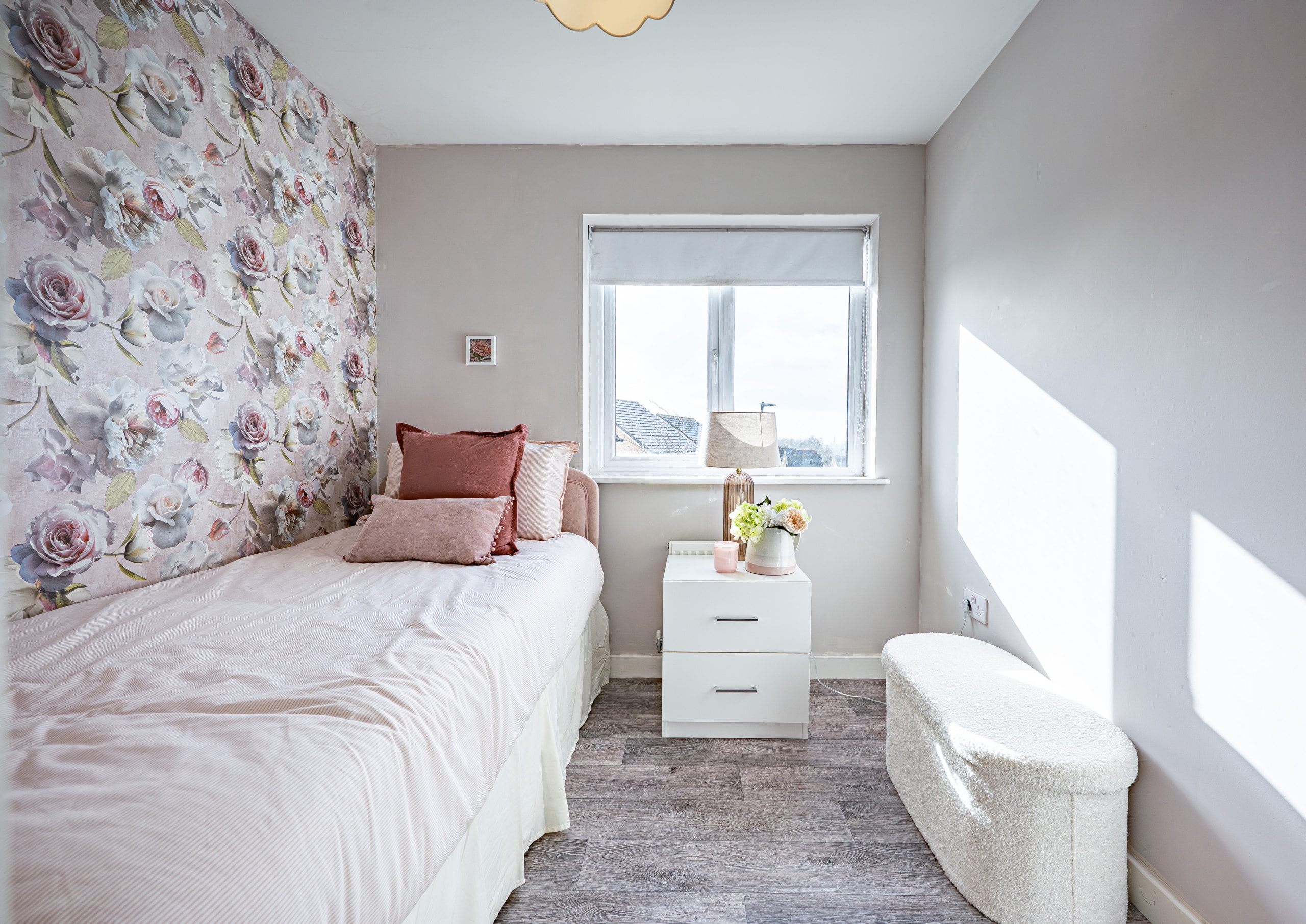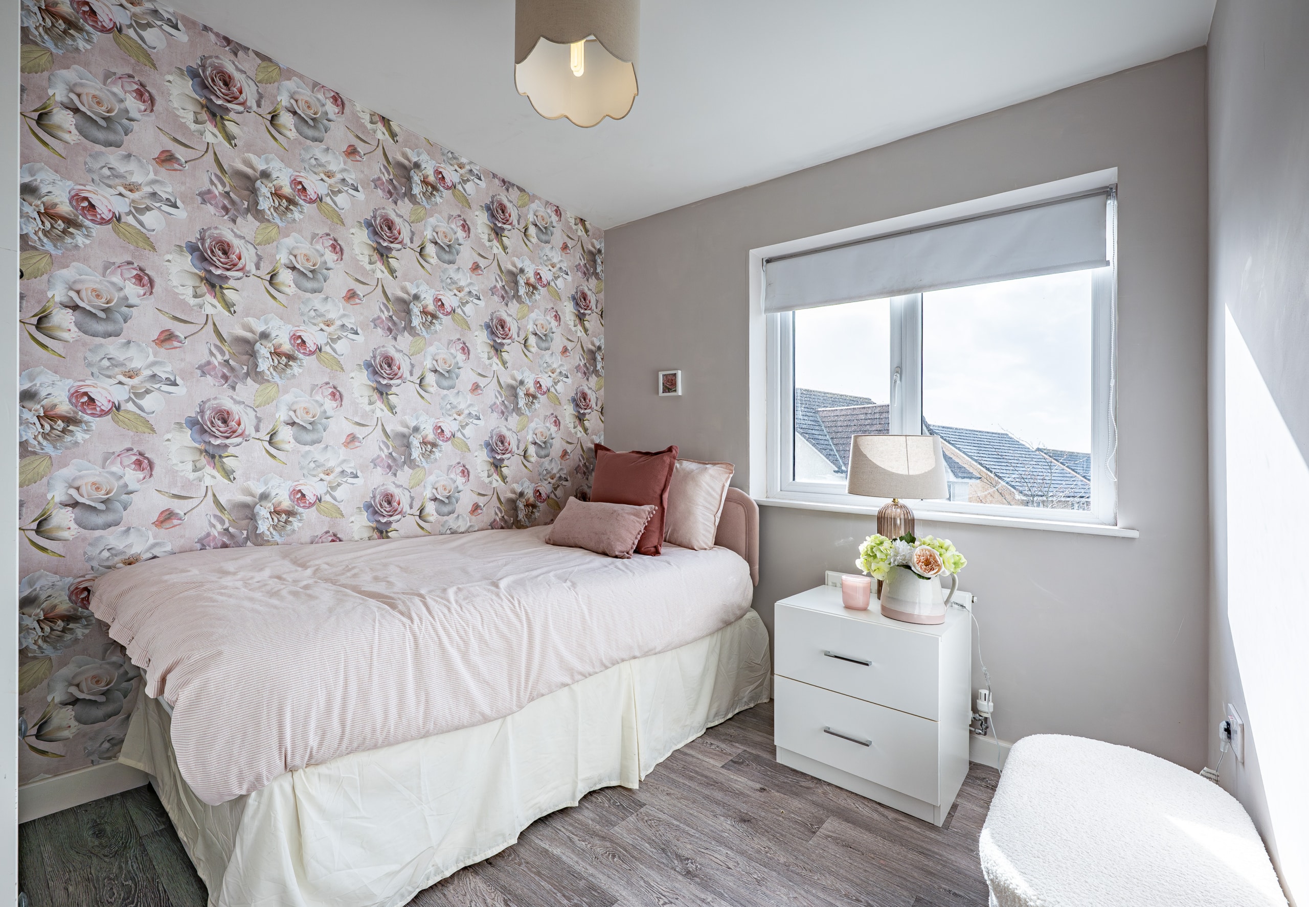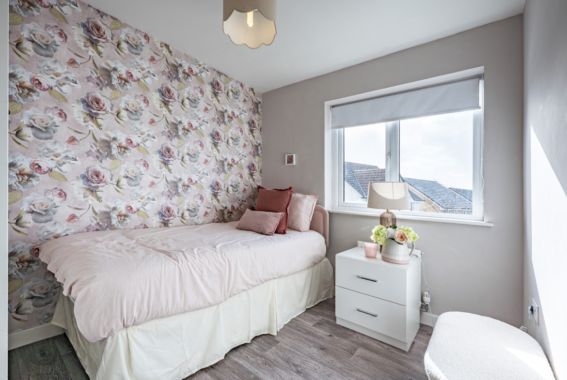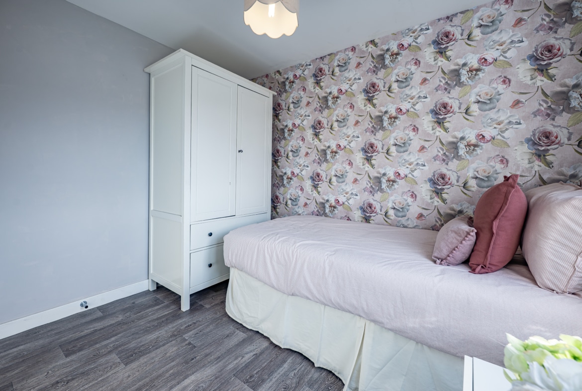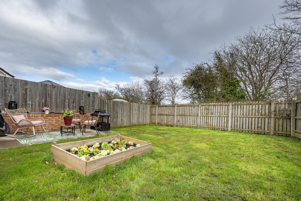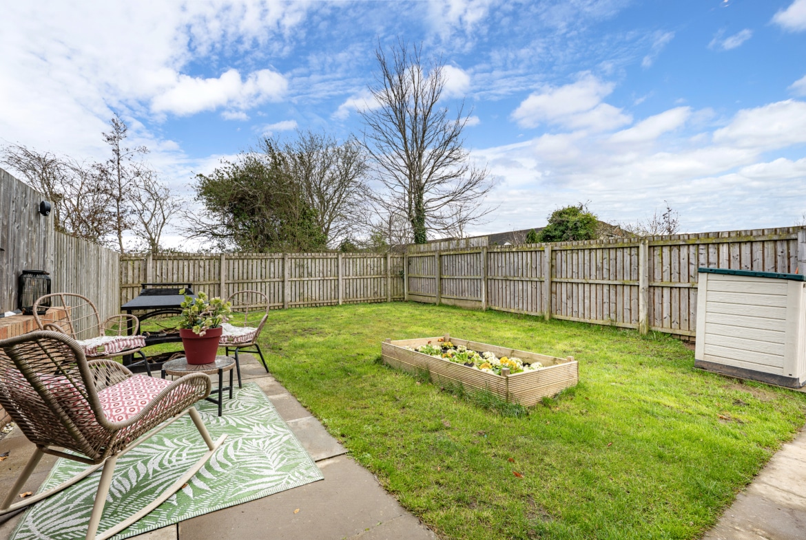 Outside, the property boasts an easily managed front lawn and an adjacent driveway providing ample off-street parking. The delightful rear garden is predominantly laid to lawn and fully enclosed by perimeter fencing.