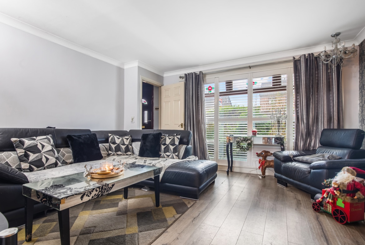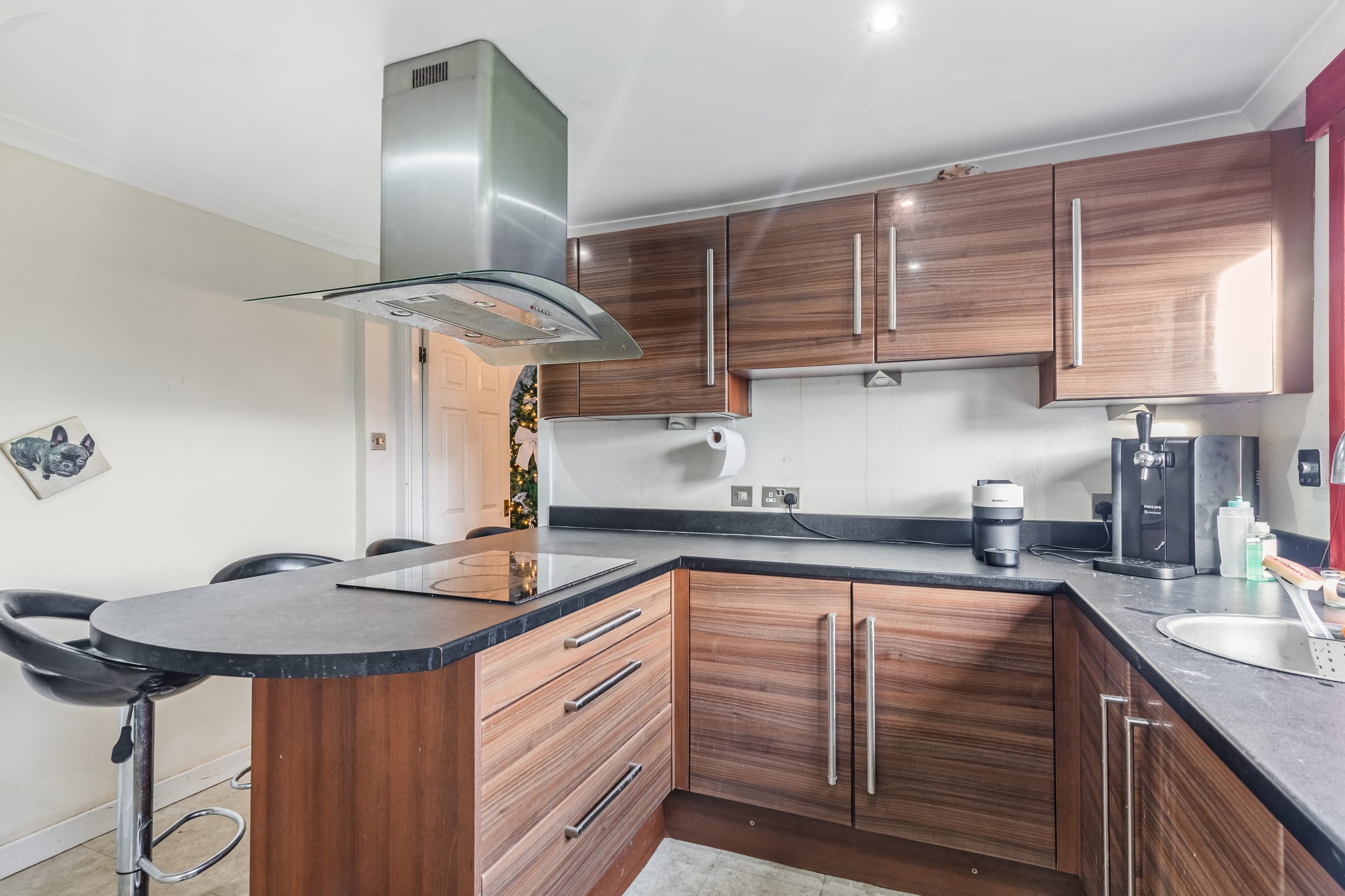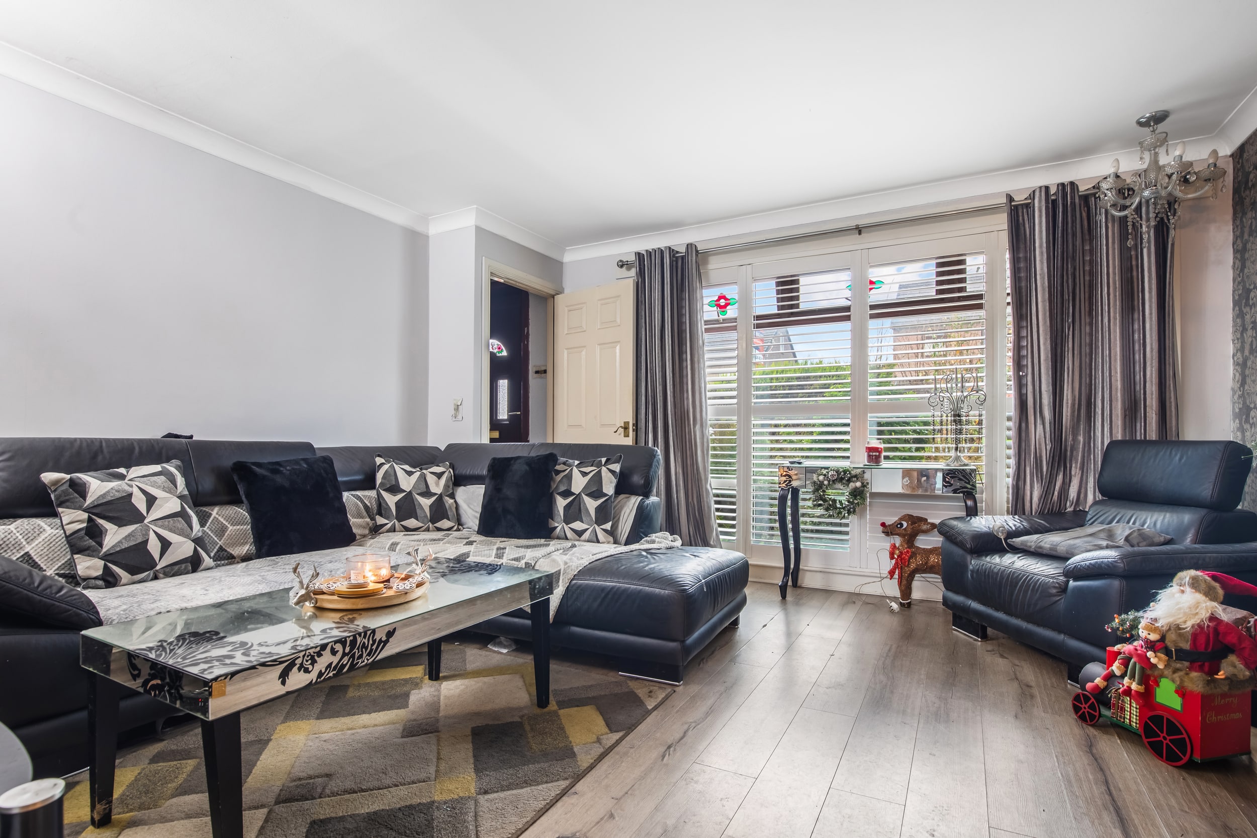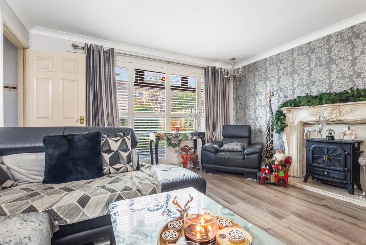 Set back from the road behind a front lawn and monoblock driveway, the front door opens into a welcoming vestibule, on your left you are drawn into the living room, here a generous footprint offers options for various furniture configurations. Flowing through an archway to the dining area with space for a large table and chairs, the perfect spot to enjoy family meals whilst enjoying views and access across the rear garden through French doors. Next door is the modern kitchen fitted with a range of walnut gloss base and wall mounted cabinets, a sweep of contrasting work tops, electric hob, and integrated oven. A step down from the kitchen is the utility room, with space for a washing machine, and tumble dryer and access to the rear garden.