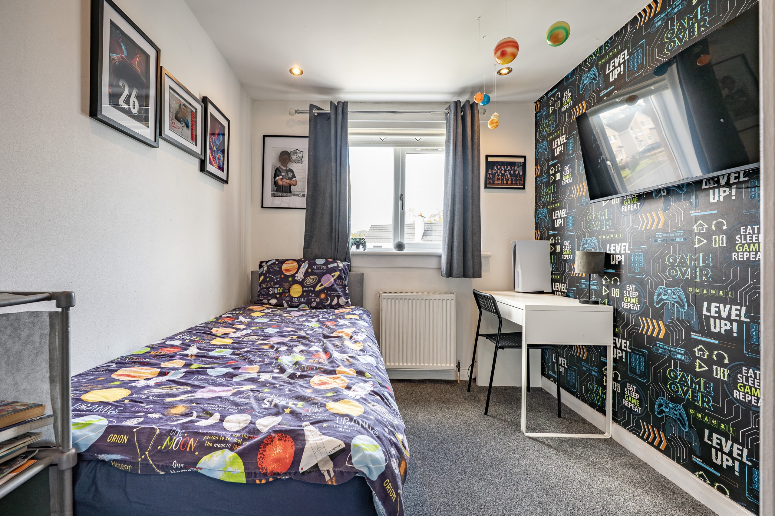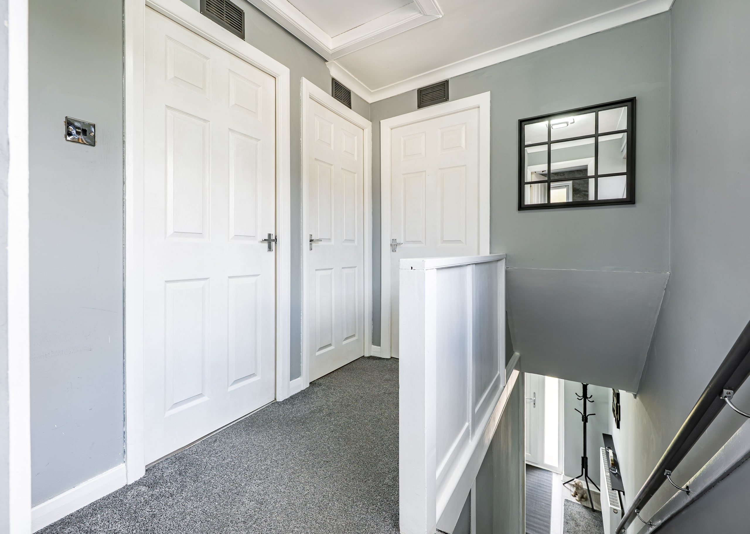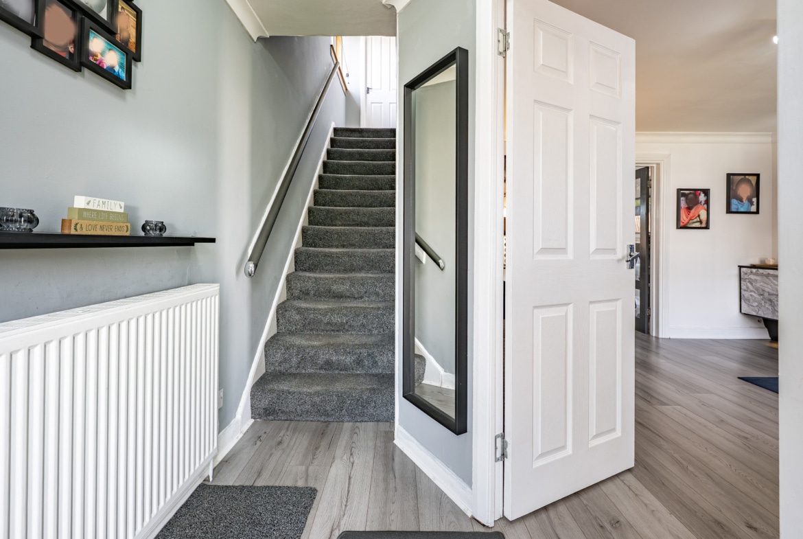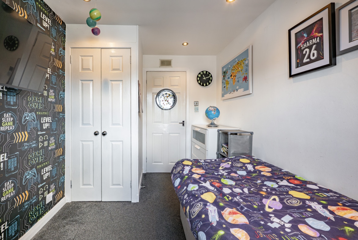 Upstairs, the landing provides access to three generously sized bedrooms, all of which benefit from fitted storage or wardrobe space. There is also a useful storage cupboard and access to a valuable attic area. A contemporary shower room, finished to a high standard, completes the upper level.