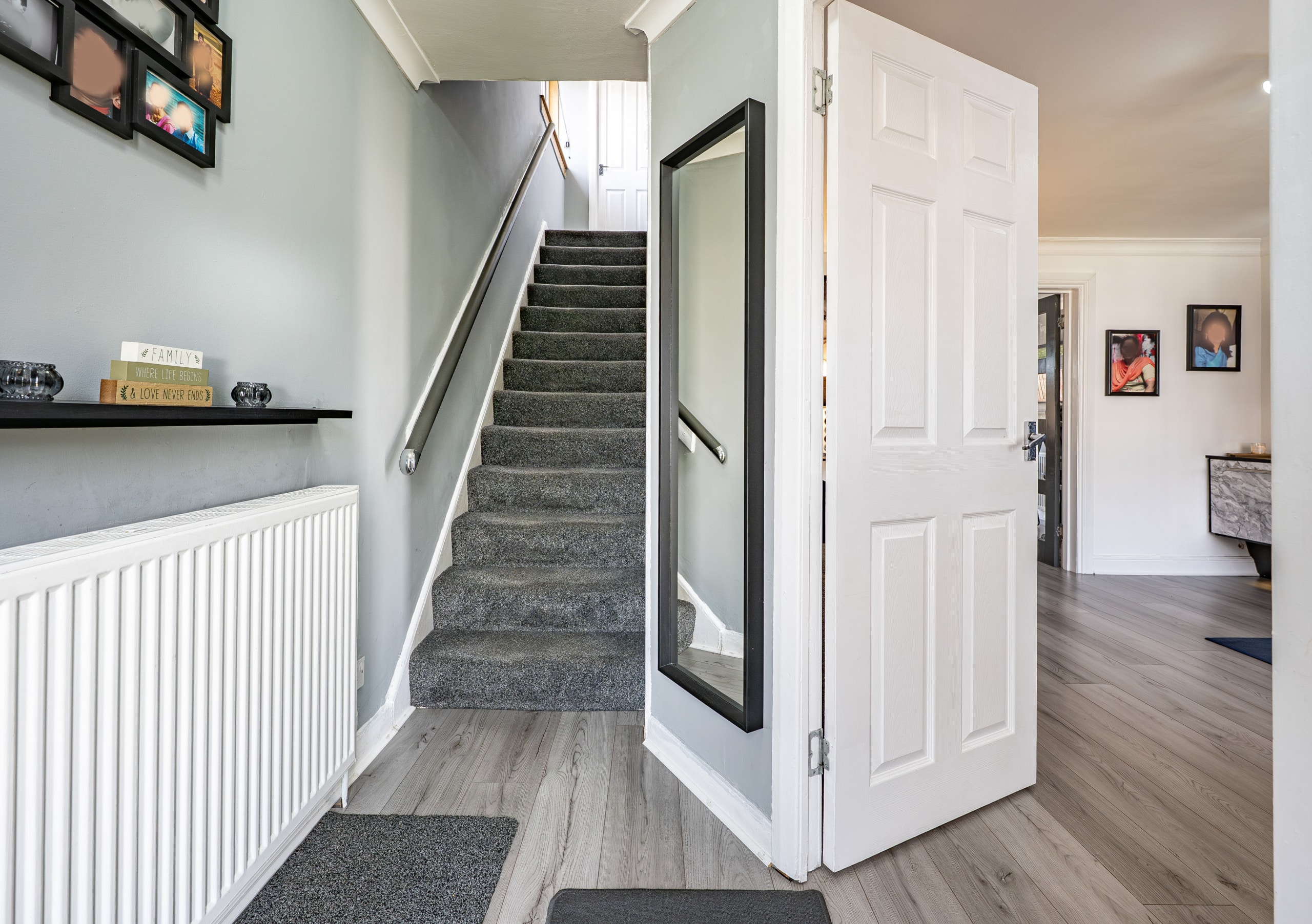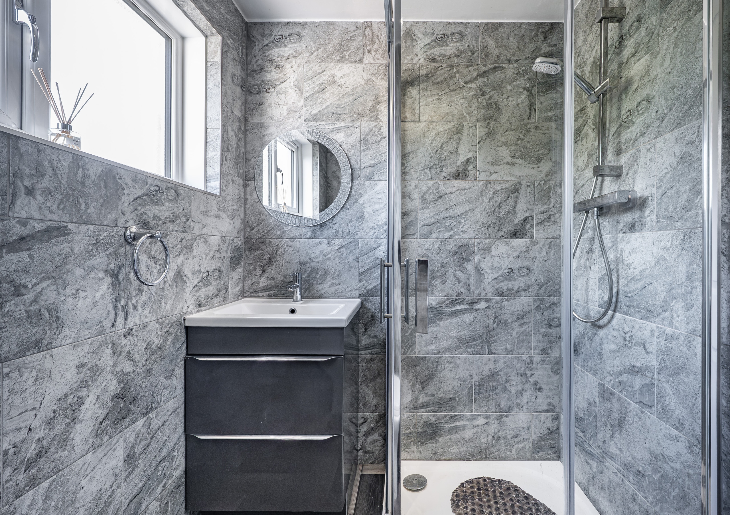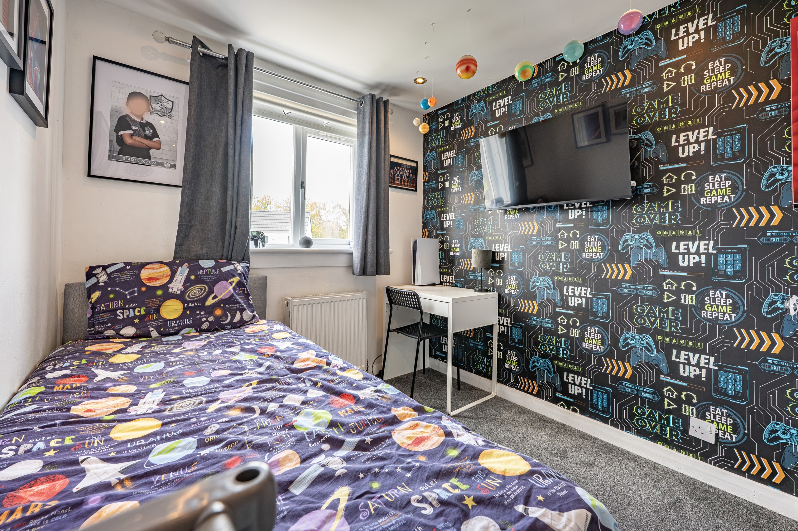 Upstairs, the landing provides access to three generously sized bedrooms, all of which benefit from fitted storage or wardrobe space. There is also a useful storage cupboard and access to a valuable attic area. A contemporary shower room, finished to a high standard, completes the upper level.
