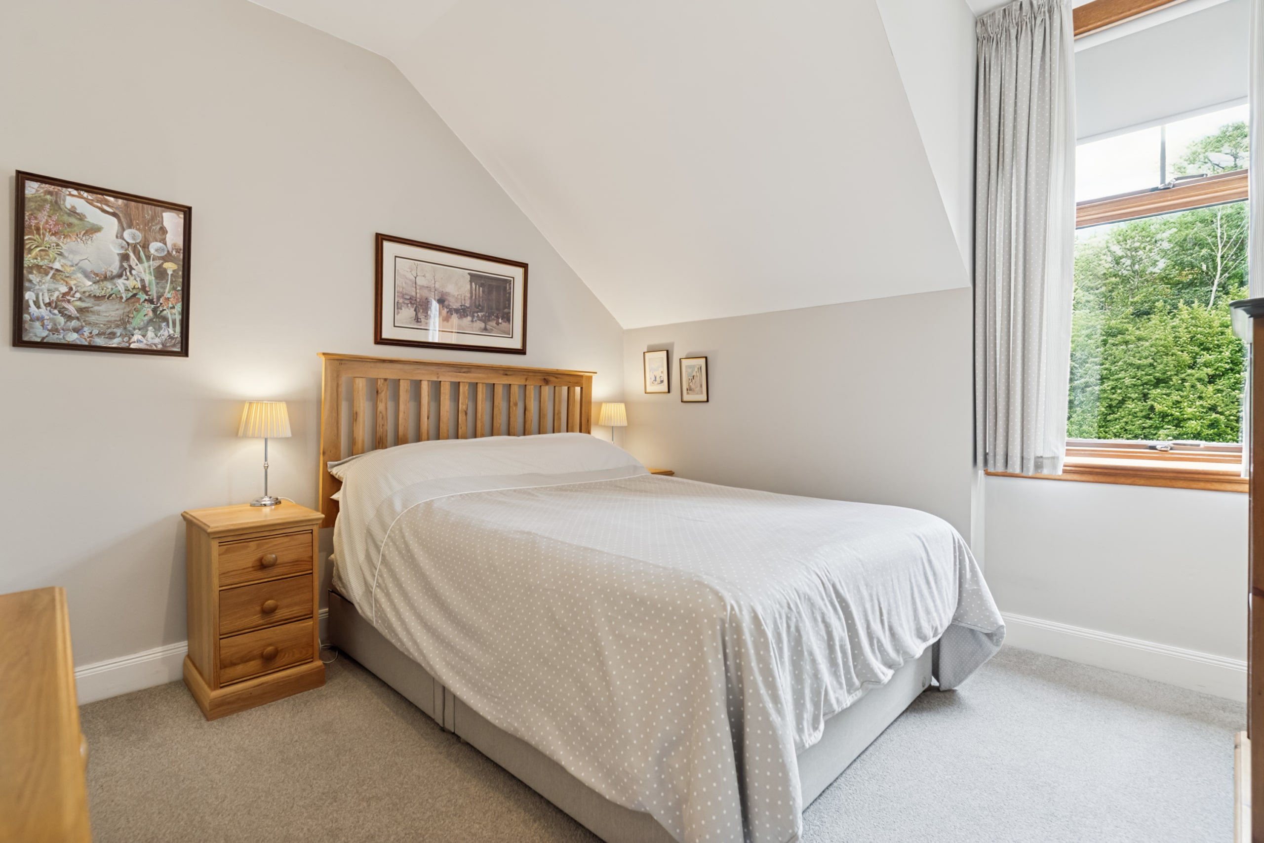 Moving upstairs, a splendid sweeping staircase is beautifully lit by a classic feature window adorned with decorative stained glass. The upper landing offers access to the three double bedrooms, and family bathroom. The principal bedroom is positioned to the rear of the house enjoying a peaceful garden aspect, it boasts a generous floorplan with space for bed, bedside furniture and freestanding wardrobes. Bedroom two is at the front of the property and has the open aspect across the River Forth, it boasts built in storage and space for a large bed, and freestanding bedroom furniture. Bedroom three is set to the rear of the house, another double bedroom with built in storage. Finally completing this fantastic home is the family bathroom featuring a white three-piece suite comprising bath with overhead thermostatic shower, toilet, and sink. Gas central heating and double glazing provide year-round comfort.