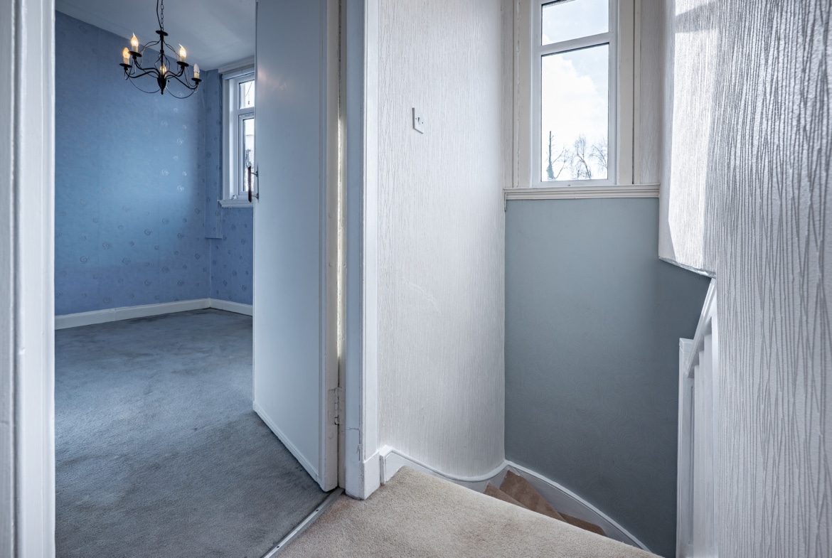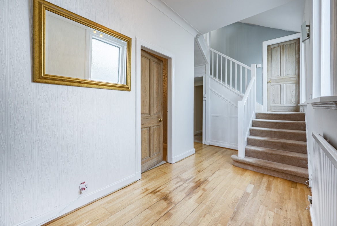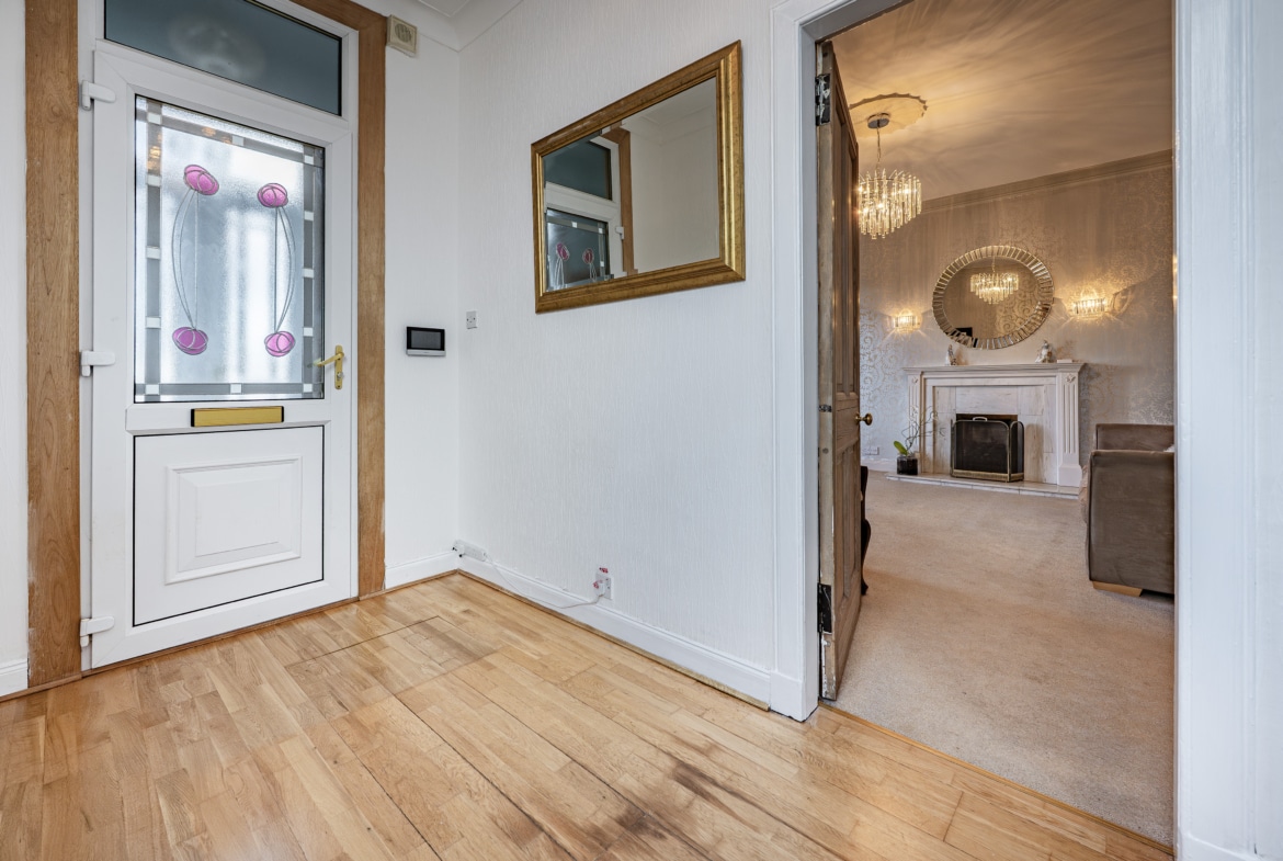 Lovingly maintained and presented in immaculate condition, the home is being offered to the market for the first time in over sixty years. Entry is via a private porch leading into a welcoming reception hallway with useful under-stair storage. A connecting rear hallway provides access to the third bedroom and a well-appointed breakfasting kitchen. This area is particularly spacious, offering potential for additional built-in storage or a dedicated laundry space, and also features a convenient side door to the garden.