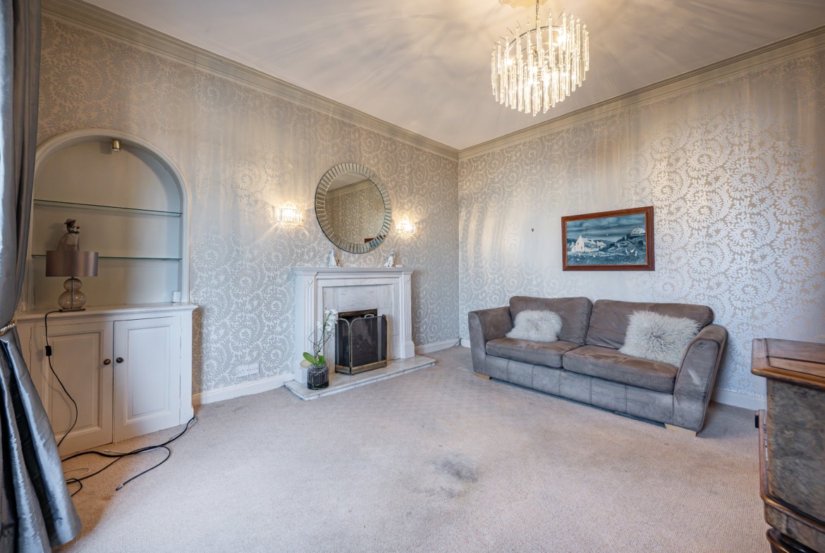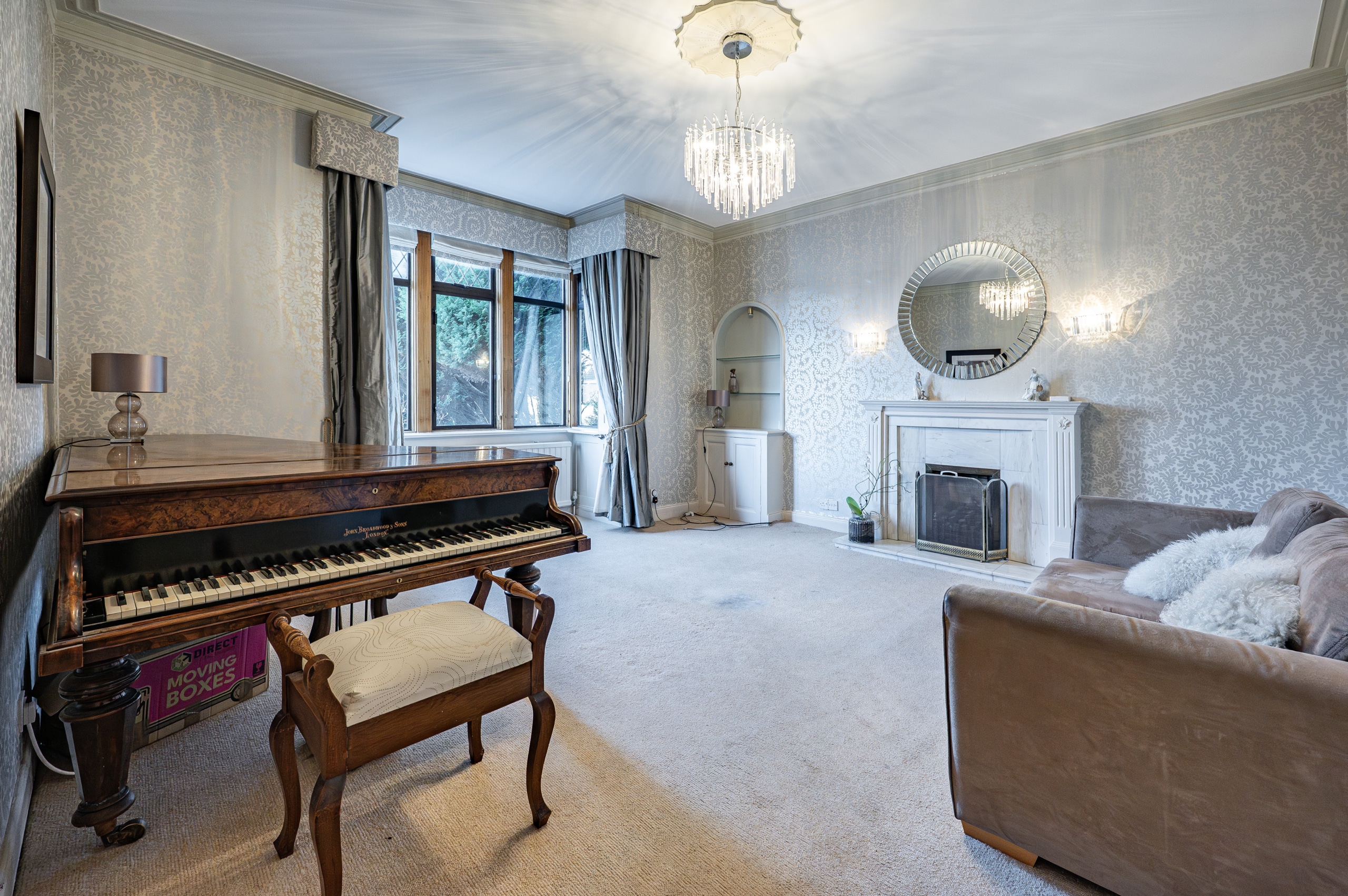 The formal lounge is a standout feature, boasting an elegant fireplace as its focal point and a large box bay window that overlooks the front gardens. To the rear, an equally impressive sitting/dining room or fourth bedroom enjoys pleasant views across the garden, creating an ideal setting for both everyday living and entertaining.